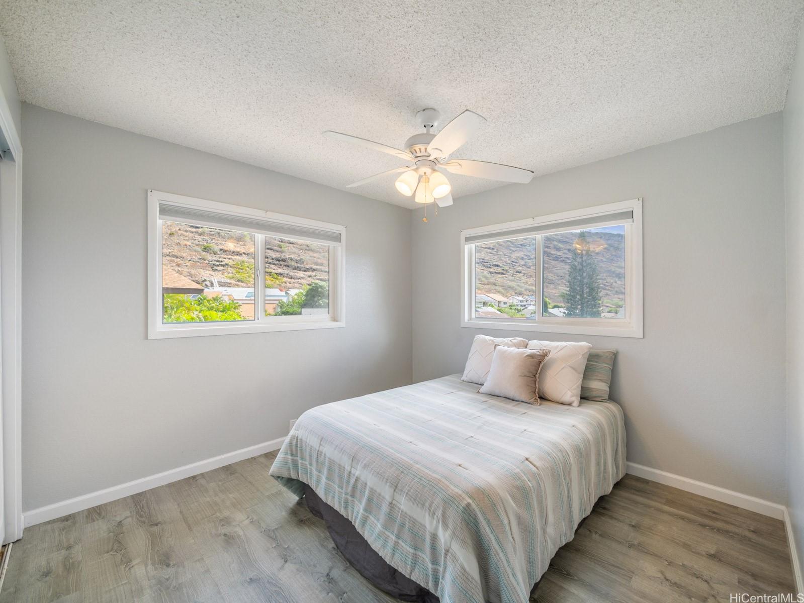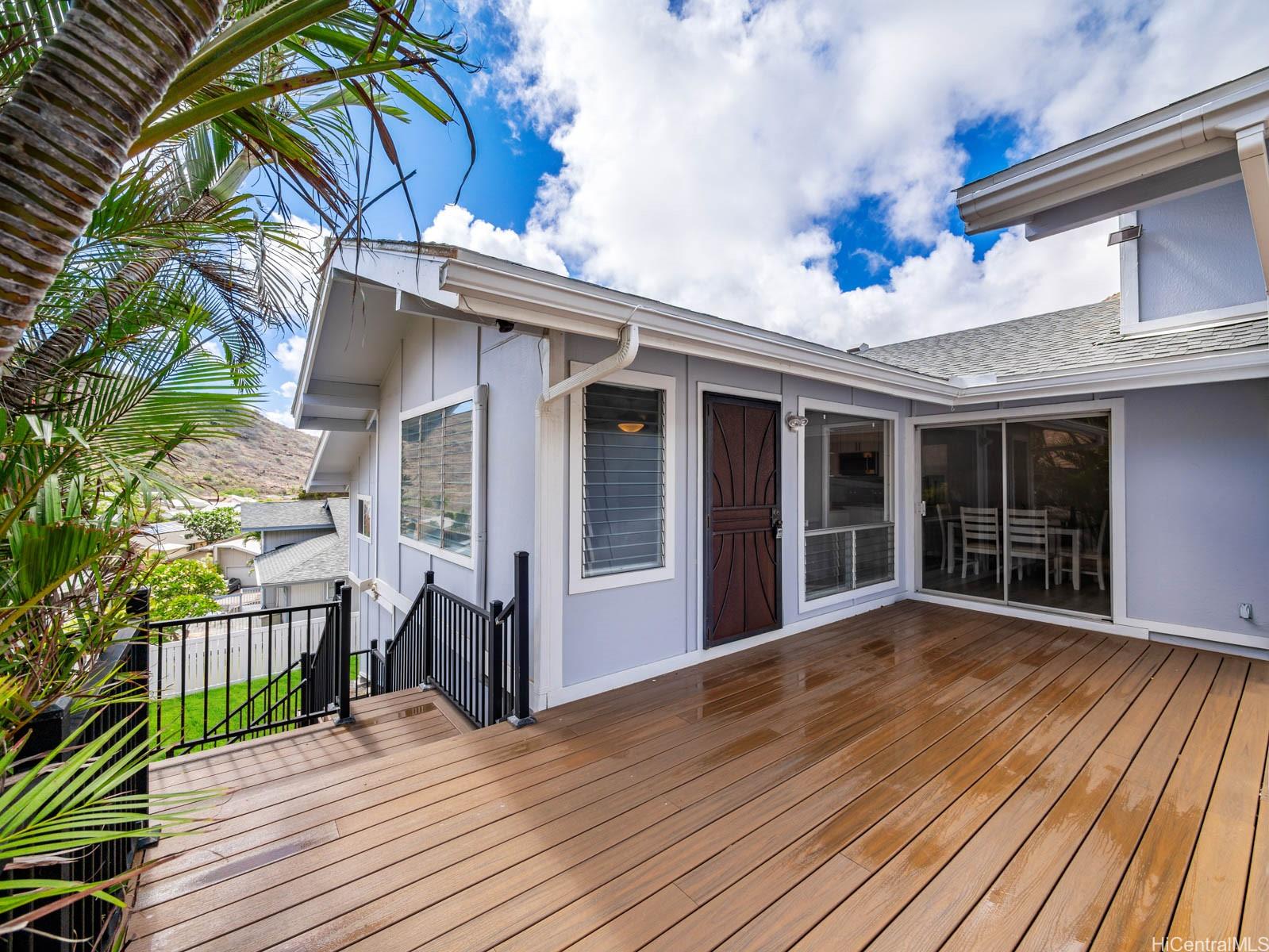 Welcome to this beautifully updated single-level 3-bedroom, 2-bath home in the desirable Kalama Valley neighborhood of Hawaii Kai. This modern residence features a spacious open floor plan with luxury vinyl plank flooring throughout and a fully renovated kitchen complete with quartz countertops, stainless steel appliances, and sleek cabinetry. Enjoy seamless indoor-outdoor living with a large fenced-in yard, lush grass, a private Trex deck perfect for entertaining, and a vinyl privacy fence for added comfort. The home also offers split A/C, updated bathrooms, and thoughtful finishes throughout. Ideally located just minutes away from renowned Sandy Beach, Koko Head Crater, Kalama Valley Park, and top-rated schools. With easy access to hiking trails, shopping, dining, and the convenience of Hawaii Kai. Next Open House Sunday, Dec 14th, 12:30-3pm