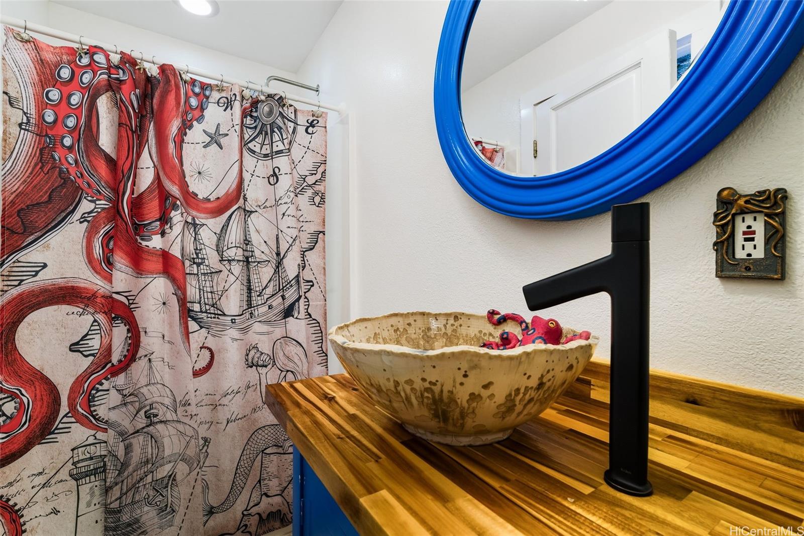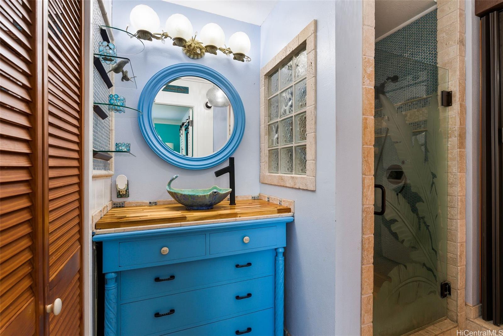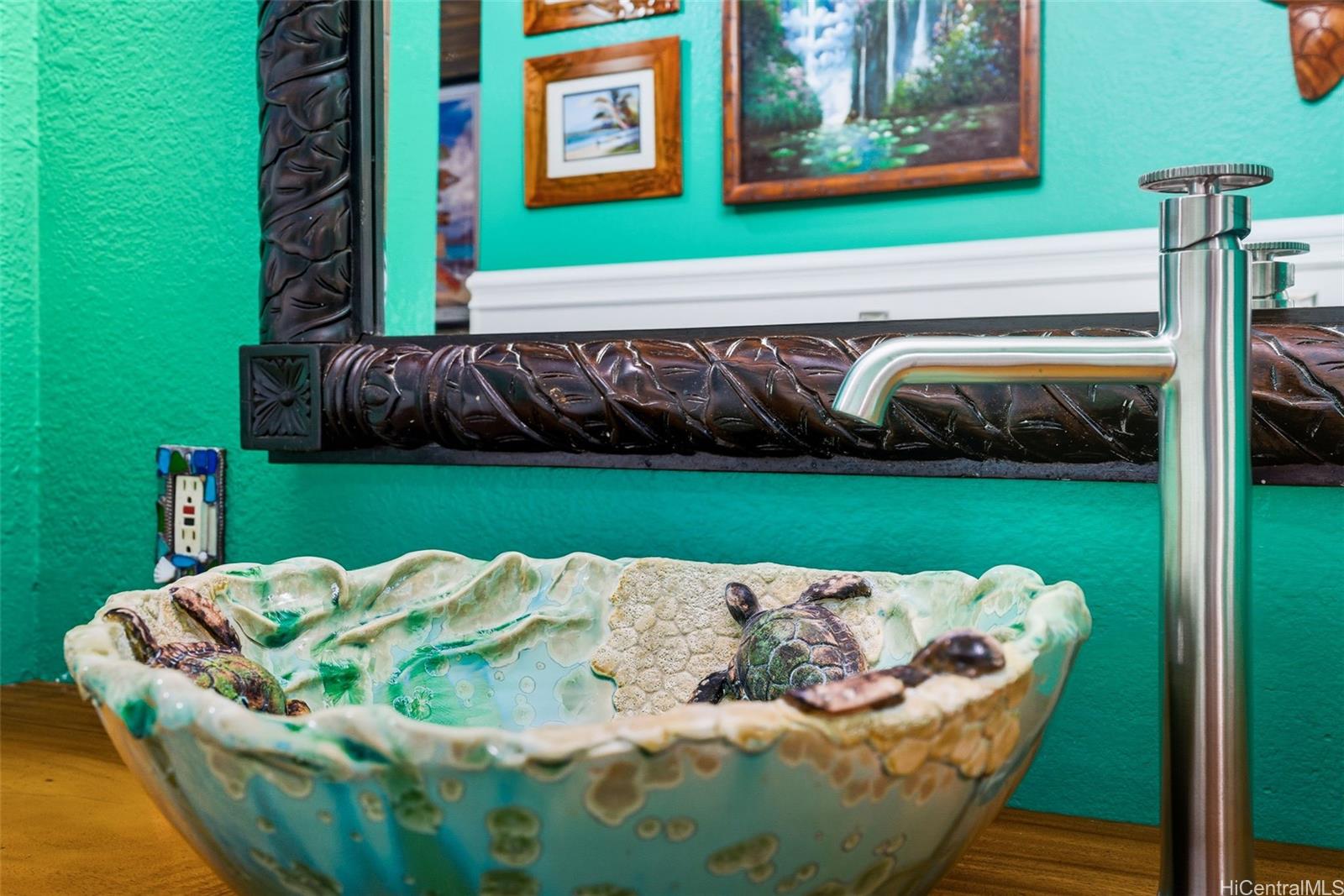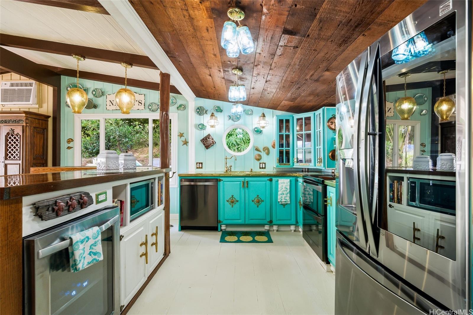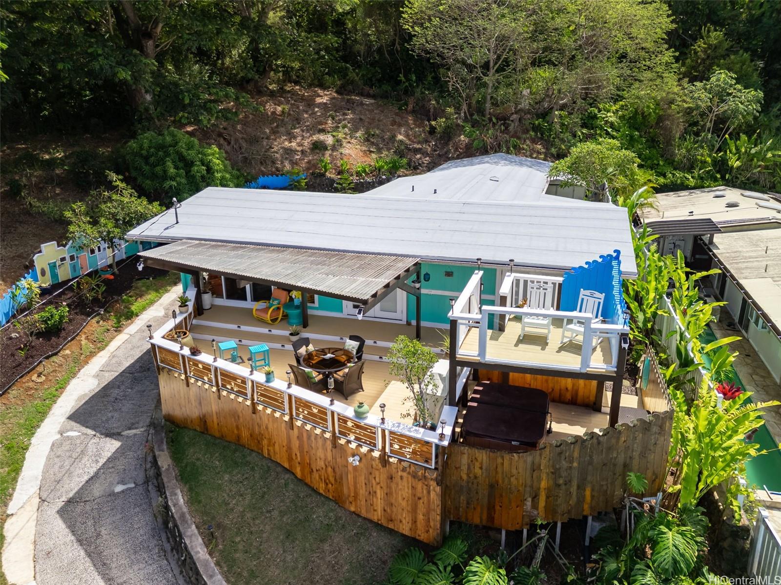 人気のルラニ・オーシャン地区にある、芸術的でユニークなアイランドリトリート!広々としたデッキ、上層階のクロウズネスト、または海を見下ろすスパから、チャイナマンズハットまで続く雄大な海と山の景色をお楽しみください。真鍮とエポキシ樹脂のキッチンカウンター、キッチンとラナイの手すりに使われたオヒアの柱、航海をイメージしたデザイン、アンティークな玄関レンガ、海をテーマにした木製の象嵌細工、海をイメージした装飾的なベッセルシンク、エッチング加工が施されたトロピカルガラス、遊び心のある照明器具など、個性的な備品やカスタム仕上げが満載です。その他の特徴としては、新しい屋根、新しい配管と電気設備、タンクレス給湯器、キッチンポットフィラー、2台のコンベンションオーブン、ワイン/飲料用冷蔵庫、2台のエアコン壁掛けユニットなどがあります。さらに、矮性のアボカドとマンゴーの木、そして緑豊かな島の景観も魅力です。プライバシー保護のため、住宅は保護区に隣接しています。私道には自動ゲートが設置され、さらにARCテレビカメラ8台が設置されているため、セキュリティとプライバシーが確保されています。カラフルで遊び心があり、とにかく楽しい雰囲気のこの物件は必見です!オーナーがこの物件に注いだ愛情とこだわりをぜひお見逃しなく。ヘエイア・ケア・ボートハーバーまでわずか800メートル、カネオヘの街、学校、高速道路まで数分です。