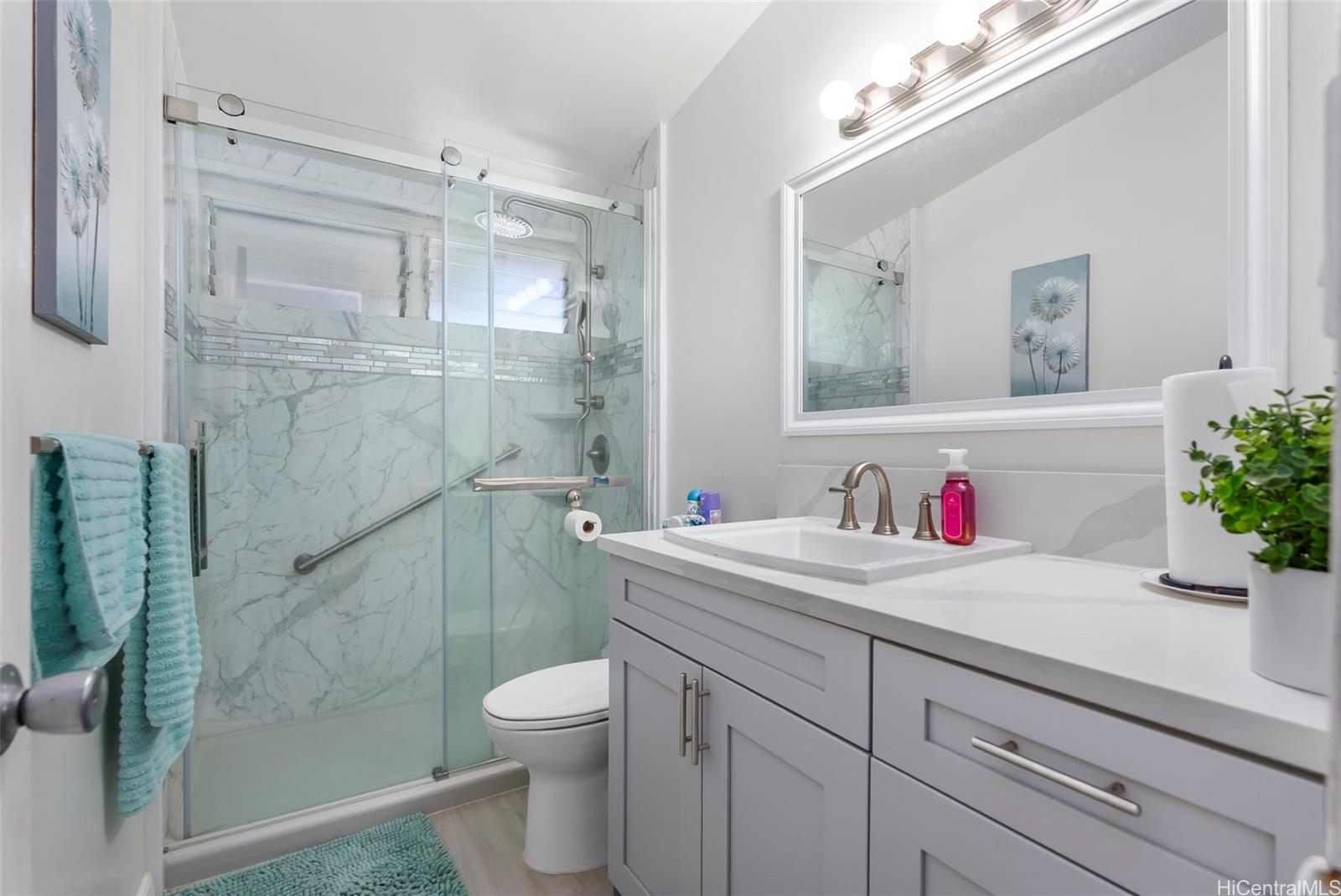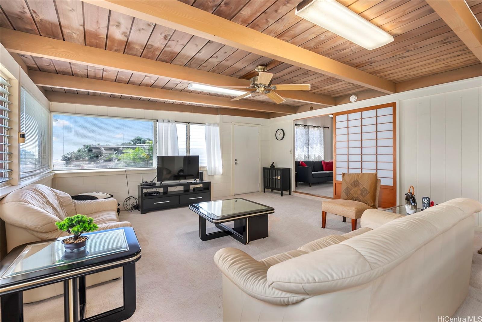 Come home to this meticulously maintained single-story gem in the desirable Pacific Palisades neighborhood of upper Pearl City, where pride of ownership shines throughout. Tucked away on a peaceful street off the main road, this welcoming 3-bedroom residence offers the perfect blend of comfort and potential, situated on an expansive 7,600+ square foot lot that provides ample space for outdoor living and future expansion possibilities. Recent updates include a renovated main bathroom and a brand-new roof, ensuring years of worry-free living. Whether you're looking for your forever home or an investment opportunity with room to grow, this well-cared-for property in a quiet, established community offers the space, location, and quality you've been searching for.
