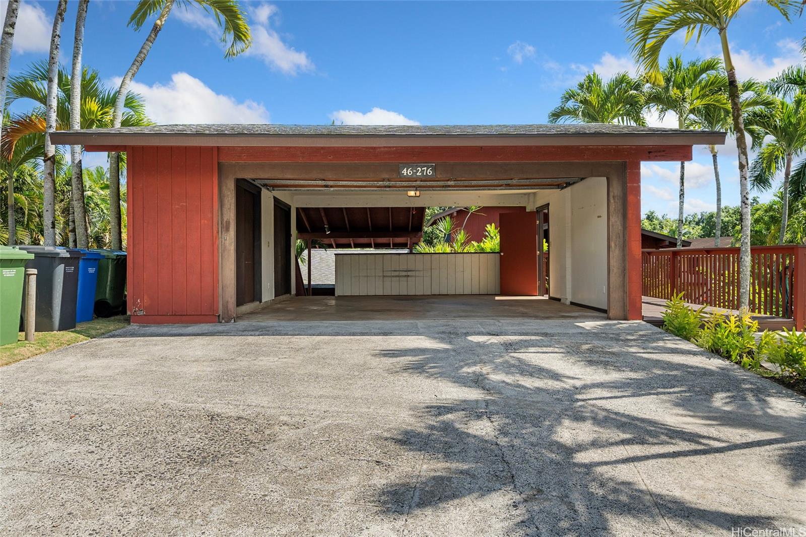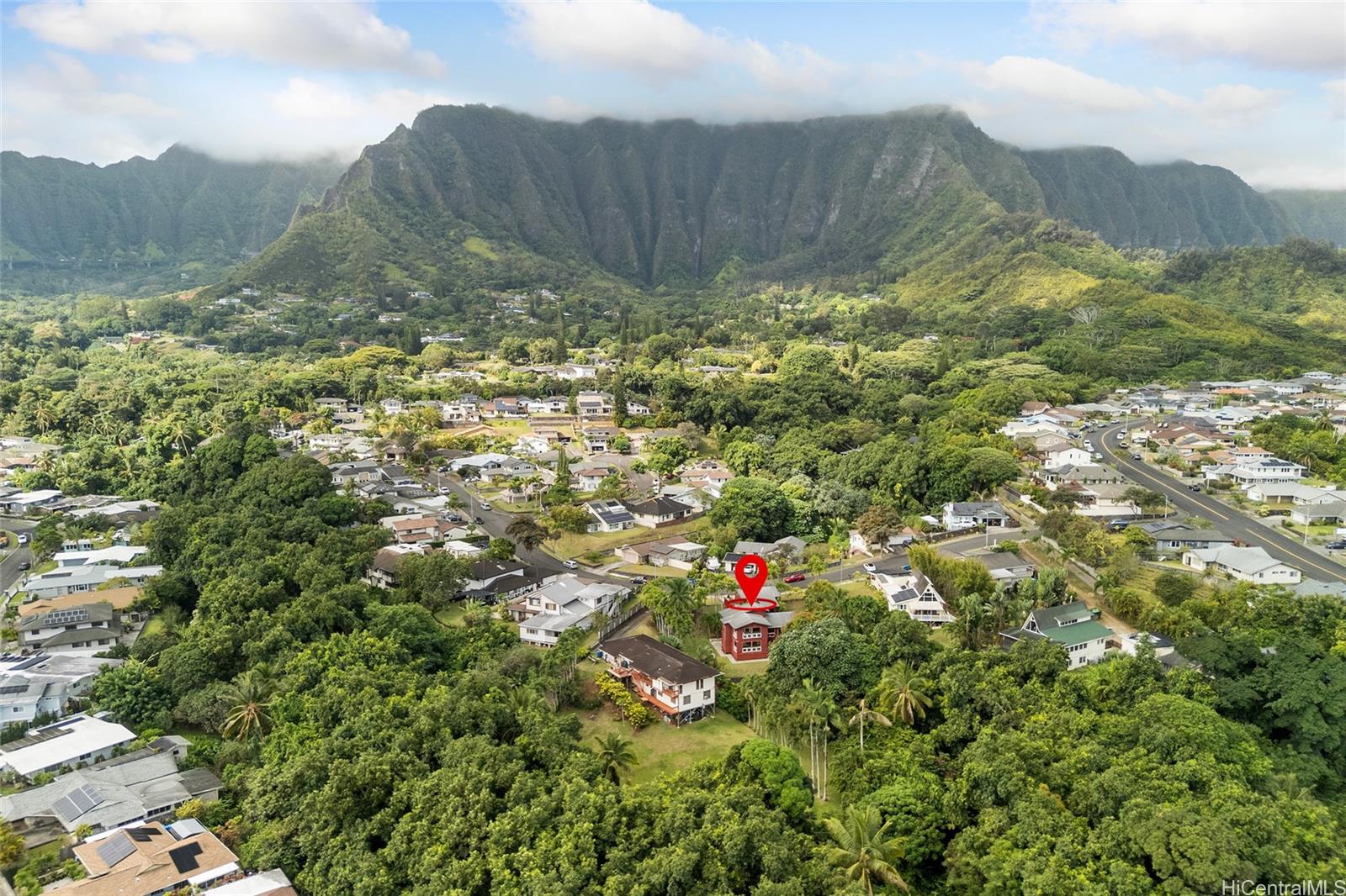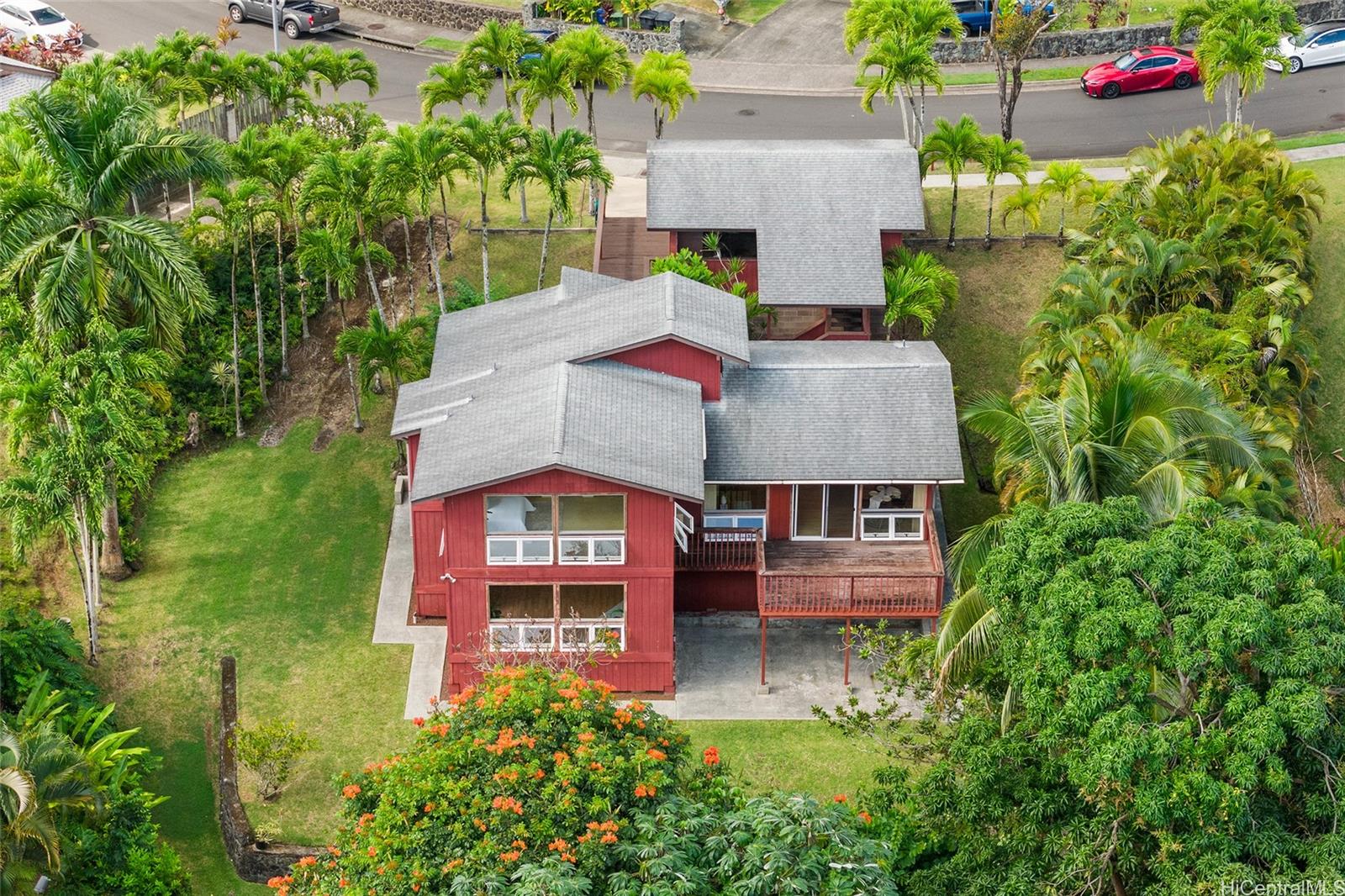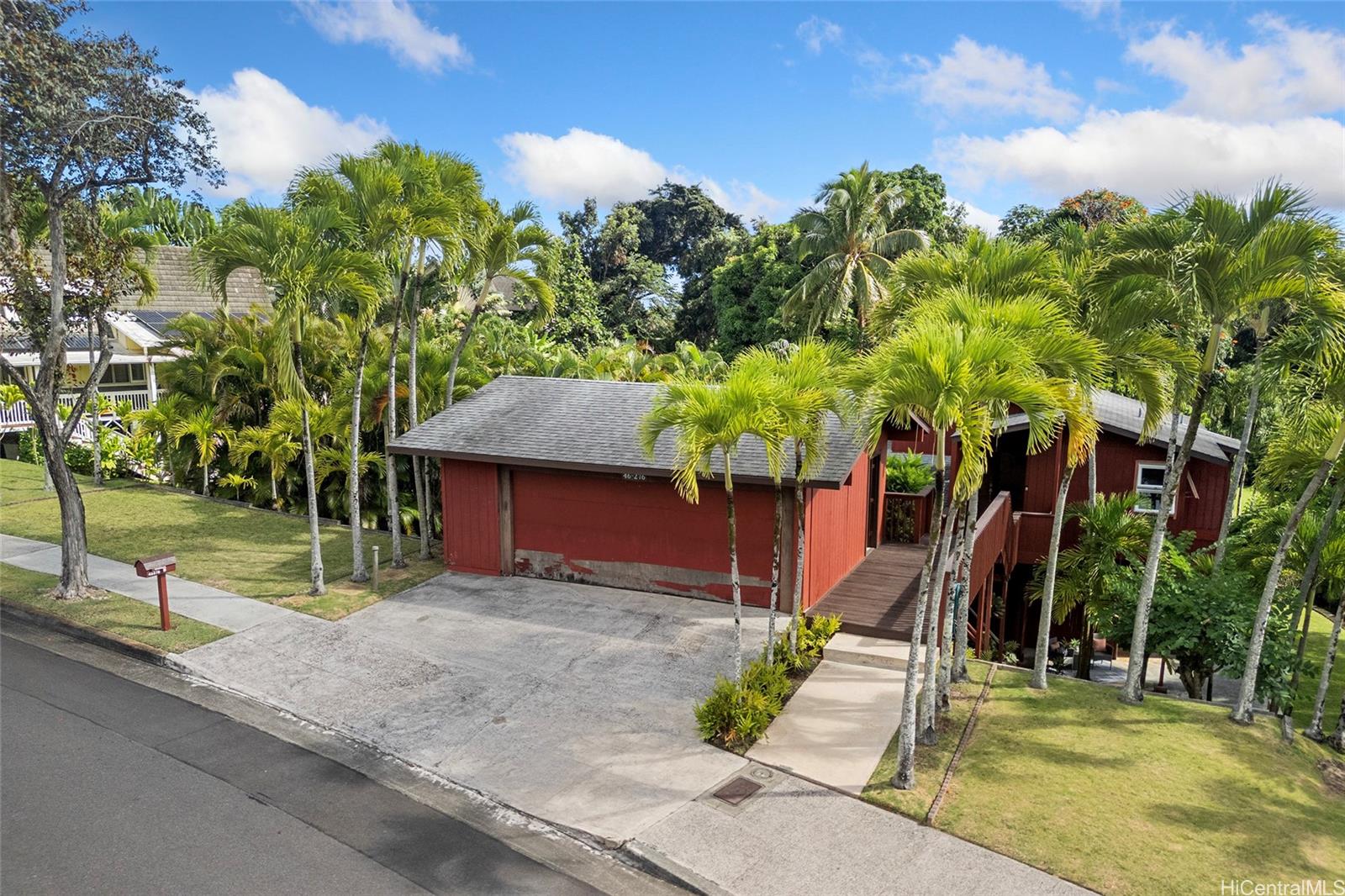 Tucked away in the desirable Crown Terrace neighborhood of Kaneohe, this charming split-level home rests on an extraordinary 21,726 sq. ft. lot surrounded by mature fruit trees and lush tropical landscaping. The expansive, mostly level yard offers endless possibilities for outdoor living, entertaining, or future expansion. Lovingly cared for by the same family for over 39 years, this home features 3 bedrooms and 2.5 bathrooms with flexible spaces to suit a variety of lifestyles. Enjoy serene views from nearly every room, plus a large covered workshop or storage area that adds both function and versatility. As part of the Haiku Knolls Association, residents enjoy access to a community playground, hard surface court, and basketball hoop. Ideally located near Windward Mall, shopping, dining, and with easy access to Likelike Highway. This rare property offers privacy, convenience, and endless potential to bring your renovation ideas to life. Truly a must-see.