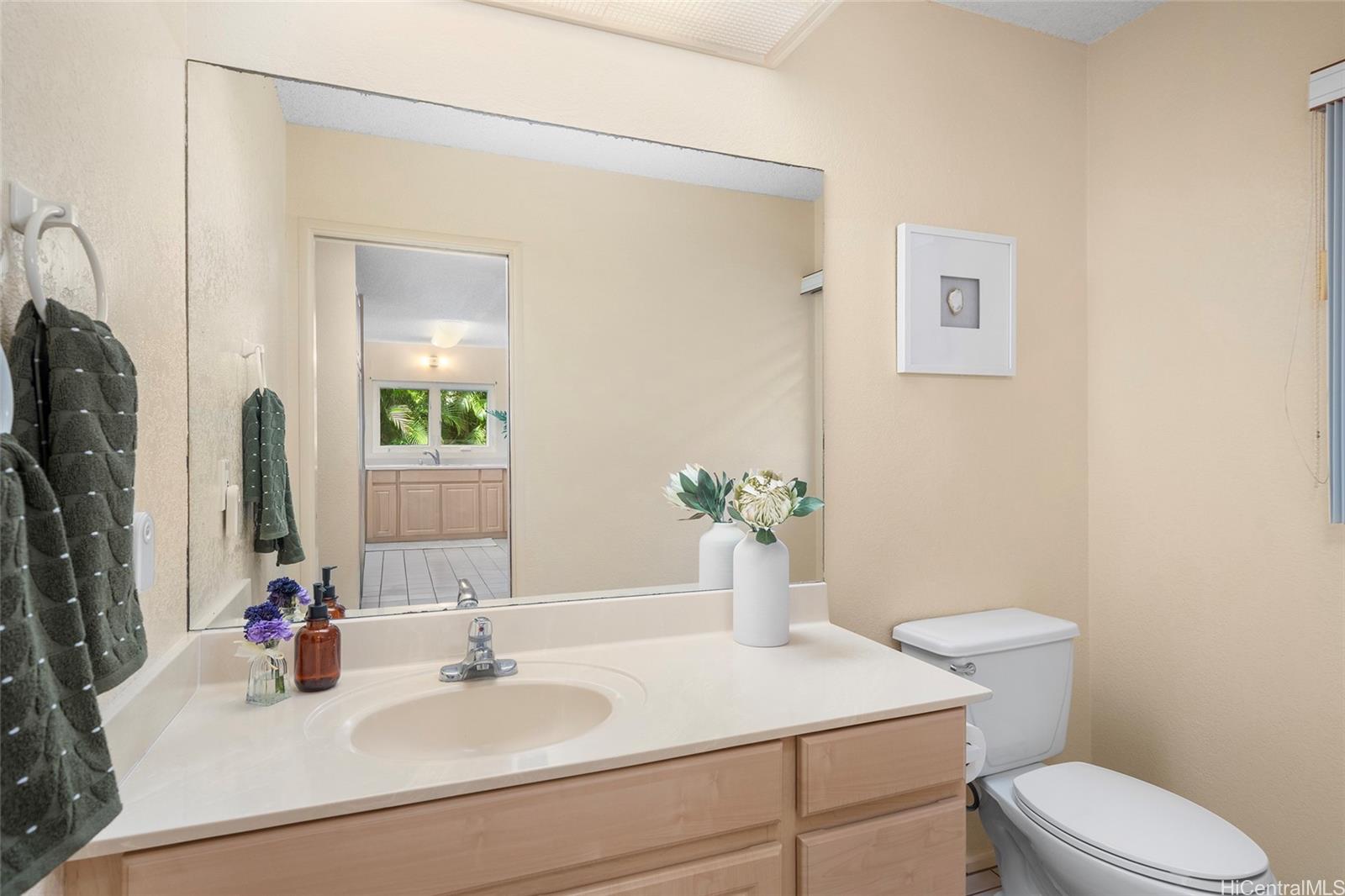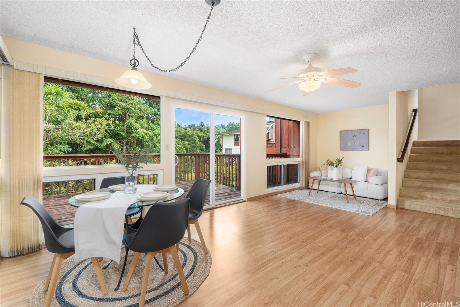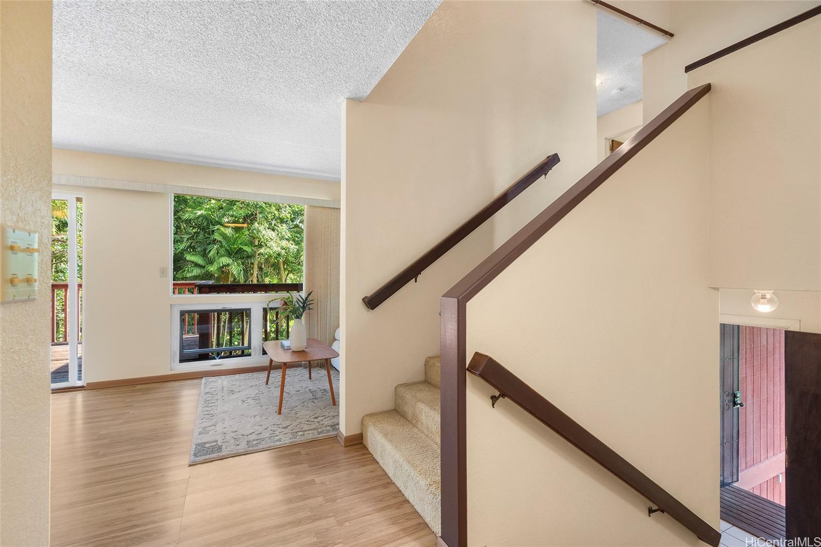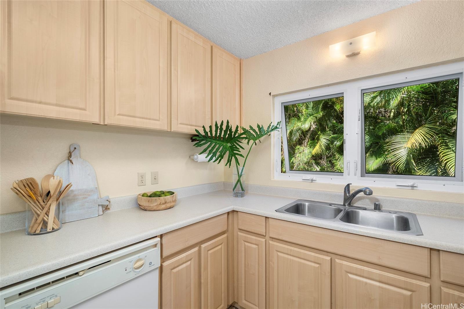 Tucked away in the desirable Crown Terrace neighborhood of Kaneohe, this charming split-level home rests on an extraordinary 21,726 sq. ft. lot surrounded by mature fruit trees and lush tropical landscaping. The expansive, mostly level yard offers endless possibilities for outdoor living, entertaining, or future expansion. Lovingly cared for by the same family for over 39 years, this home features 3 bedrooms and 2.5 bathrooms with flexible spaces to suit a variety of lifestyles. Enjoy serene views from nearly every room, plus a large covered workshop or storage area that adds both function and versatility. As part of the Haiku Knolls Association, residents enjoy access to a community playground, hard surface court, and basketball hoop. Ideally located near Windward Mall, shopping, dining, and with easy access to Likelike Highway. This rare property offers privacy, convenience, and endless potential to bring your renovation ideas to life. Truly a must-see.
