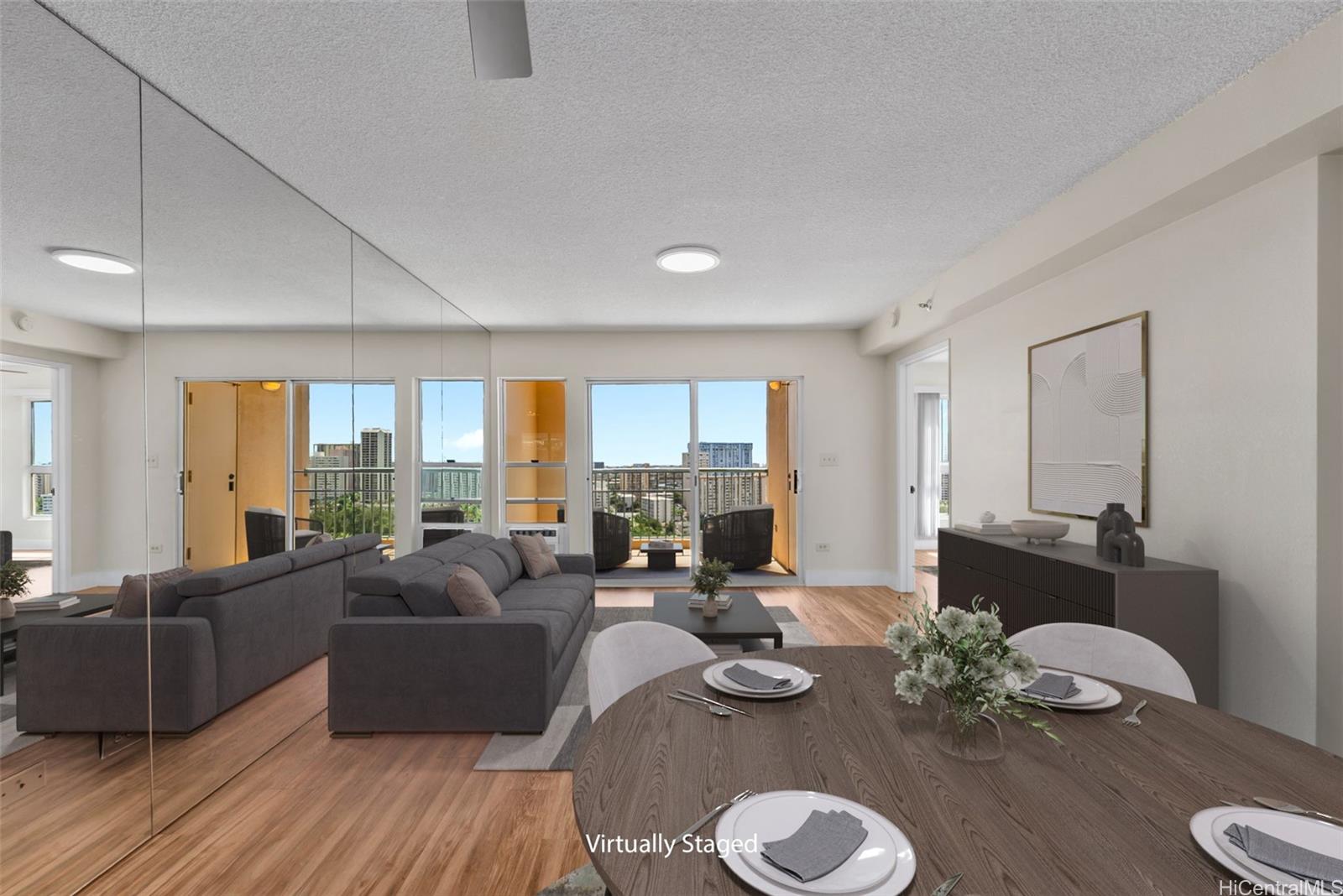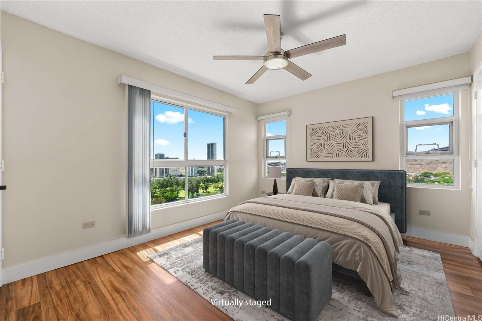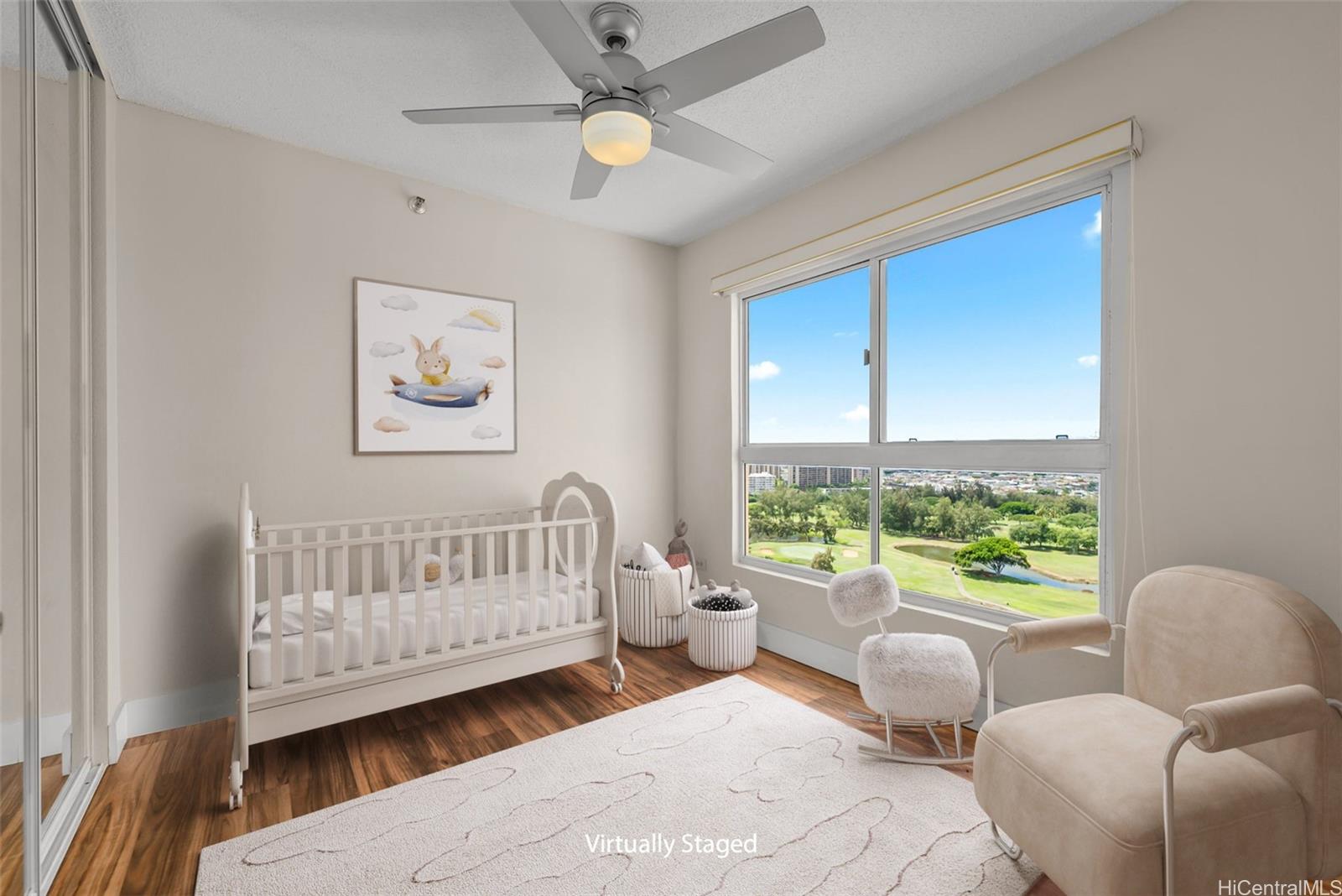 Enjoy resort living with easy access to the freeway, Tripler Hospital, Honolulu International Airport, Fort Shafter, Pearl Harbor & Hickam. From the moment you step through the gate of this preferred end unit, you'll be captivated by panoramic Golf Course & Mountain views, with historic Tripler Hospital visible in the distance. Inside, the renovated kitchen features a breakfast bar & ample space for an eat-in area, flowing seamlessly into the dining and living areas. The open-concept living space flows to a covered lanai with Ocean & Golf Course views, perfect for al fresco dining, morning coffee, or unwinding after a long day. The primary suite features tranquil mountain and golf course views along with the beautiful twinkling lights of distant buildings at night, bath with tub, a walk-in closet, and a secondary closet. This spacious home truly blends comfort and convenience! Country Club Village is a pet-friendly community offering fantastic amenities such as a pool, BBQ areas, walking paths, and abundant guest parking, making it ideal for entertaining. The property is VA approved and includes 100% hurricane coverage.
