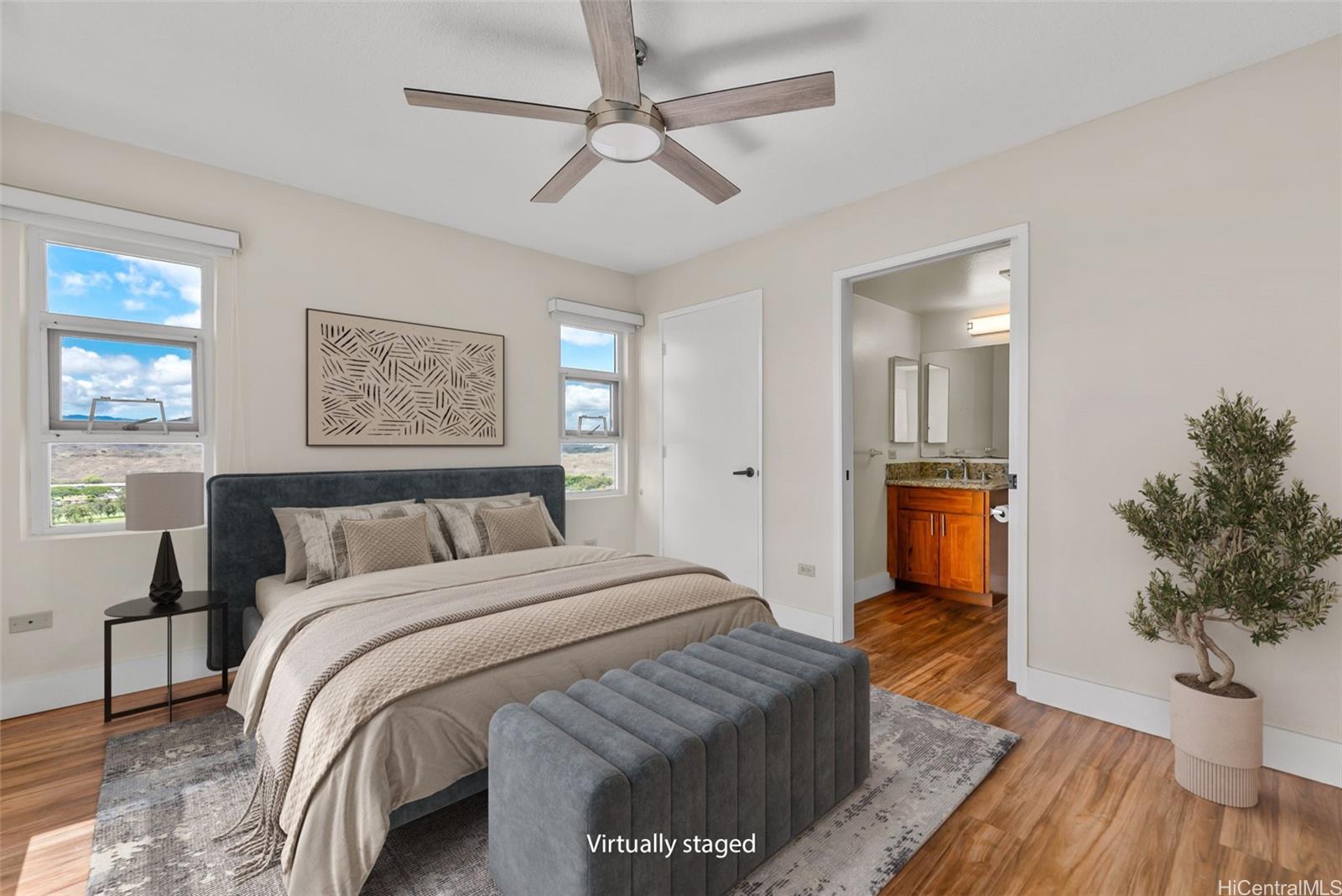 高速道路、トリプラー病院、ホノルル国際空港、フォートシャフター、パールハーバー、ヒッカムへのアクセスが容易なリゾートライフをお楽しみください。この最寄り端のユニットの門をくぐった瞬間から、ゴルフコースと山々のパノラマビューに魅了され、遠くには歴史あるトリプラー病院も見えます。室内には、改装されたキッチンに朝食バーと広々としたイートインスペースがあり、ダイニングエリアとリビングエリアにシームレスにつながっています。オープンコンセプトのリビングスペースは、海とゴルフコースの景色を望む屋根付きのベランダにつながっており、屋外での食事、朝のコーヒー、長い一日の終わりのくつろぎに最適です。メインスイートからは、静かな山とゴルフコースの景色、そして夜には遠くの建物の美しいきらめきの光を眺めることができます。バスタブ付きバスルーム、ウォークインクローゼット、セカンドクローゼットも完備しています。この広々とした住宅は、快適さと利便性を真に融合させています。カントリークラブビレッジはペットフレンドリーなコミュニティで、プール、バーベキューエリア、遊歩道、広々としたゲスト用駐車場など、素晴らしいアメニティを提供しており、エンターテイメントに最適です。この物件は VA 承認済みで、ハリケーンに対する 100% の補償が含まれています。