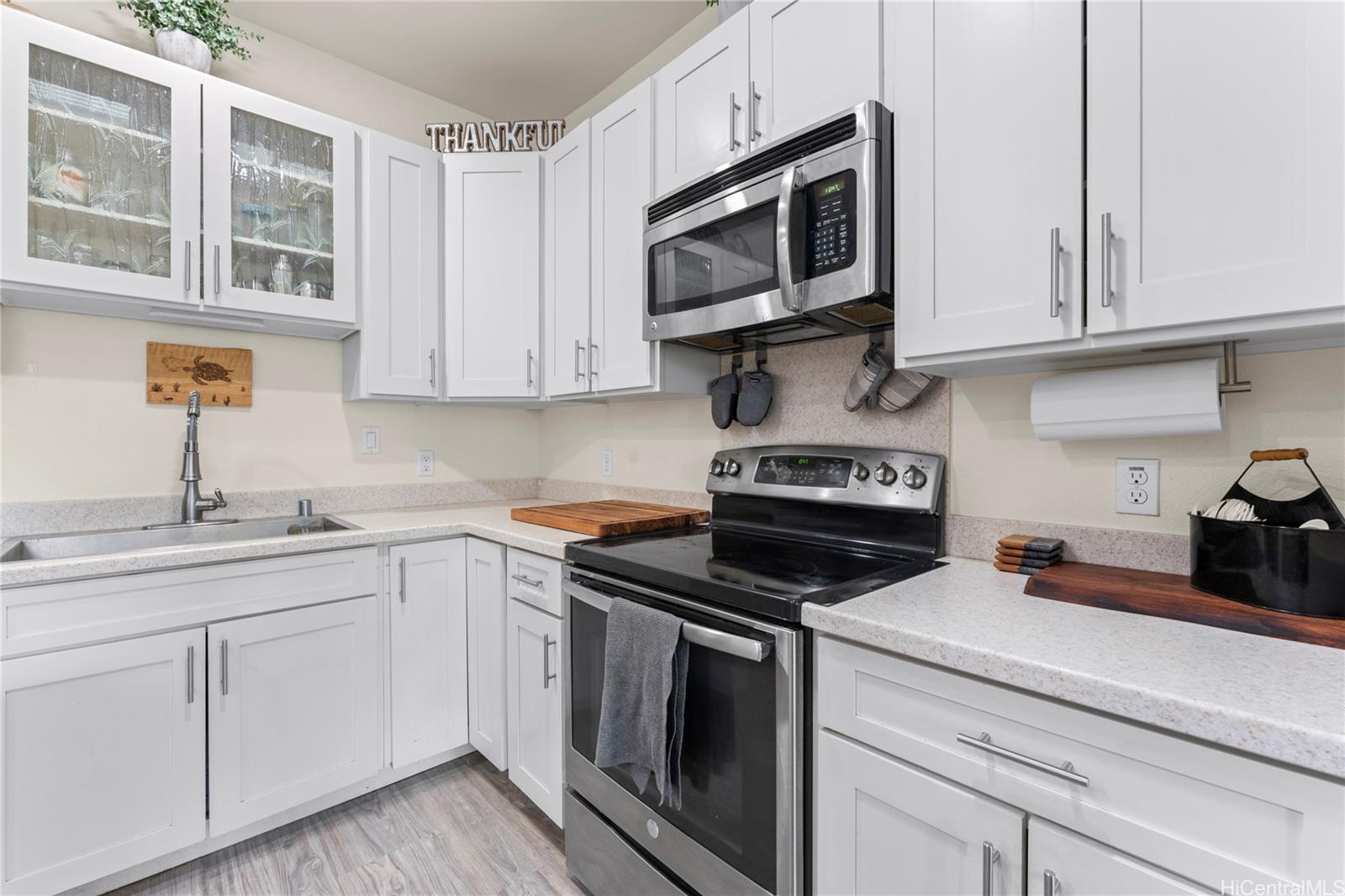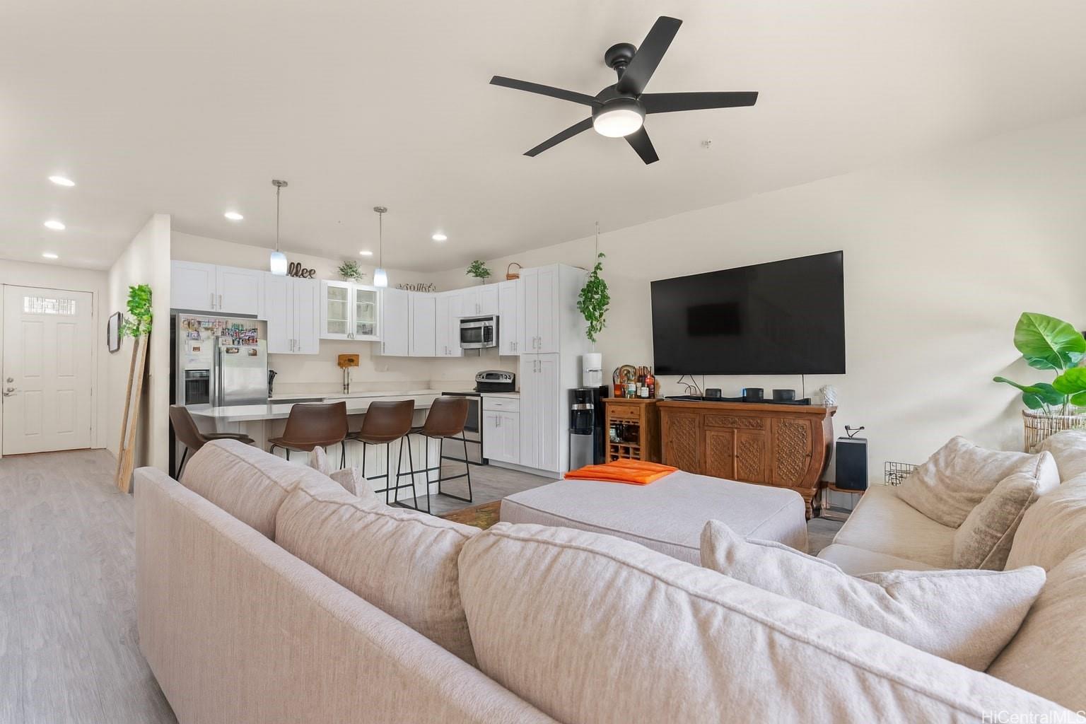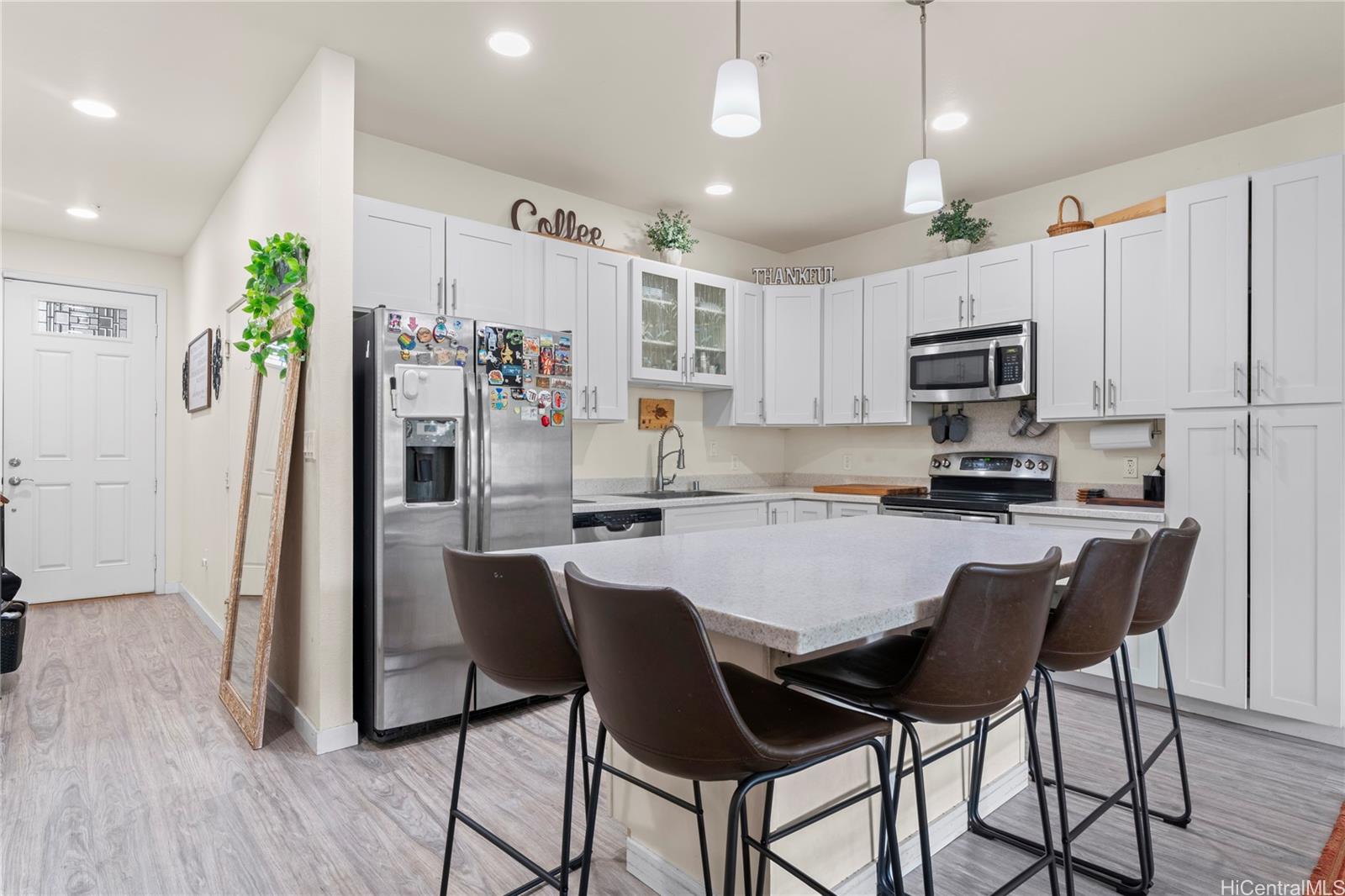 Welcome to O'ahu's "Second City"! Discover this stunning and highly sought-after 3-bedroom, 2.5-bath townhome in the vibrant community of Olino at Mehana in Kapolei. This beautifully updated home features remodeled kitchen cabinets, upgraded flooring, and an inviting open floor plan perfect for entertaining or relaxing. Recent updates include a new upstairs AC unit and kitchen fixtures.
