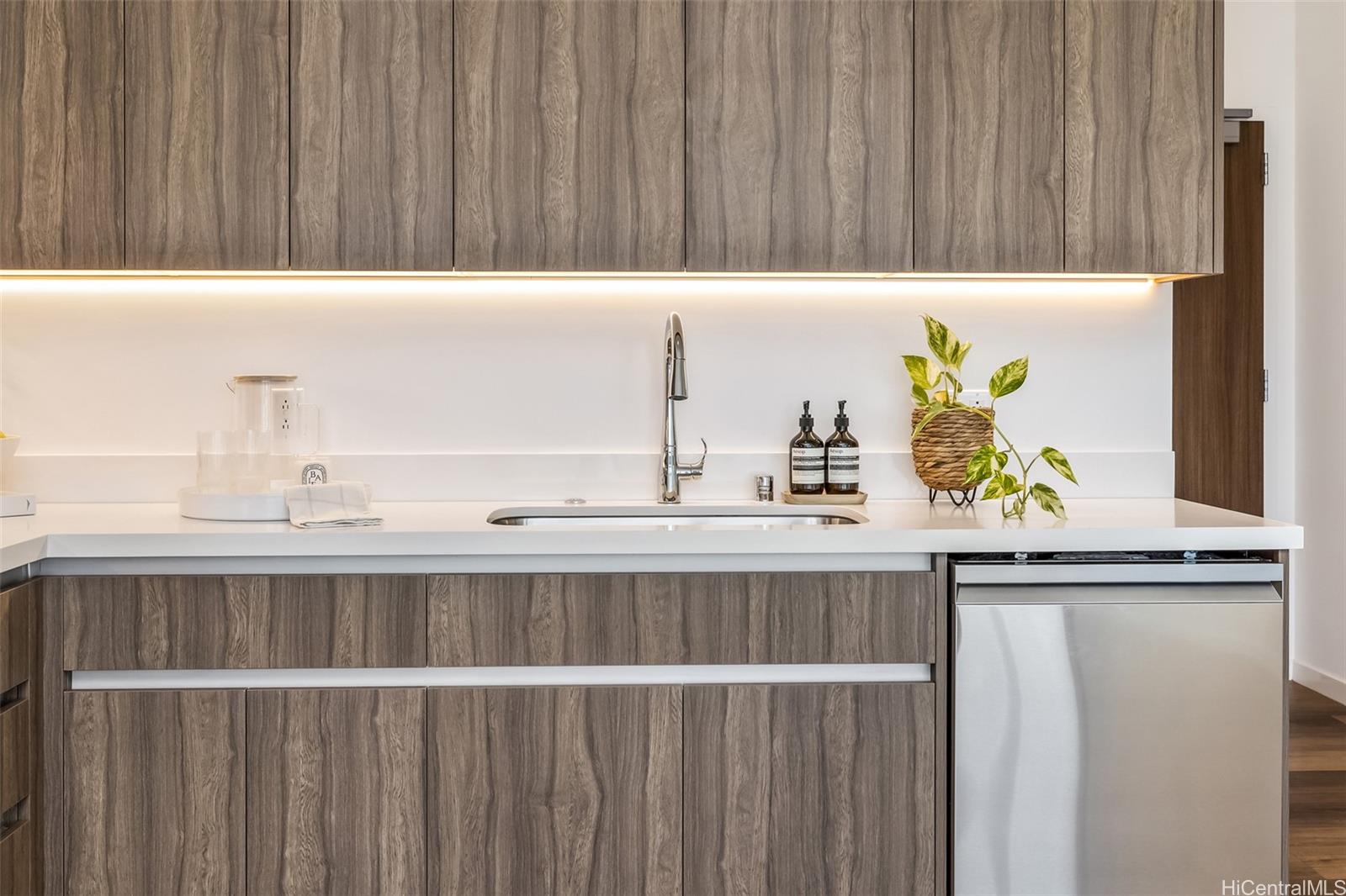 Spectacular high ceilings define this top-floor, penthouse-level residence with views not only of Diamond Head and the ocean, but all the way over Kahala to Maunalua Bay! The 07 is the largest floor plan of the three 1bds on the 44th floor, and features a stunning lanai. The wide bedroom layout takes full advantage of the view, with tall, floor-ceiling glass. Upgraded with LVT flooring in the bedroom and automatic shades, this home is ready to move into and has never been occupied. The parking stall is amazing, on the lowest gated level diagonally across from the entrance to the tower elevators. The Park on Ke‘eaumoku is Midtown Ala Moana’s newest condominium, known for its spacious amenity area featuring a huge infinity pool and hot tub, huge party rooms, lots of private BBQ cabanas, gym, saunas, theater, and more. Don’t miss this special penthouse!