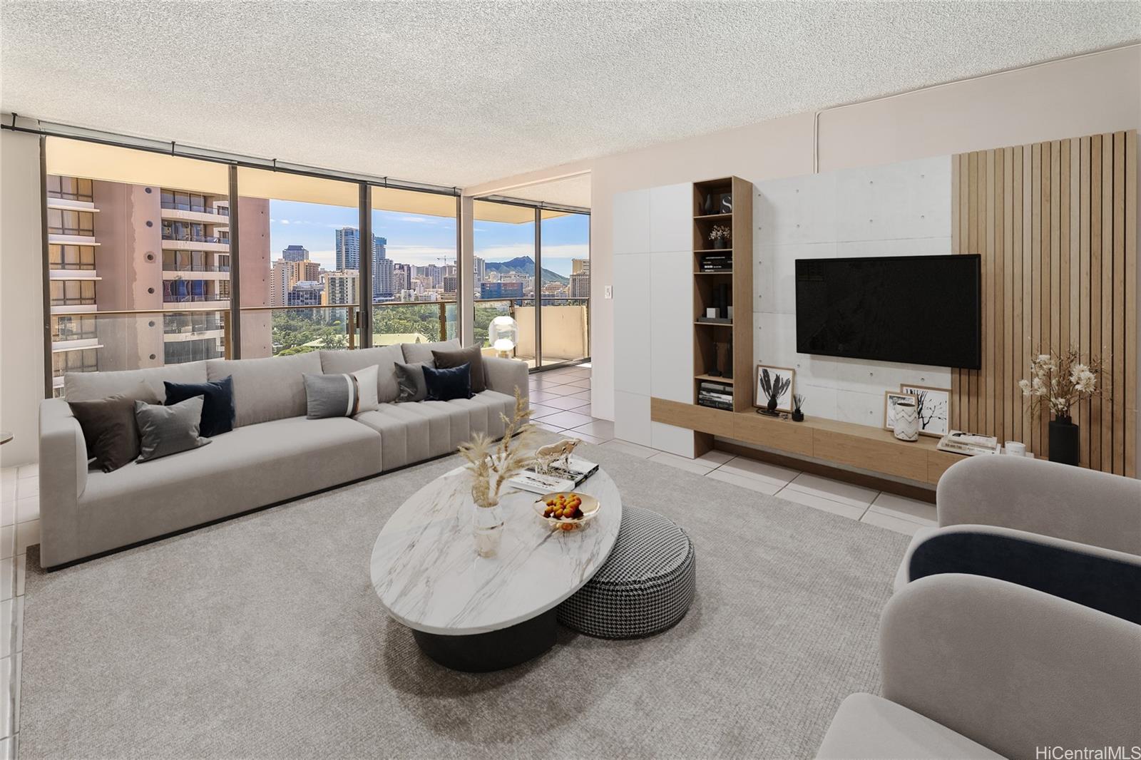 新価格!17階に位置する広々とした2ベッドルーム、2バスルーム、プライベートラナイ付きのコンドミニアムから、ダイヤモンドヘッド、海、山々の息を呑むような絶景をお楽しみください。ワイキキの象徴とも言えるワイラナ・アット・ワイキキに位置し、設備の整ったこのユニットは、世界的に有名なワイキキビーチ、アラモアナショッピングセンター、ハワイコンベンションセンター、そして様々なショップやレストランからわずか数分という最高のロケーションです。主寝室には、メインのリビングスペースへとつながるユニークなソウジドアが備わっており、風通しの良い開放的な空間を演出しています。天井から床まで届く窓とガラスドアからは、まるでバケーションのようなパノラマビューをお楽しみいただけます。このコンドミニアムには、セキュリティ付きの専用駐車スペース1台分と追加の収納スペースが付属しています。敷地内には便利なサーフボードと自転車の保管場所もあります。階下には新しくオープンしたアイランドマーケット&デリがあり、日用品を簡単に購入できます。建物のアメニティには、リフレッシュできるプールとバーベキューエリアがあり、リラックスしたり、エンターテイメントを楽しんだりするのに最適です。ご注意ください。この物件はリースホールド物件です。リースは2069年末まで延長されています。最低90日間のレンタルとなります。35ポンド(約14kg)までのペット2匹まで飼育可能です。