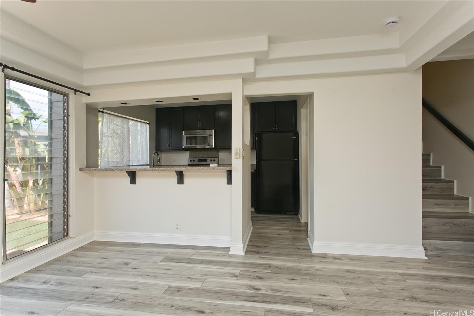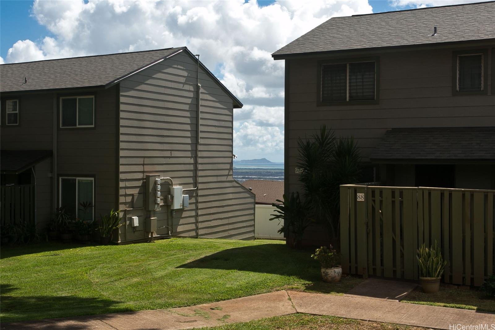 Assumable VA Loan at 2.25%! Spacious and breezy 3-bedroom, 1.5-bath townhome with two courtyards, new flooring and two parking stalls plus nearby street parking. Enjoy privacy, natural light, cool breezes, and beautiful sunset views in family-friendly Makakilo. The two private courtyards are fenced and perfect for relaxing or entertaining. Conveniently near the community pool, less than a mile from Mauka Lani Elementary, and close to shopping, dining, beaches, and the H-1 freeway. Townhome includes home-warranty for one year.