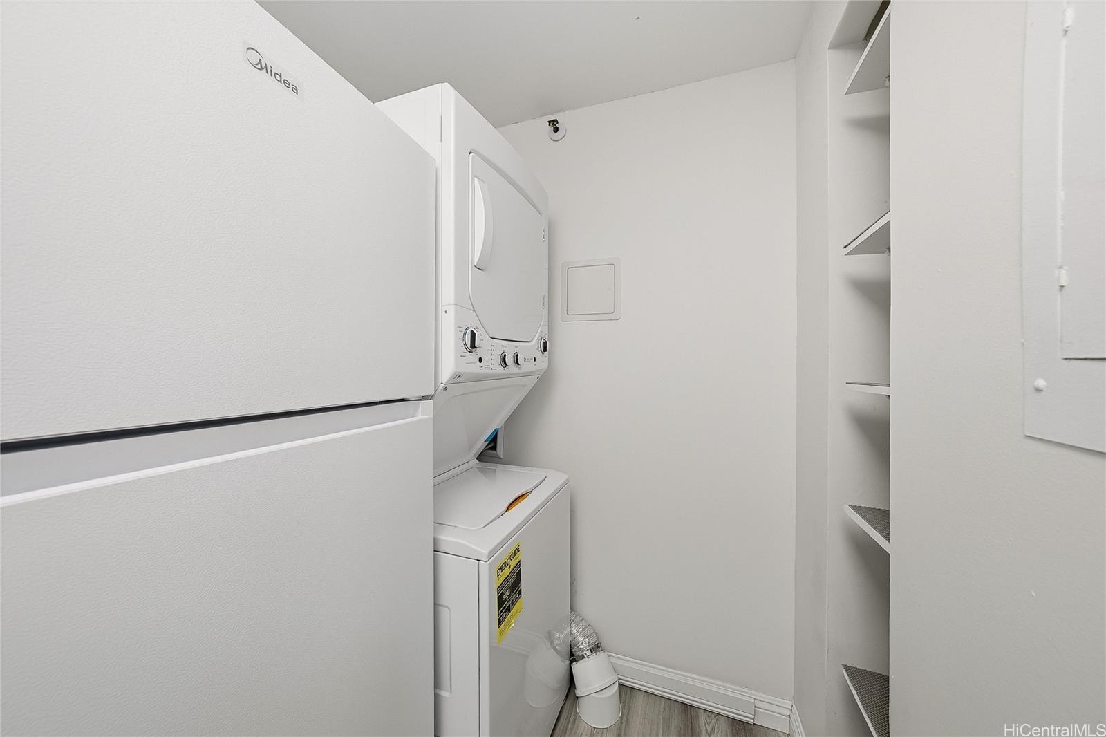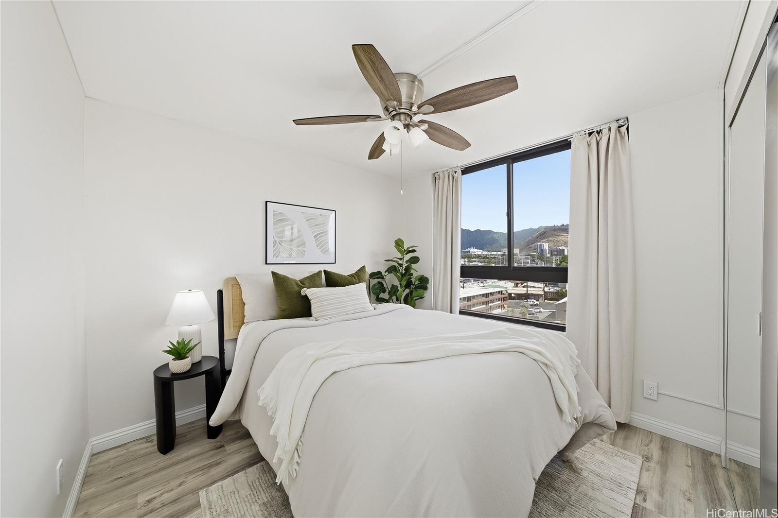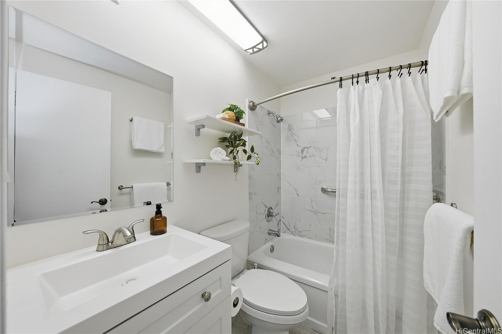 Location, location, location! Located in the heart of Mo'ili'ili, this 2 bedroom, 2 bath residence in Kings Gate has been completely renovated in 2024 and is ready for you to move in! Step into this bright and updated home with vinyl flooring throughout, and no popcorn ceiling. The kitchen features new cabinetry, quartz countertops and new appliances. Both bathrooms have not only been updated, but the entire buildings plumbing was also recently completed. Both bedrooms also feature closet systems as well as ceiling fans to keep cool air circulating. Conveniently located in the heart of Honolulu, Kings Gate is walking distance to University of Hawaii, coffee shops, local eateries and shopping. Unit comes with 1 assigned, parking stall in a secured garage. The special assessment of $207.30 will end Dec 2025.