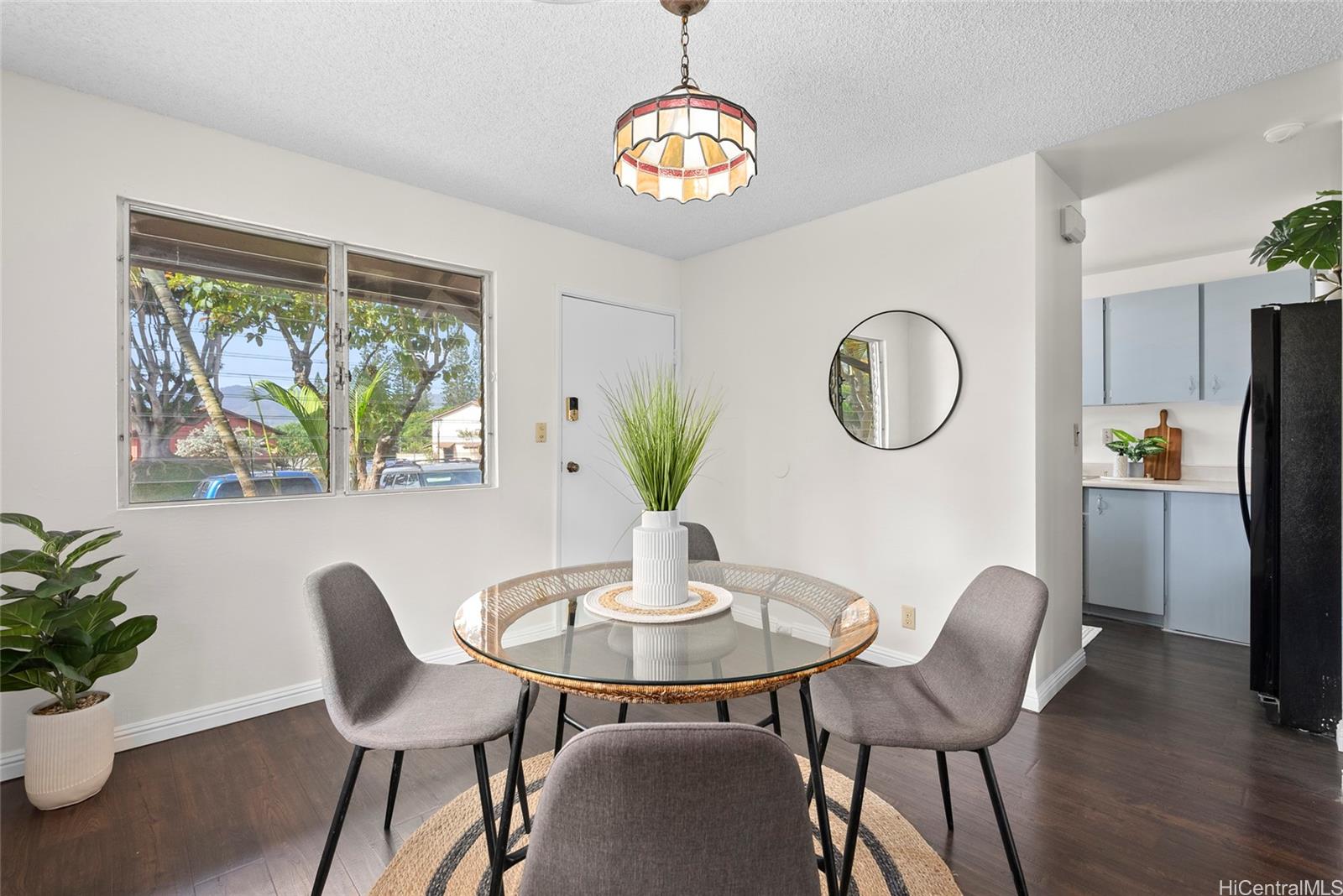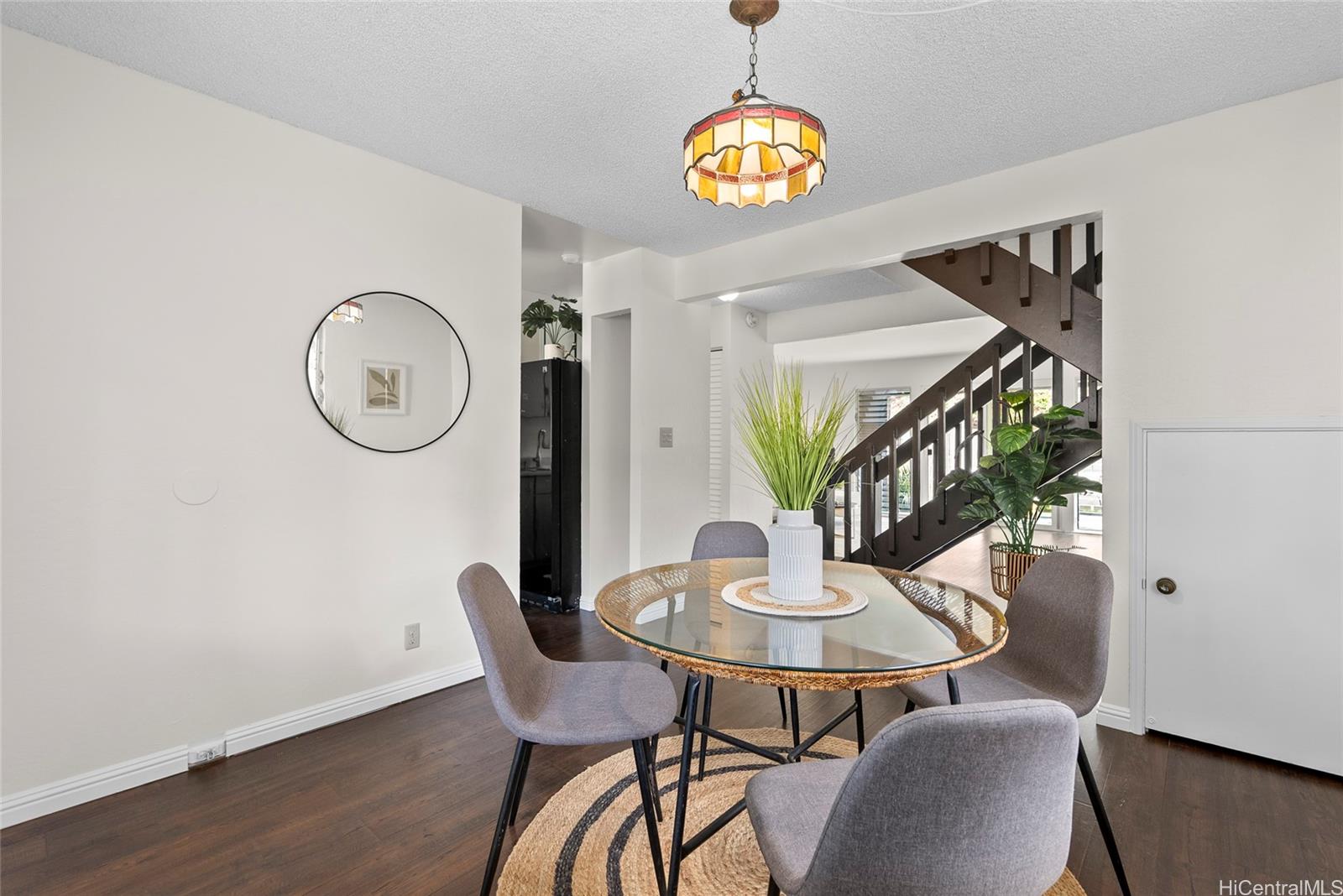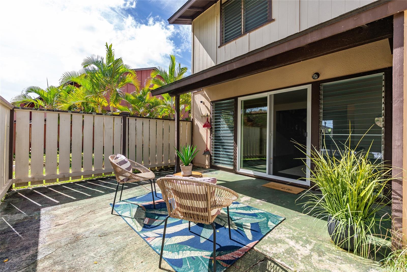 Welcome home to this desirable 3-bedroom, 2.5-bath townhome in the conveniently located Nob Hill community.. This desirable end-unit townhome is perfectly positioned on the outer rim of the community, offering exceptional privacy with no back neighbors, side windows for added light and cross breezes. The fenced lanai creates a peaceful outdoor retreat, ideal for relaxing or entertaining. Enjoy the convenience of two assigned parking stalls located right in front of the unit. The spacious layout lives more like a single-family home than a townhouse, offering an open and comfortable flow for everyday living. The primary suite features its own ensuite bath, while the two additional bedrooms provide flexibility for family, guests, or a home office. Centrally located near the Town Center of Mililani, with shopping, restaurants, schools, parks, and the community pool just minutes away. This home offers an ideal setting to enjoy the best of Mililani living.
