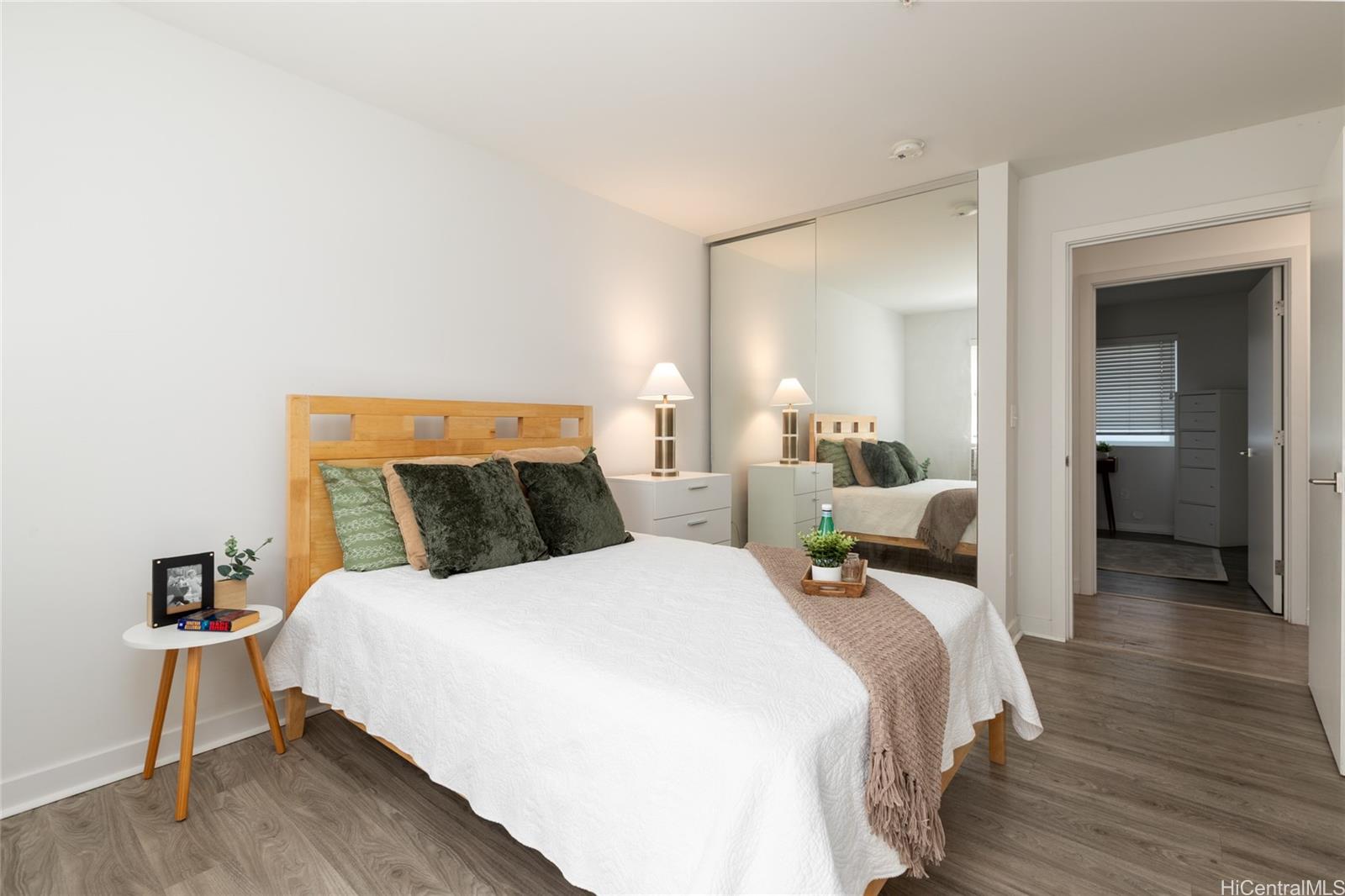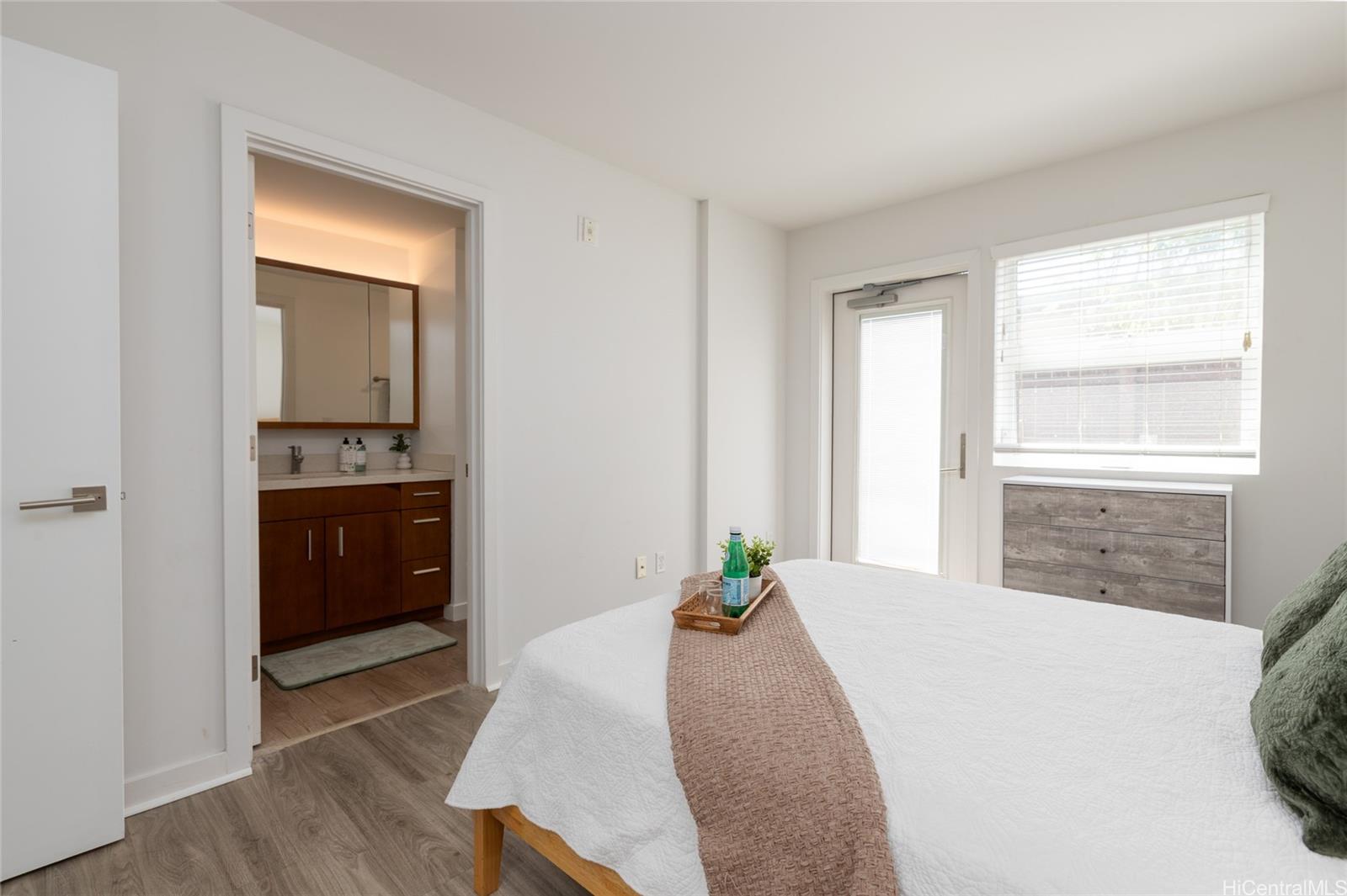 Experience modern island living in this rarely available 2-bedroom, 2-bath corner end unit at The Residence at Makiki — a well-maintained, Pet-Friendly building built in 2016. This GROUND FLOOR Unit offers exceptional privacy with an enclosed lanai, in-unit washer/dryer, and AC for year round comfort.  Enjoy the frosted glass cabinetry, stainless appliances and contemporary finishes. The extra large assigned parking stall is conveniently located right next to the elevator, and the assigned private storage locker provides added space for your belongings. Enjoy easy access to public transit and within just minutes from Downtown Honolulu, Ala Moana Center, UH, schools, churches, shopping, Blaisdell Center, Kakaakko and popular beach parks. VA approved building with several coveted Guest Parking stalls. Don't miss this opportunity to own this modern urban oasis — Priced under last sale!  Sprinklers installed and 100% insured.