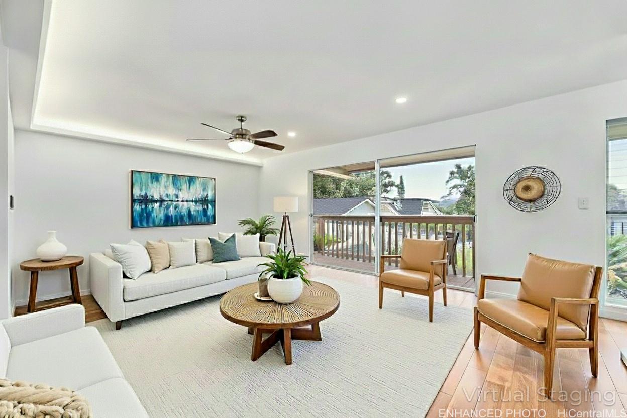 閑静なカネオヘ地区にある、美しく手入れされた3ベッドルーム、2.5バスルームのタウンハウスへようこそ。コオラウ山脈の素晴らしい景色と、ゆったりとしたウィンドワードのライフスタイルをお楽しみください。豊かな緑に囲まれ、フレンドリーな近所のニワトリたちが地域の魅力を添えています。室内は広々とした間取りで、リビングエリア全体にハードウッドとラミネートフローリング、バスルームはタイル張りの床、そして塗りたての壁が特徴です。広々とした2台用ガレージは十分な収納スペースを提供し、プライベートな中庭はくつろいだり、お客様をもてなしたりするのに最適です。居住者はコミュニティセンターを利用でき、ハレイワ・ジョーズなどのレストラン、ショッピング、学校、高速道路へのアクセスも良好です。H-3号線とリケリケ線を利用すれば、パールハーバー、ヒッカム、カネオヘ海兵隊基地(ハワイ)へもすぐにアクセスできます。この機会をお見逃しなく、今すぐ内覧のご予約を!(1枚以上の写真が加工されています)