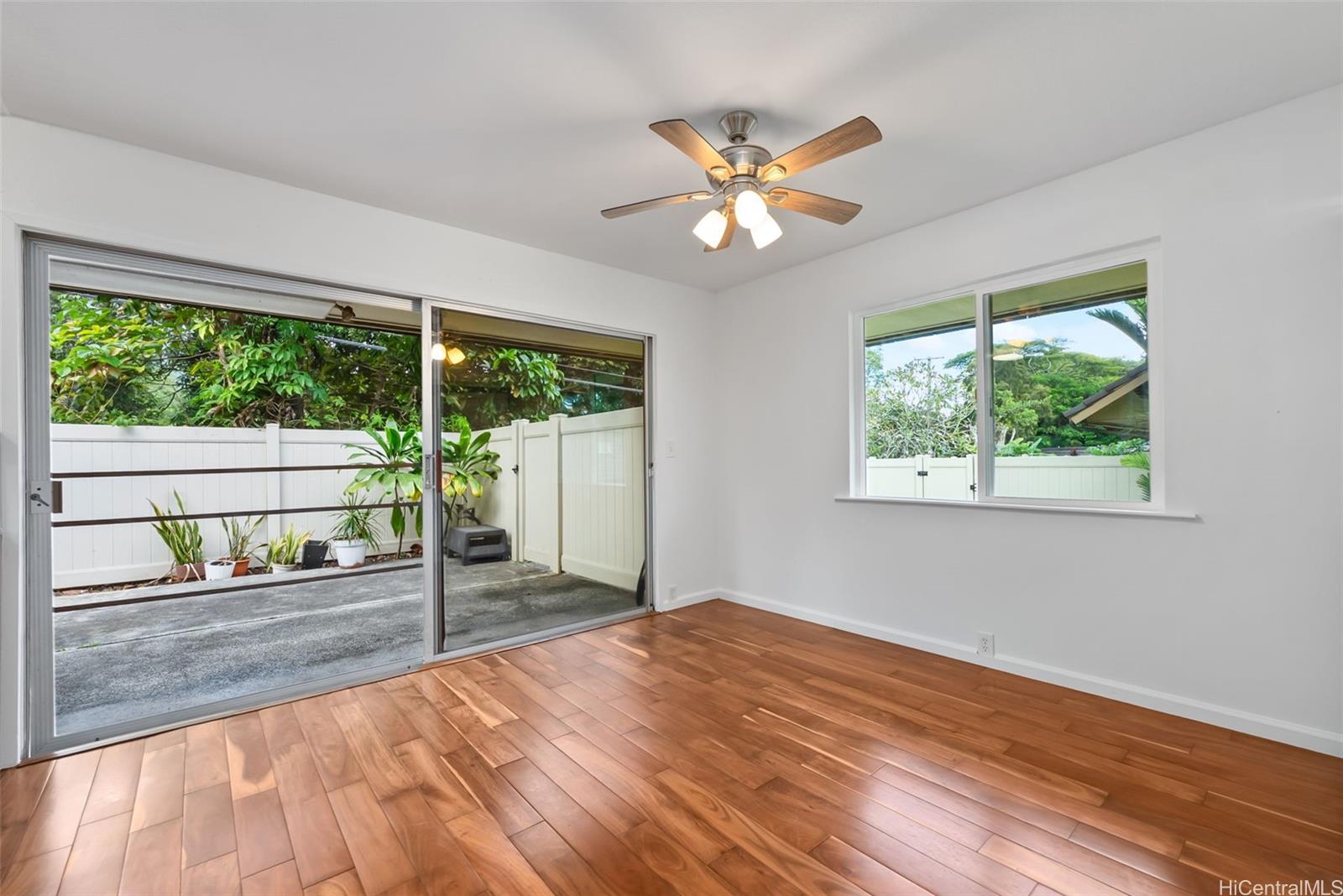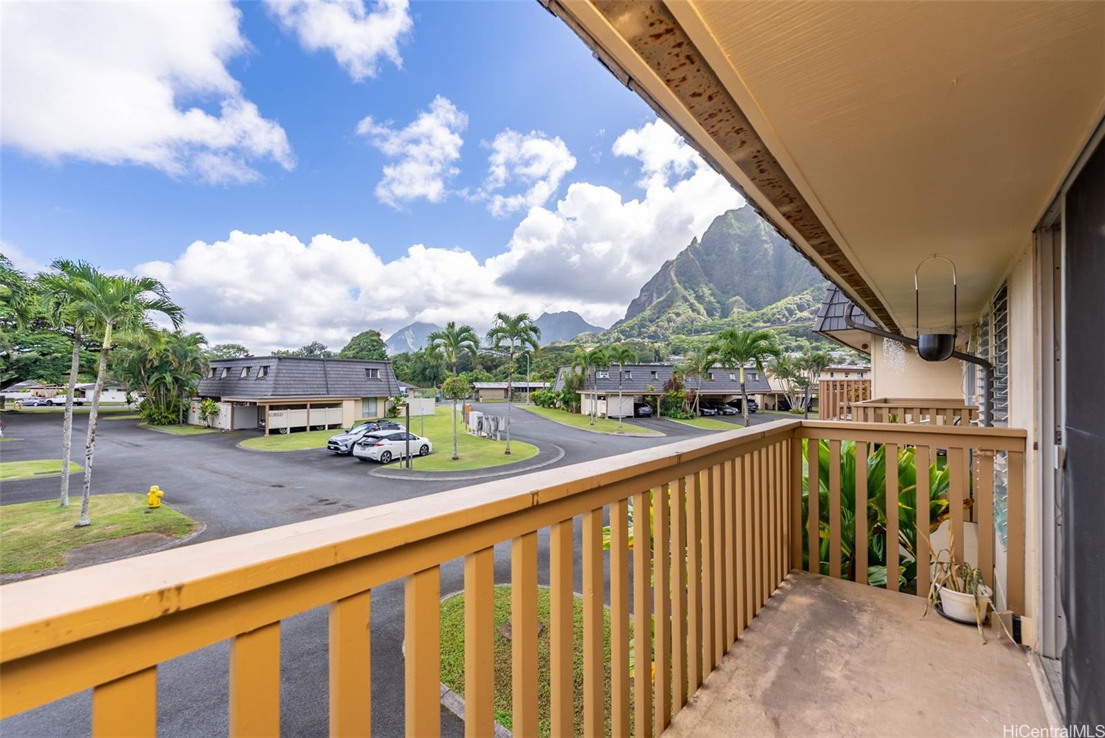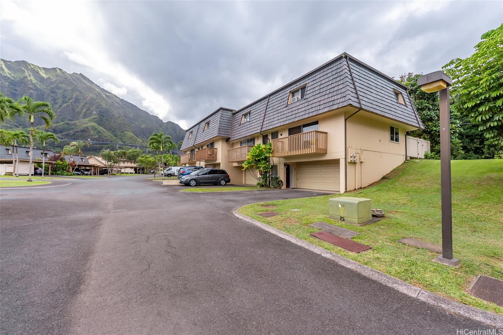 Welcome home to this beautifully maintained 3-bedroom, 2.5-bath townhouse in a peaceful Kaneohe community. Enjoy stunning views of the Ko'olau Mountains and the relaxed Windward lifestyle, surrounded by lush greenery and friendly neighborhood chickens that add a touch of local charm. Inside, you’ll find a spacious layout featuring hardwood and laminate flooring throughout the living areas, tiled bathroom floors, and freshly painted walls. The spacious two-car garage offers ample storage, and the private courtyard is perfect for relaxing or entertaining. Residents enjoy access to a community center and a convenient location just minutes from dining, including Haleiwa Joe’s, as well as shopping, schools, and freeway access. Easy routes via H-3 and Likelike offer a quick commute to Pearl Harbor, Hickam, and Kaneohe Marine Corps Base Hawaii. Don’t miss this opportunity — schedule your private showing today! (One or more photos are enhanced)