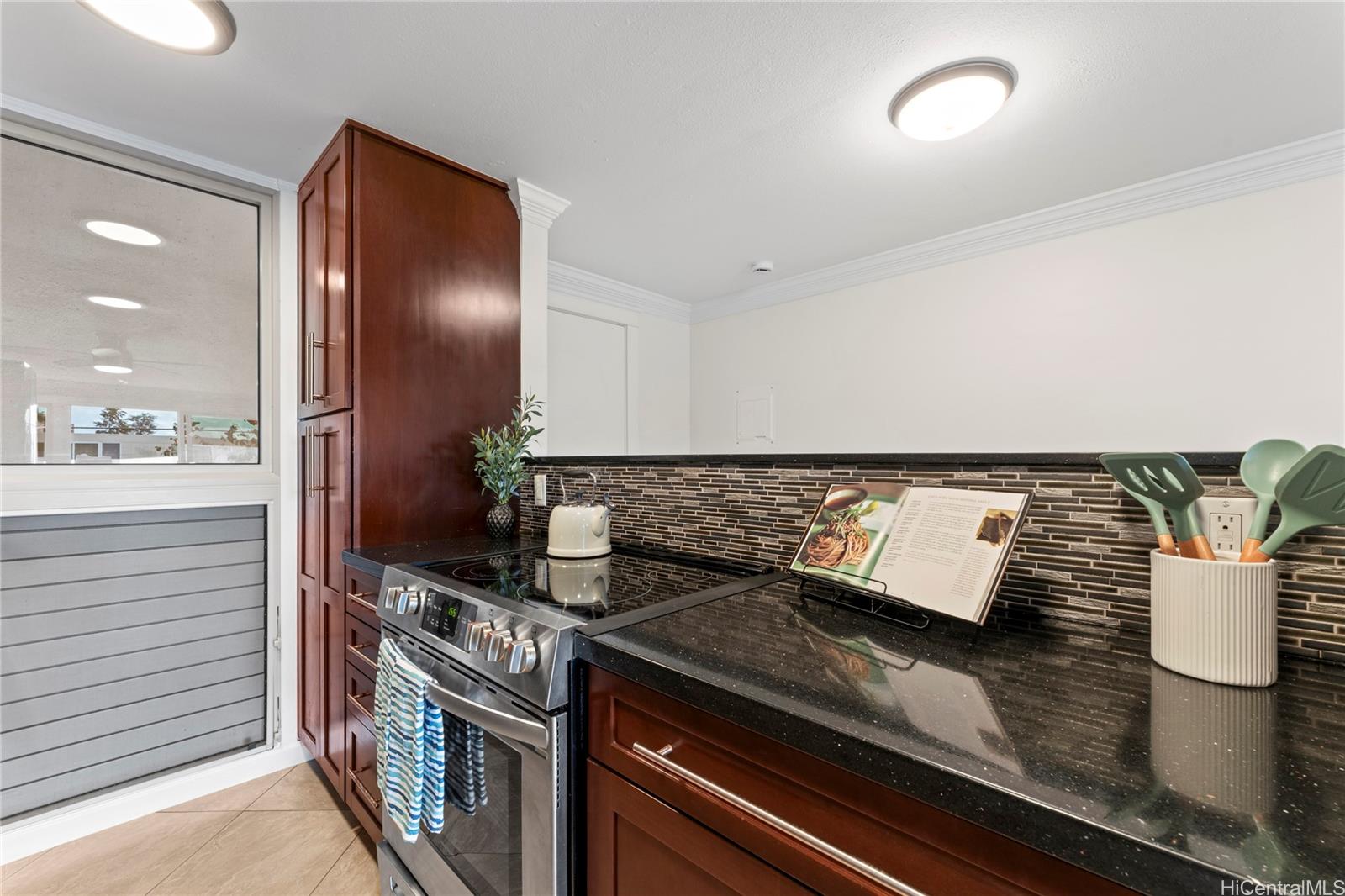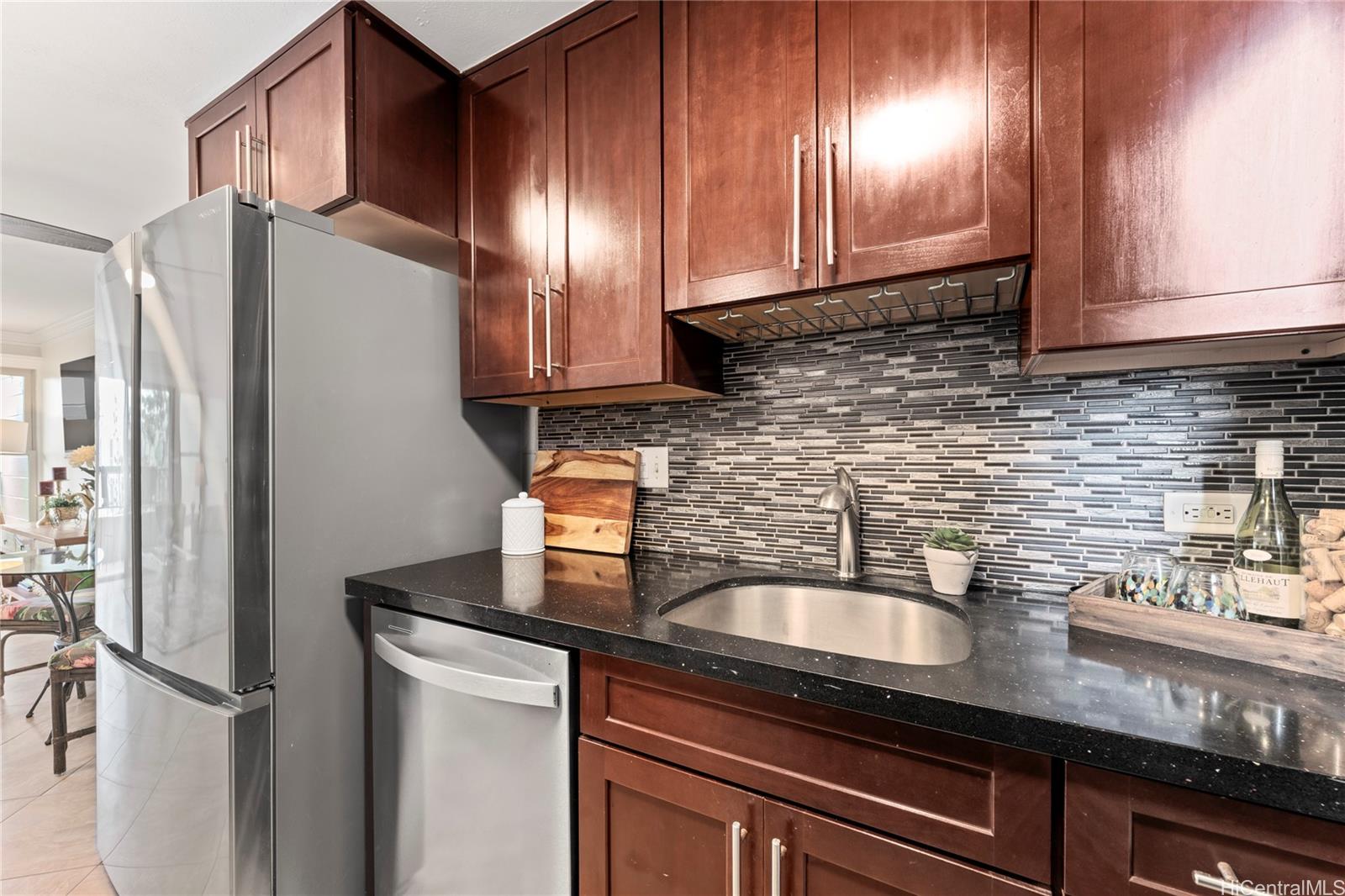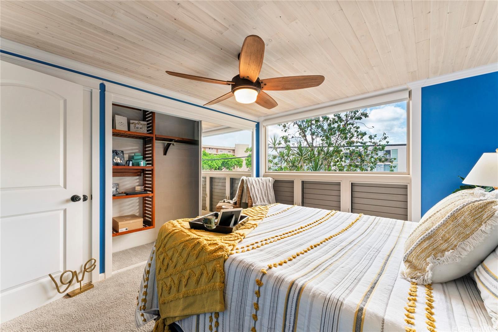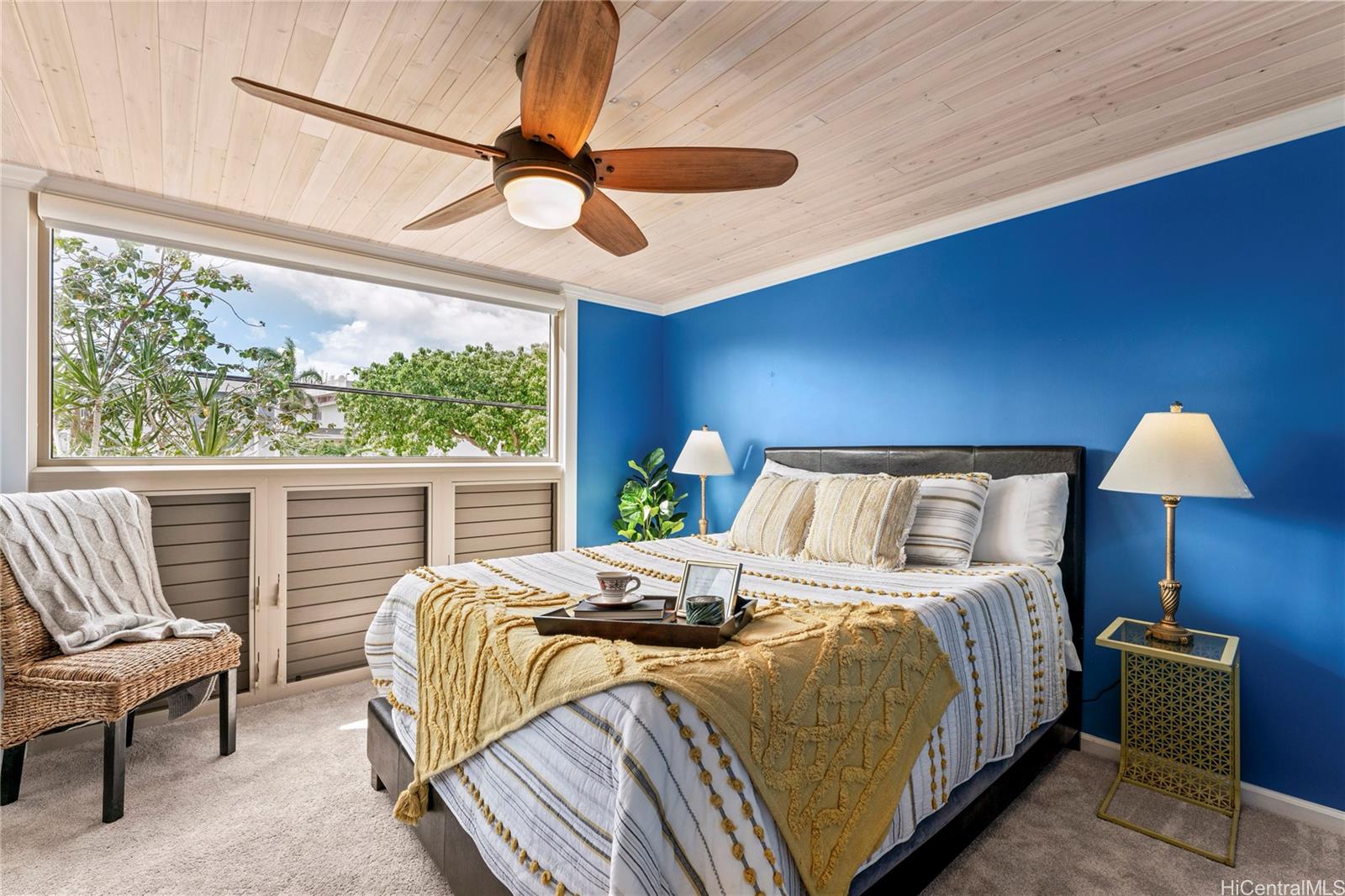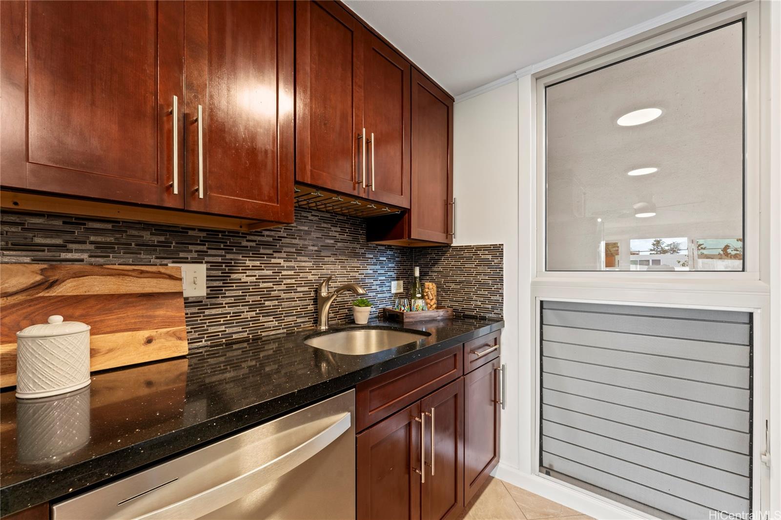 One block from the beach on North Shore, peek a boo ocean view, swimming pool & sauna, cool tile floors, in-unit laundry, large closets, updated kitchen/bathroom, lanai & trade winds. LARGE DOG FRIENDLY/pet friendly community. This fresh, townhouse style unit has a special design in which the bedrooms are under your own living area! No one to disturb you at night walking above. Enter on the third floor which is your living/dining/lanai area and the stairs to your left take you down to your bedrooms, bathroom and laundry area. No walkways in front of your bedrooms. Some of the best privacy you can get in a condo on the North Shore. The resident manager is always working to ensure residents have the cleanest and safest complex in the area. Secured salt water swimming pool and sauna area with bathrooms and shaded seating.
