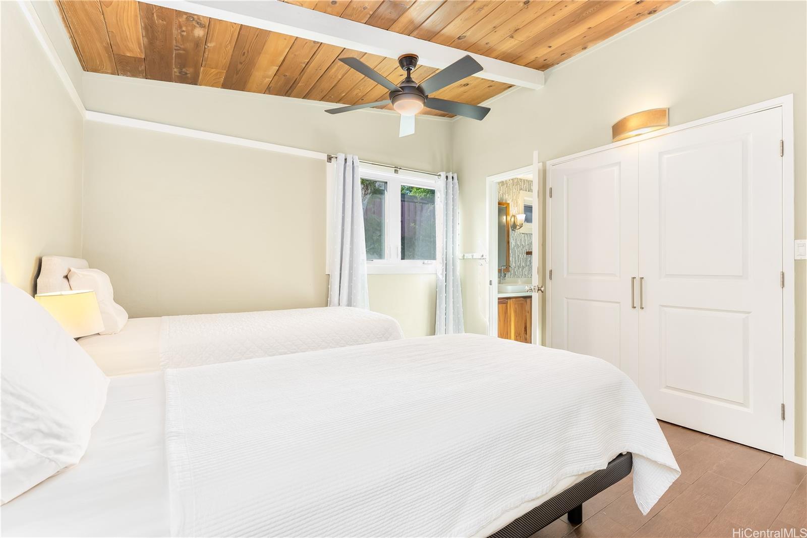 Welcome to this contemporary single-level home in the heart of Foster Village! This beautifully remodeled 3-bedroom, 2-bathroom residence offers an ideal blend of modern upgrades and comfortable living on a desired corner lot with charming curb appeal. Step through the ceramic-tiled double-door entry into a bright, open floor plan featuring vaulted open-beam ceilings and abundant natural light. The spacious kitchen impresses with sleek shaker cabinetry, subway tile backsplash, and stainless-steel appliances. Additional highlights include an owned PV solar and Tesla battery system, newer split A/C units, custom Inspired Closet systems in every bedroom, and upgraded vinyl windows and sliding doors. The newly refinished covered cabana looks out to the landscaped back yard perfect for get togethers and offers an option to enclose for additional living space. The enclosed garage is a rare offering in the neighborhood with generous storage options and higher voltage outlet for electric car charging. Don’t miss out on this exceptional opportunity!