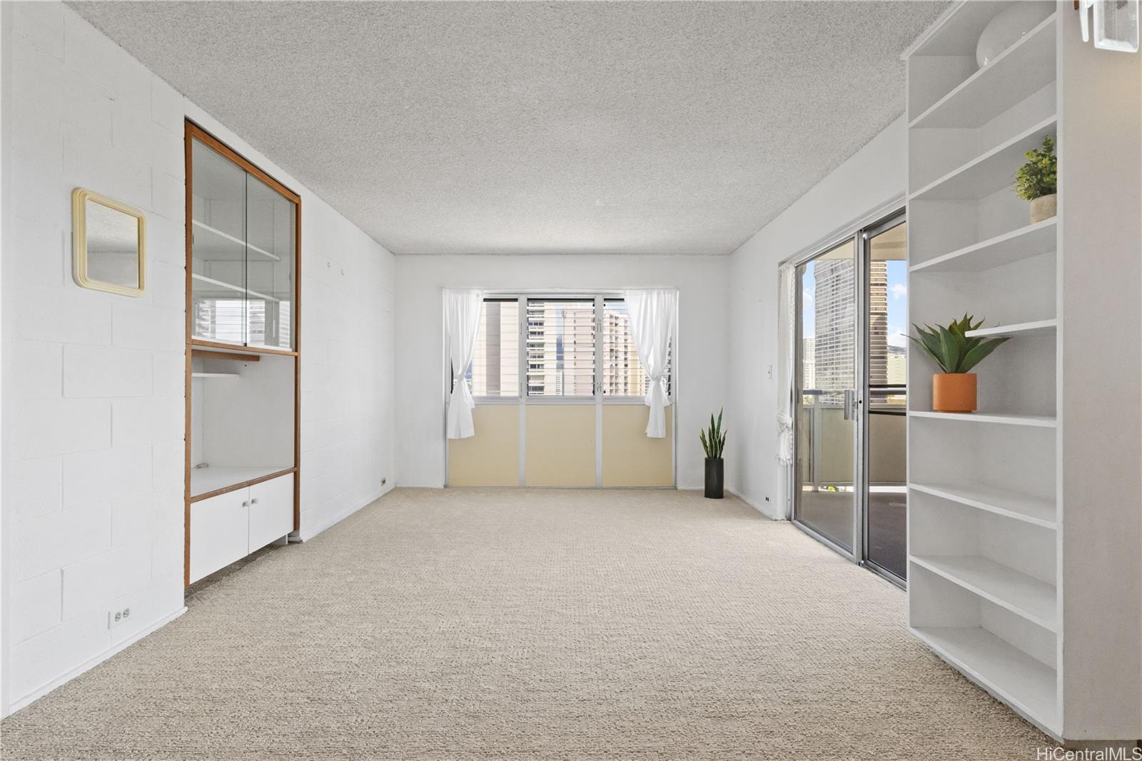 Location is everything when choosing your home in Honolulu! Cross the canal from Waikiki, 'Ala Wai Cove' offers the perfect balance of convenience and comfort. This cozy top-floor studio features 402 sqft of interior space and a spacious 85 sqft open lanai, ideal for enjoying the island breeze and mountain views. There is a separate storage locker on the same floor. Positioned on the cooler side of the building, this residence enjoys a wonderful cross breeze throughout the day, keeping the space naturally comfortable. The unit also includes one full-size assigned parking stall, a rare and valuable feature in this area. Installed new carpet and interior freshly painted. Just one block from Iolani School, the premier school, and a few minutes drive from the University of Hawaii. Easy access to shopping, dining and H-1 freeway, the location couldn’t be more convenient. Plus, the upcoming Ala Wai bridge project will soon make walking or biking into Waikiki effortless - connecting you to the best of both worlds! Whether you're a first-time home buyer, student, or investor looking for a well-located property with solid value and potential, Ala Wai Cove is an opportunity not to be missed.