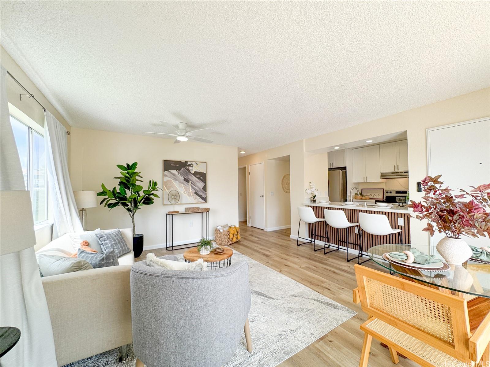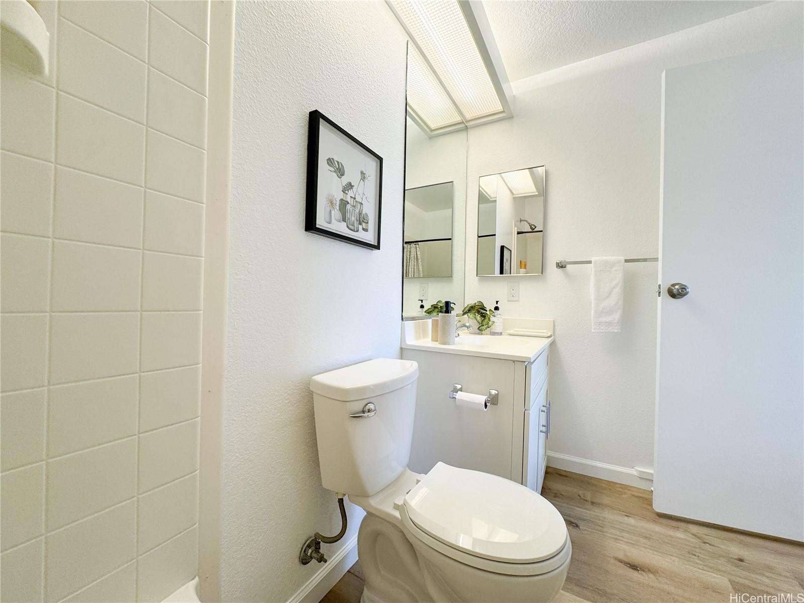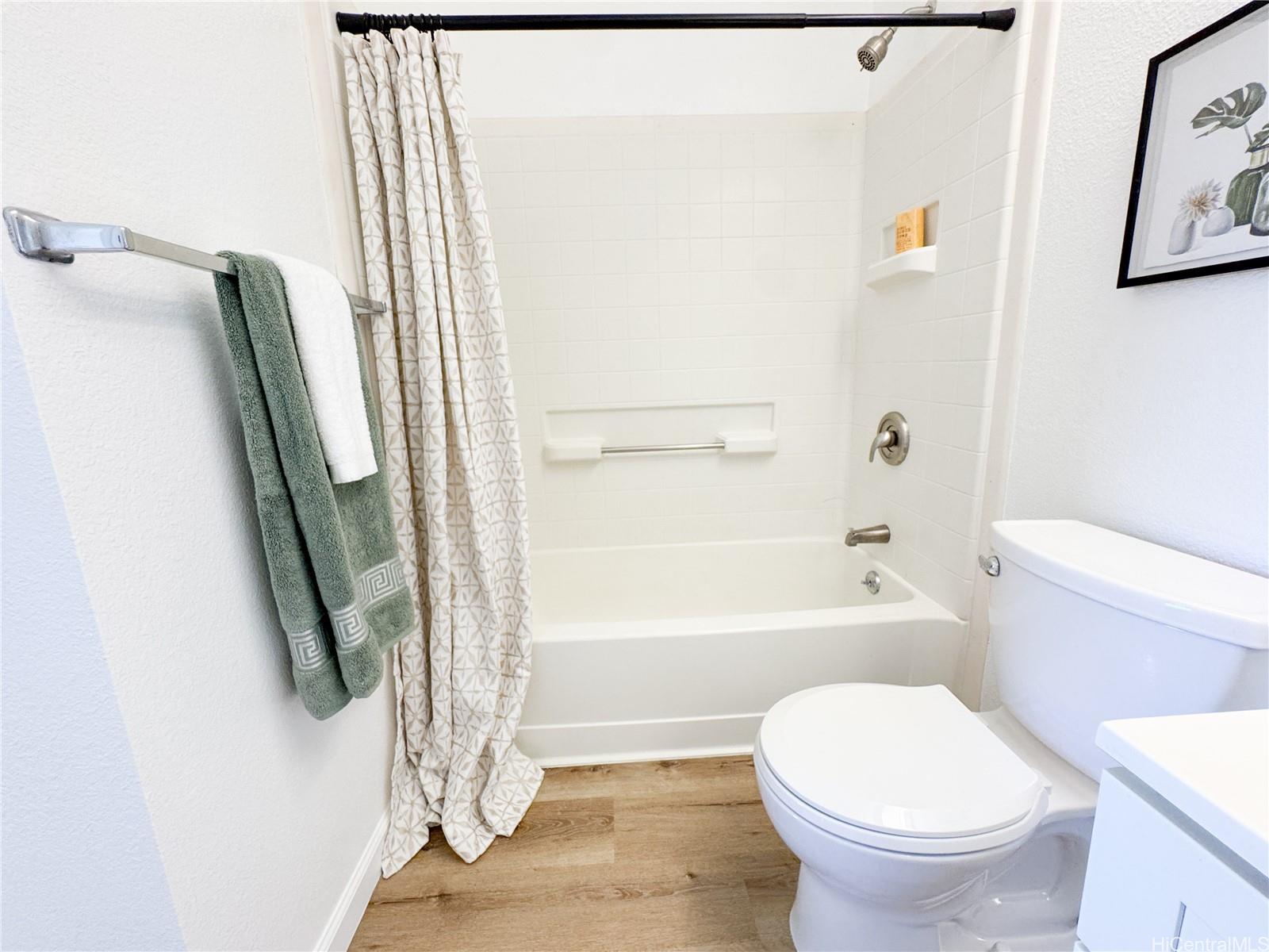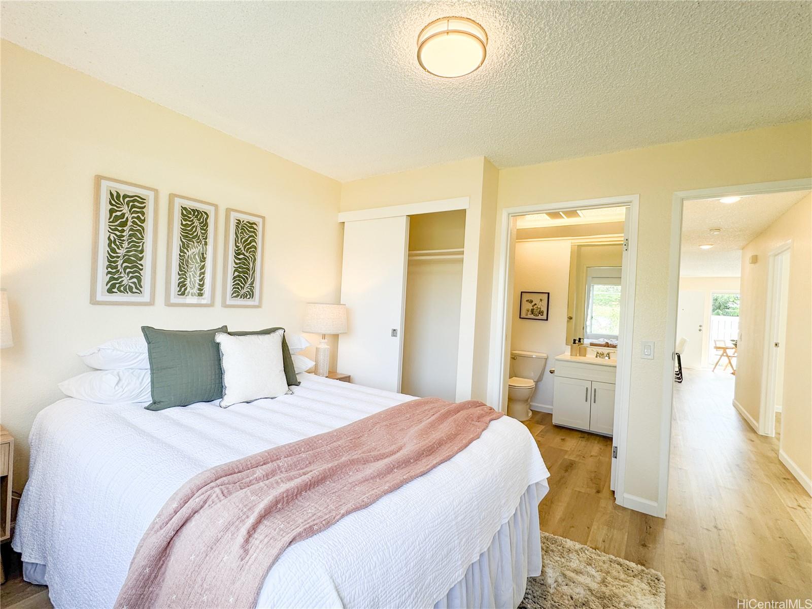 Welcome to your New Home in the heart of Mililani Mauka! Beautiful, completely remodeled 3bedroom 2bath ground floor end unit townhome. Ideally located on the perimeter of the Hillsdale townhome complex with no neighbor on one side or in the back, only serene green space & extra street parking. Fabulous Upgrades include NEW stainless-steel appliances, dishwasher, stove, refrigerator, large kitchen sink, custom cabinets, & gorgeous quartz countertops. New luxury vinyl plank flooring throughout entire home in neutral tones leaving room for your creative design. All new paint, large stacked washer/dryer in the unit. Two full sized side by side parking stalls right in front. Enjoy the many recreation centers, the newest Rec 7 boasting a heated saline pool, kiddie pool, internet cafe, volleyball, free Wi-Fi, indoor volleyball, basketball courts, BBQ pavilion and playground. Conveniently located near top-rated schools, shopping, dining, this home is ideal for those seeking both comfort and convenience. Quick access to H-2 freeway and Kam Hwy, shopping centers, restaurants, schools and Park and Ride. Don’t miss this wonderful opportunity—contact us today for a private showing!