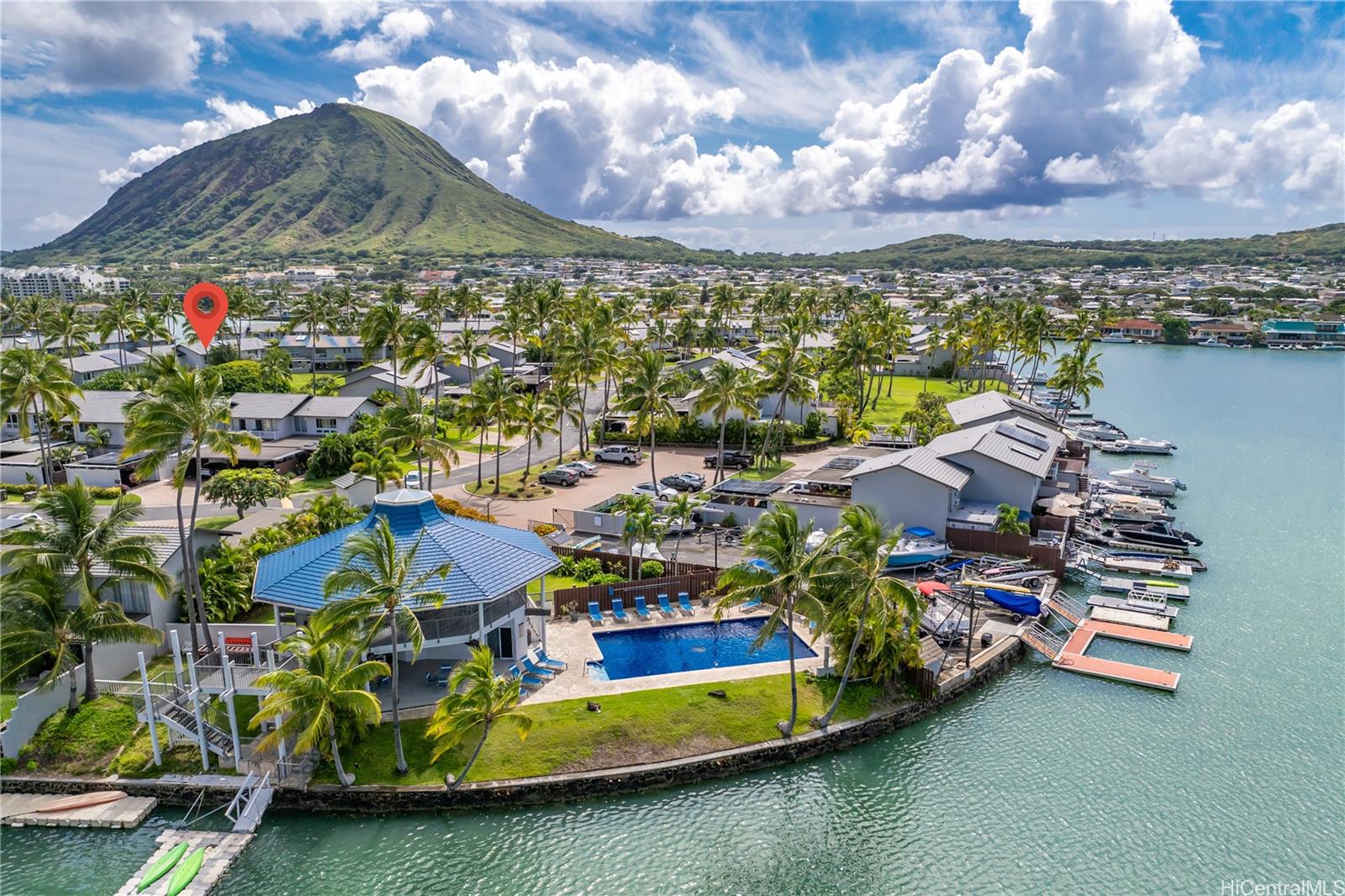 Don't miss this opportunity to live on Koko Isle-one of the most popular Marina Front developments in Hawaii Kai. This delightful 3 bedroom/2.5 bath interior unit with spacious covered lanai, backs onto a peaceful tree shaded park with walking path. An attached 2 car covered carport leads to the extra large front courtyard with storage closet, tropical landscaping and flagstone pavers. Large picture windows frame the inviting living room with natural light. The open style kitchen features a pass through window counter to the covered lanai and newly installed refrigerator and oven in 2024. $45,000 of recent upgrades include popcorn ceiling removal, all new interior paint, plush Berber carpeting upstairs, and new ceiling fans throughout. Spacious master bedroom suite includes walk in closet, updated shower and dual sinks. Private boat slip lease available through the Association. Koko Isle has a unique Resort-like feel as you drive onto your own palm tree graced island which includes a blue tiled pool, Club House, 2 parks, community boat dock w/ boat lift, gym, Manager's office and camera security. Open House Saturday 11/1 and Sunday 11/2 from 2-5PM.