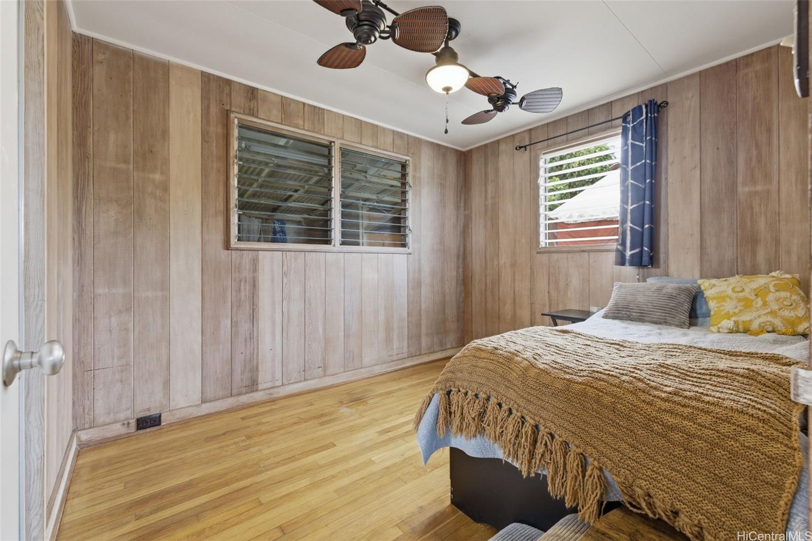 This 2-bedroom, 1-bath single-family cottage in Aiea Heights offers a peaceful setting with the perfect balance of comfort and accessibility. Set back along a private road, the home serves as a quiet retreat on a 4,836 sq. ft. lot with ample space for gardening, recreation, or future expansion. The natural surroundings feature lush greenery and mature fruit trees, creating a calm and welcoming hillside atmosphere. Offering the advantages of single-family ownership with a low monthly maintenance fee, this home delivers the best of both worlds—a tranquil residential setting just minutes from shopping, dining, schools, and freeway access. With its generous lot size, serene location, and timeless character, this property stands out as a truly special find in Aiea Heights.