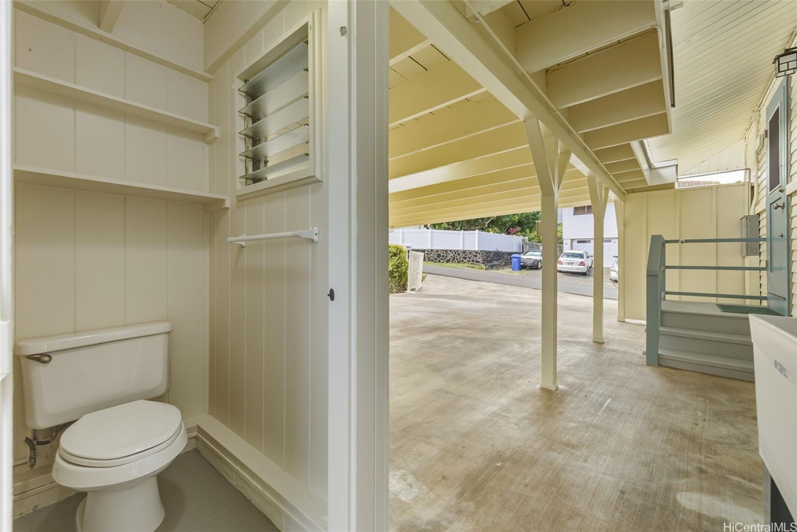 Inside, the home showcases original oak floors offering timeless warmth and charm. The living room enjoys expansive views of Kaneohe Bay from large window. The 2 car carport includes 2 large storage closets and a lavatory. A spacious covered patio offers a comfortable area for relaxing or entertaining, rain or shine. The property also features a mature avocado tree, mock orange hedge & a well maintained yard.