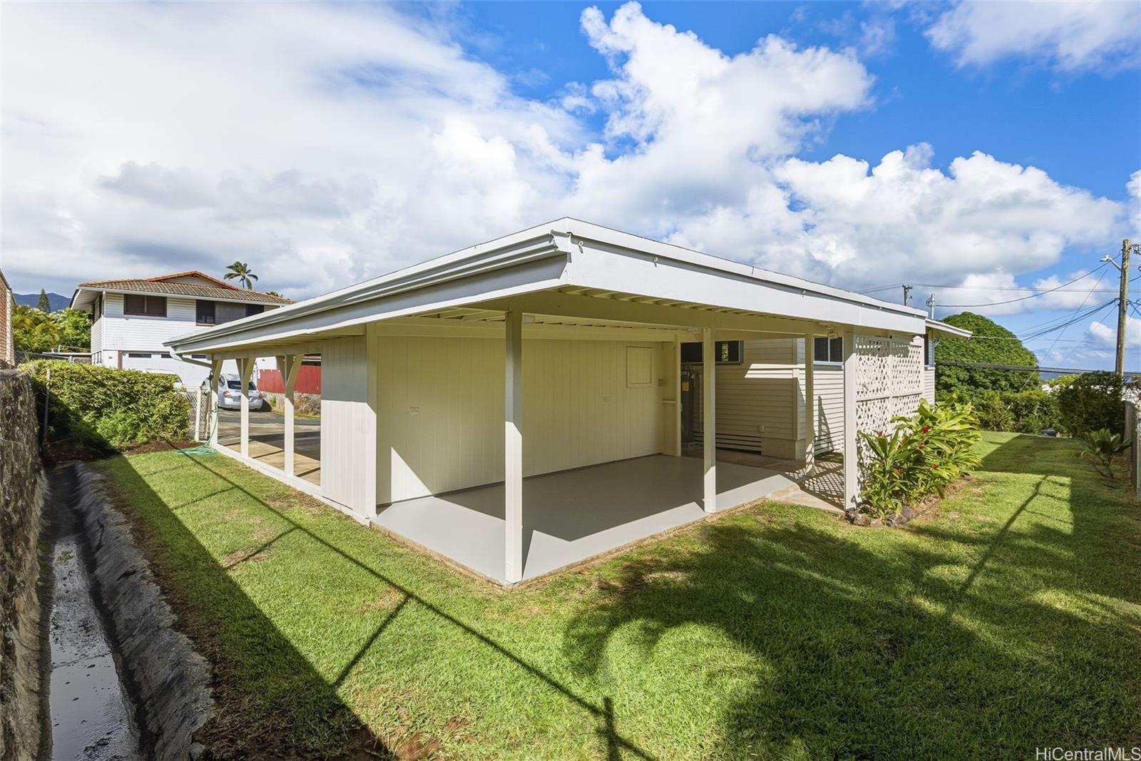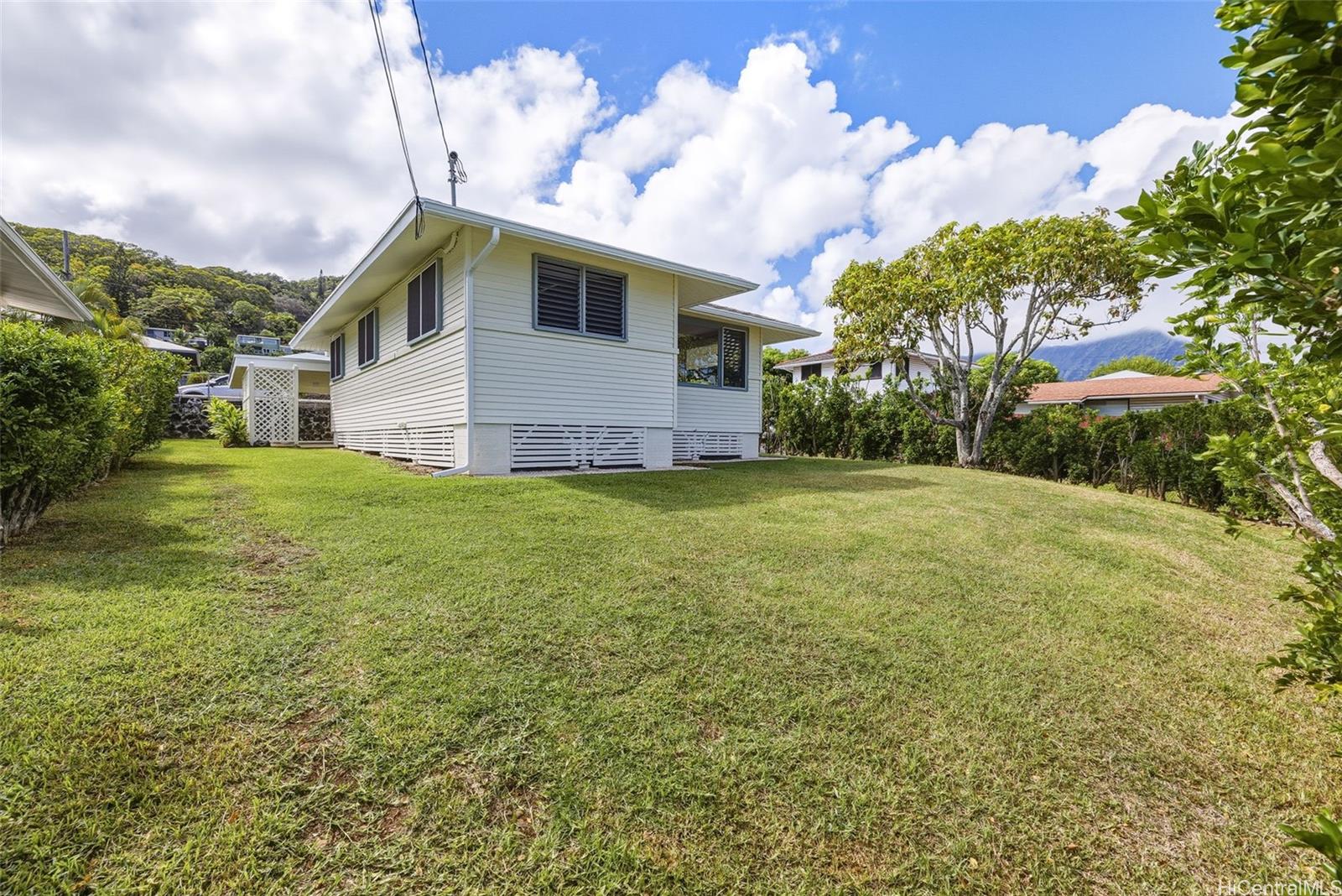 魅力的な角地に建つ、美しくリフォームされた一戸建て住宅で、カマアイナな暮らしをご体験ください。最近リフォームされたばかりで、真新しいキッチンとバスルームを備えています。バスルームには、クォーツカウンタートップのダブル洗面台、照明付きミラー、シャワー付きバスタブが備わっています。キッチンは、青い下部キャビネットと白い上部キャビネットを組み合わせた現代的な配色で、ステンレス製の家電製品とクォーツカウンタートップが備わっています。家は内外ともに新しく塗装されています。完全にフェンスで囲まれた庭と新しい雨樋が、魅力と機能性を高めています。家の中には、時代を超えた温かみと魅力を提供するオリジナルのオーク材の床が残っています。リビングルームからは大きな窓からカネオヘ湾の雄大な景色を一望できます。2台分のカーポートには、2つの大型収納クローゼットと洗面所があります。広々とした屋根付きパティオは、雨の日も晴れの日も、くつろいだり、お客様をもてなしたりする快適な空間を提供します。この物件には、成熟したアボカドの木、モクレン色の生垣、そして手入れの行き届いた庭も魅力です。 H-3、パリ&リケリケ・ハイウェイへのアクセスに便利なこの物件は、すぐに入居可能で、島の伝統的な雰囲気とモダンな設備、そしてオアフ島ウィンドワードの最高のロケーションを兼ね備えています。物件への入り口はミキオラ・ドライブにあります。現状有姿で販売されます。