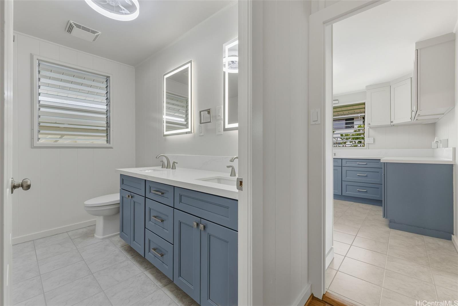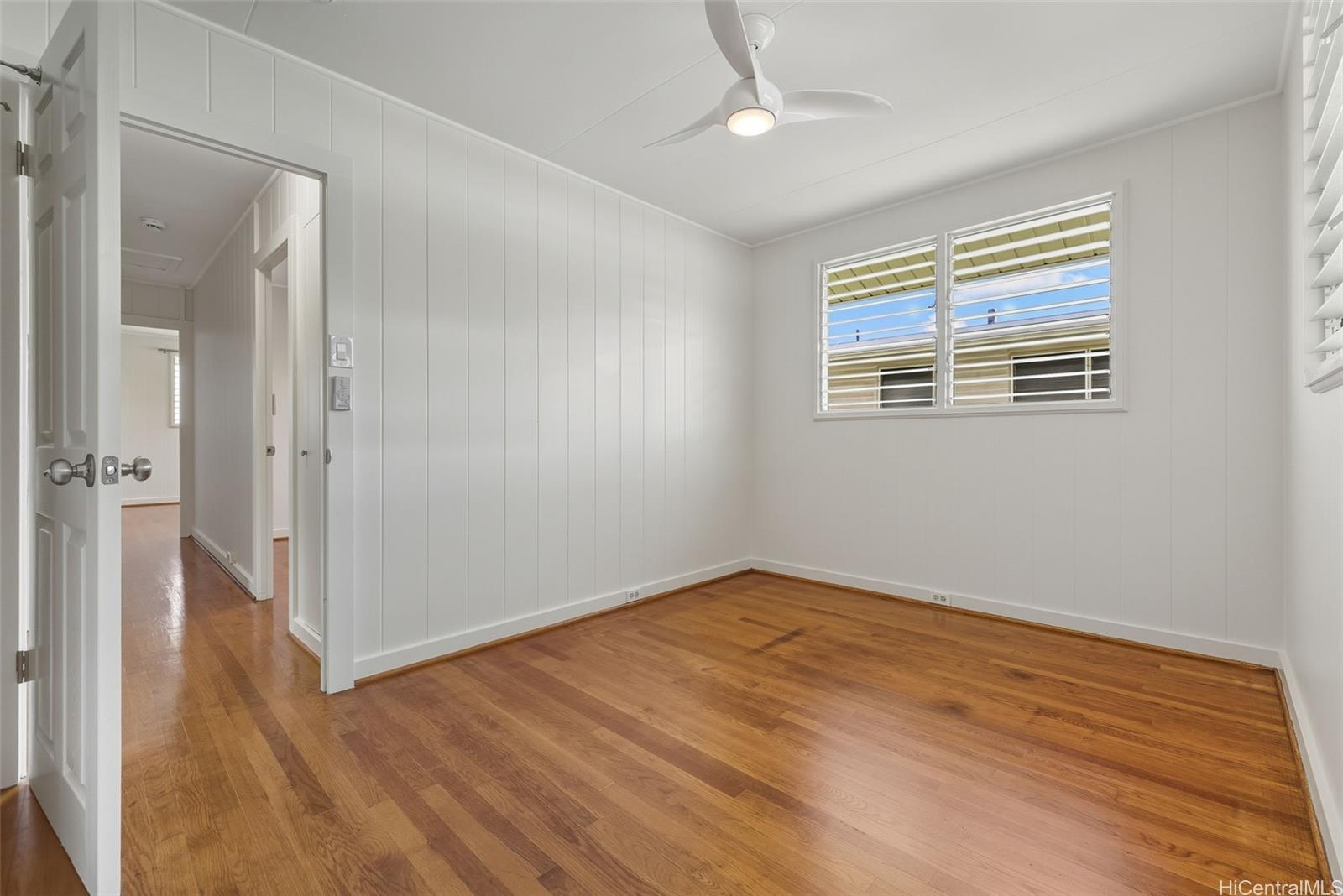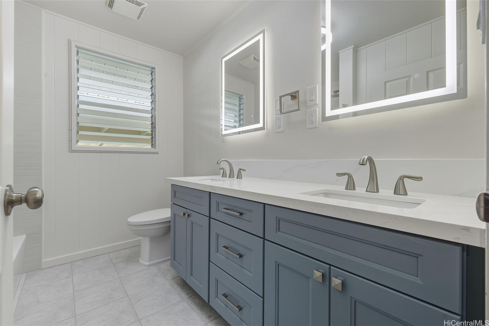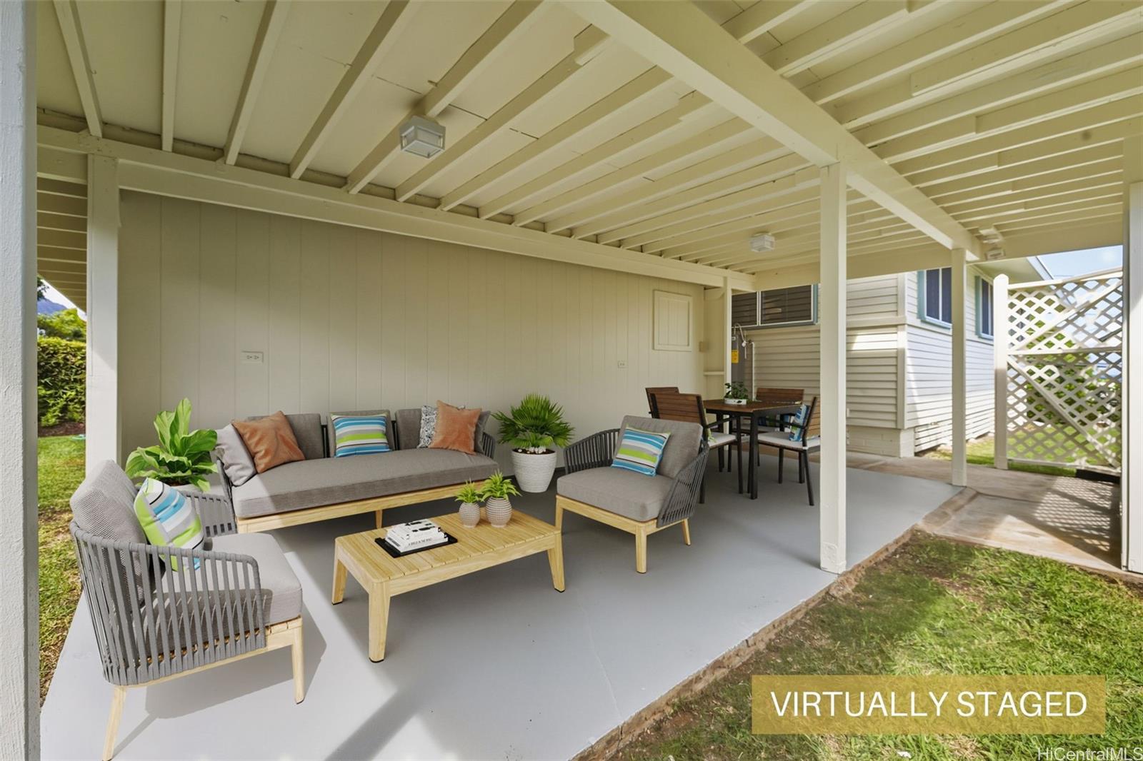 Experience kama'aina living in this beautifully updated single-family home on a desirable corner lot. Recently renovated with a brand-new kitchen and bathroom. Bathroom features a dual vanity with Quartz countertops, lighted mirrors, and tub with shower. Kitchen has contemporary color scheme with blue lower cabinets and white uppers with stainless steel appliances and Quartz countertops. The house has been freshly painted inside and out. A fully fenced yard and new gutters add to the appeal and functionality.
