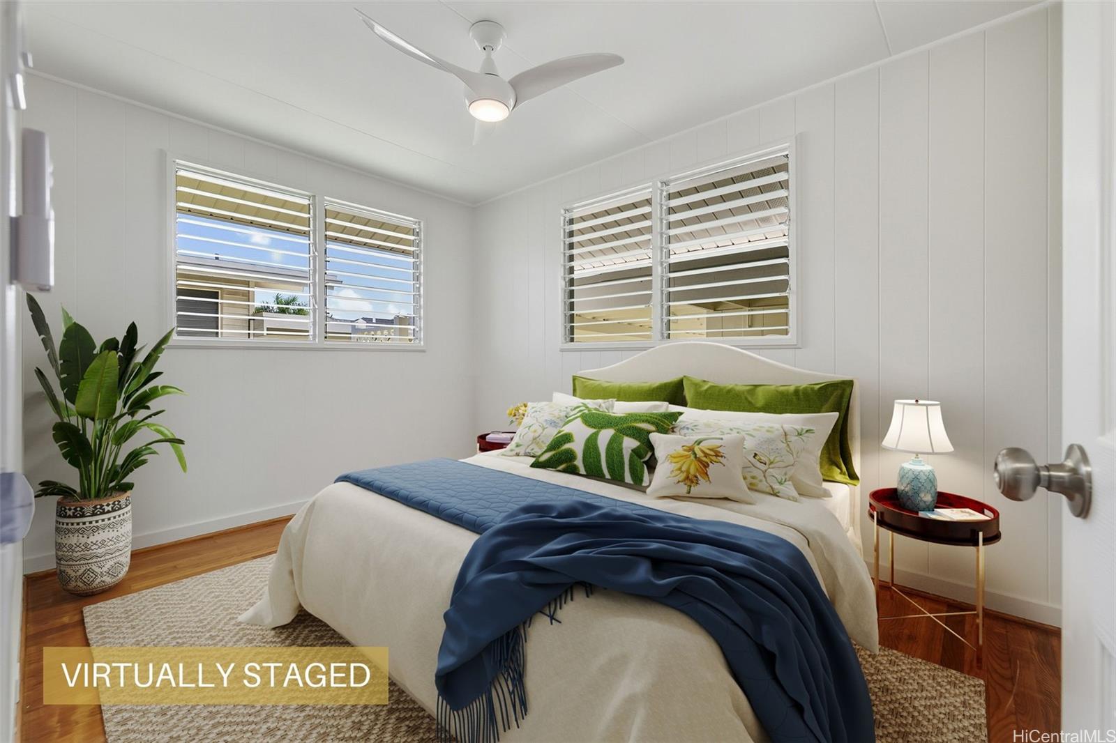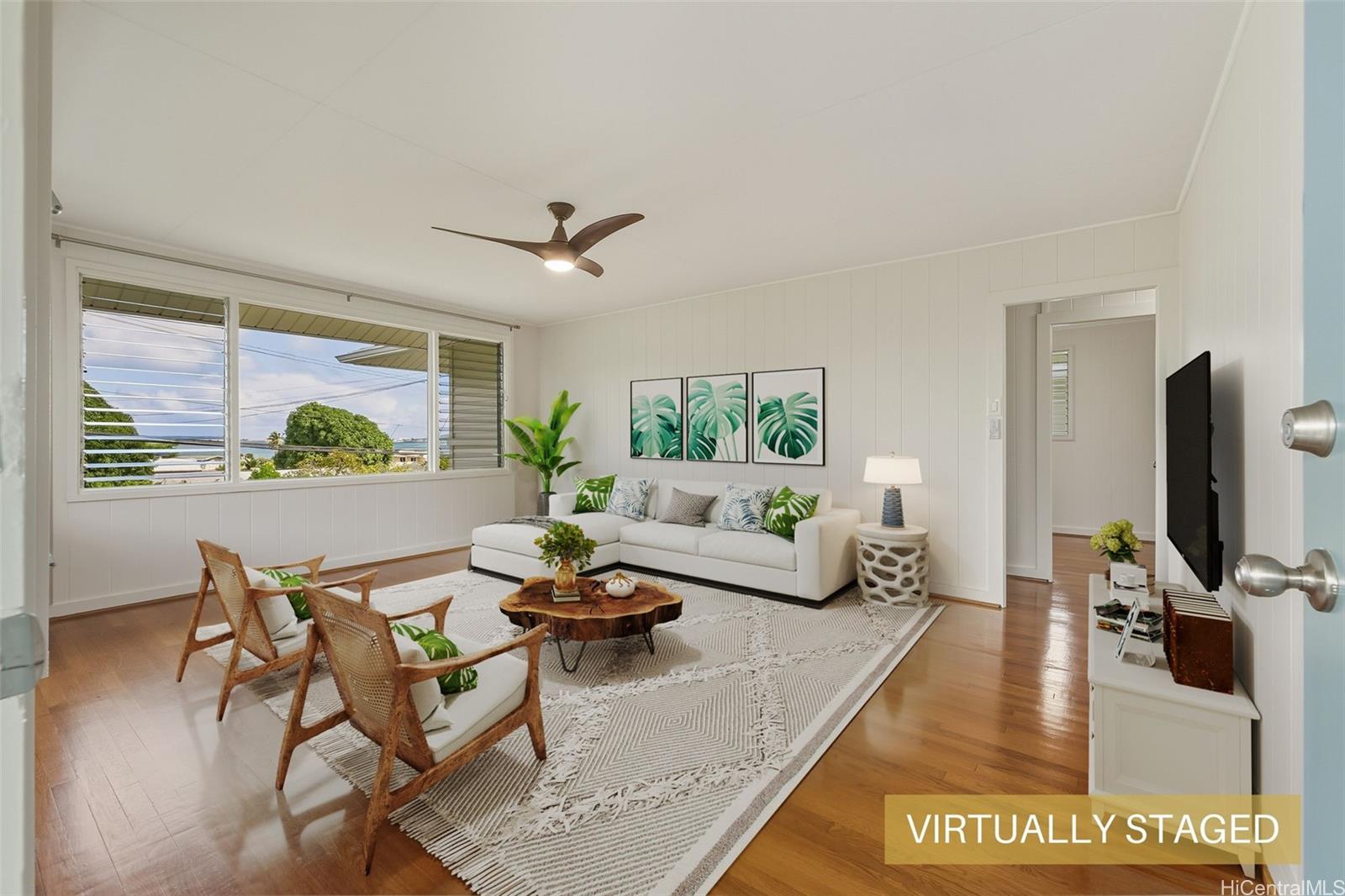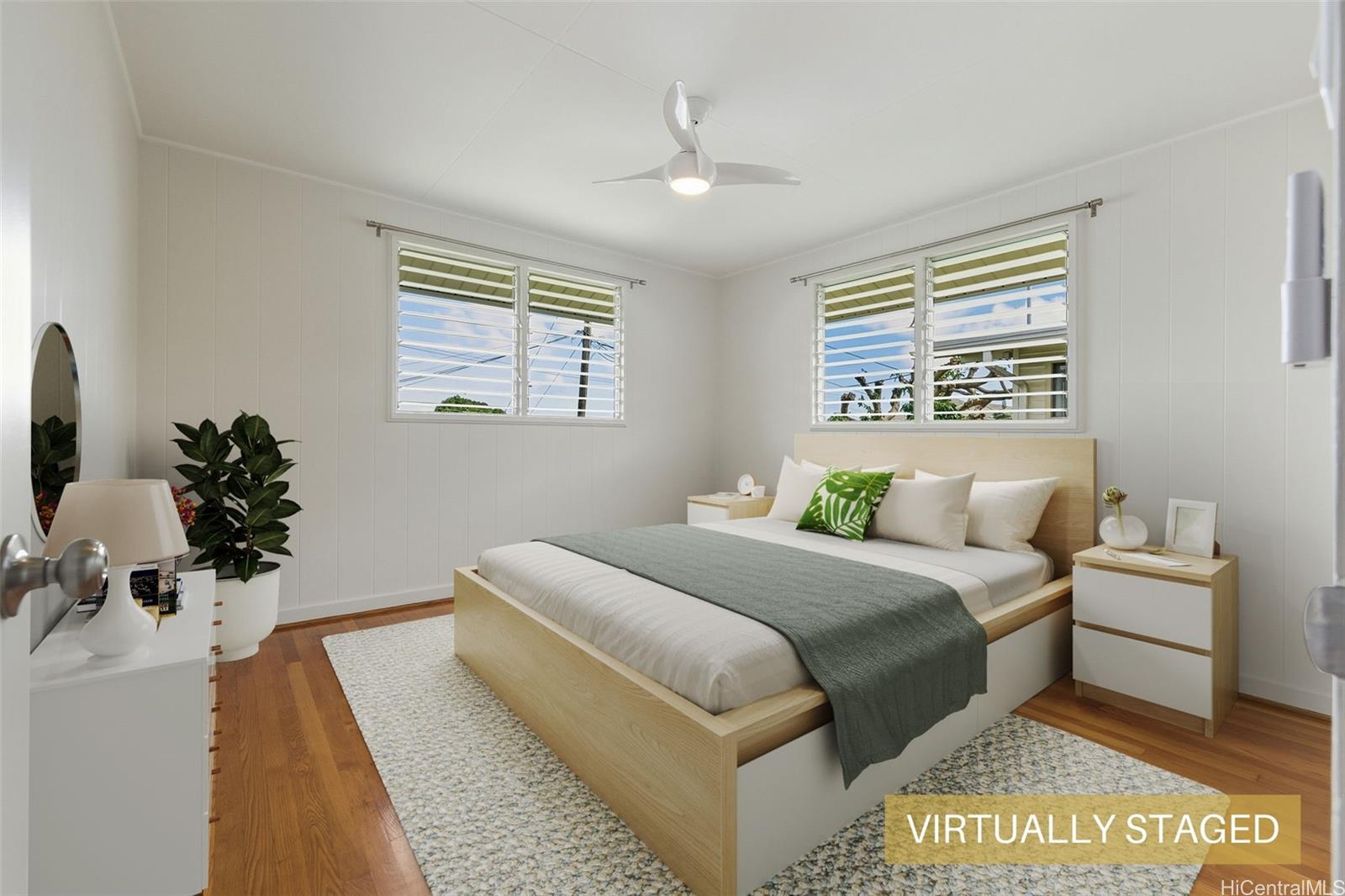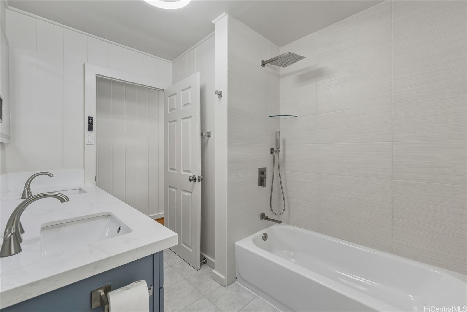 Experience kama'aina living in this beautifully updated single-family home on a desirable corner lot. Recently renovated with a brand-new kitchen and bathroom. Bathroom features a dual vanity with Quartz countertops, lighted mirrors, and tub with shower. Kitchen has contemporary color scheme with blue lower cabinets and white uppers with stainless steel appliances and Quartz countertops. The house has been freshly painted inside and out. A fully fenced yard and new gutters add to the appeal and functionality.