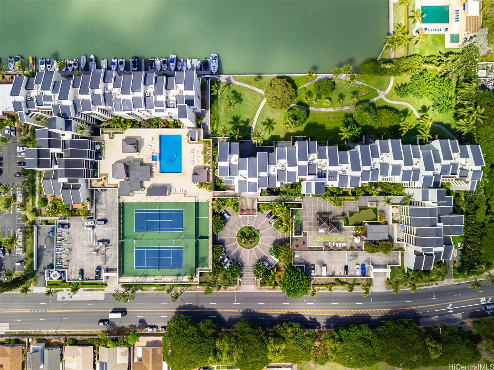Welcome to the Esplanade in Hawaii Kai! Experience marina-front living in one of East Honolulu’s most desirable communities. The Esplanade offers resort-style amenities including a saltwater pool, jacuzzi, tennis and pickleball courts, fitness center, steam rooms, multiple BBQ areas, and a spacious clubhouse perfect for gatherings. This corner-end 1-bedroom unit features nearly 900 square feet of interior space. Ideally positioned above the designated “quiet deck,” the unit enjoys a peaceful setting away from the typical high-rise building foot and noise traffic. The unit is deeded with one covered parking stall and ample guest parking for visitors. Enjoy the convenience of being close to Hawaii Kai’s shopping, dining, and marina activities. Come enjoy the Hawaii Kai Marina lifestyle and take advantage of the serene and resort-like atmosphere. *Some photos have been digitally enhanced and virtually staged*