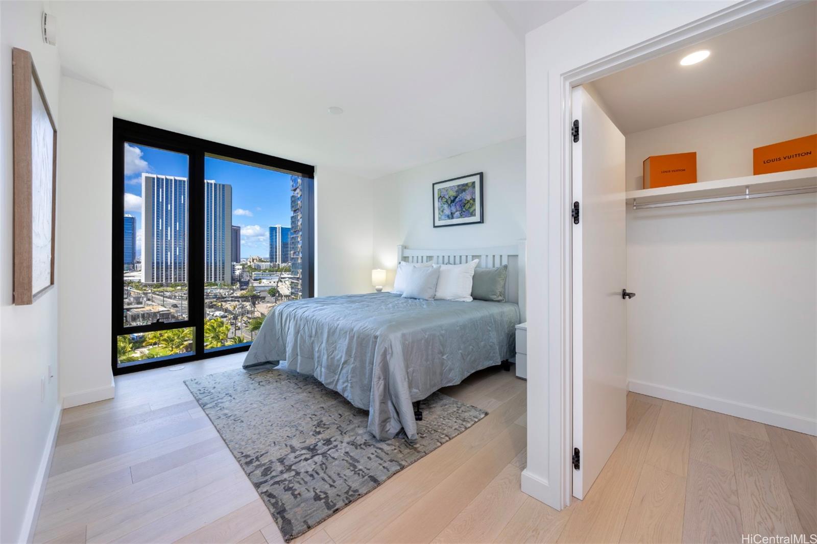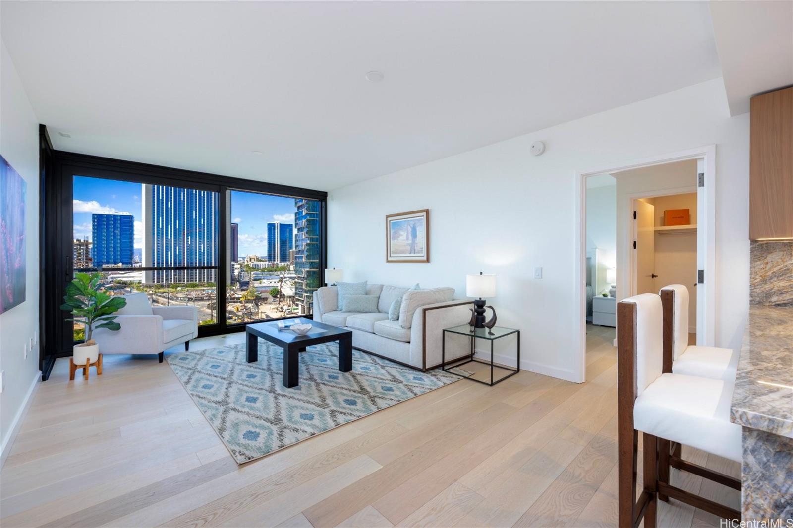 ビクトリア・プレイスは、ホノルルの超高級コンドミニアムの象徴として、その洗練されたリゾートアメニティ、ブティックサービス、そしてビーチ、公園、ショップ、レストランへの近さで高い評価を得ています。2ベッドルーム、2バスルームのこのレジデンスは、1,107平方フィートのモダンデザインフロアプランで洗練されたラグジュアリーな暮らしを提供します。リビングルームと両方のベッドルームからは太平洋とボートハーバーの眺望をお楽しみいただけます。最高級のSub-ZeroとWolfの家電製品と、エレガントな大理石張りのバーカウンターを備えたシェフズキッチンは、メインリビングルームと一体となり、モダンでラグジュアリーなライフスタイル体験を提供します。メインベッドルームスイートには、ウォークインクローゼット、ウォークインシャワールームと深めのバスタブを備えたリゾート仕様の専用バスルームが備わっています。 3つのプール、最先端のフィットネスセンター、スパ、屋外カバナ、バーベキューエリア、ワインセラー、シェフズキッチン、プライベートダイニングルーム、シアタールーム、メディアルーム、ゲストスイートなど、ワールドクラスのアメニティをお楽しみください。ホノルルの中心部に位置する、ワンランク上のラグジュアリー。ビクトリアプレイス903号室へようこそ。