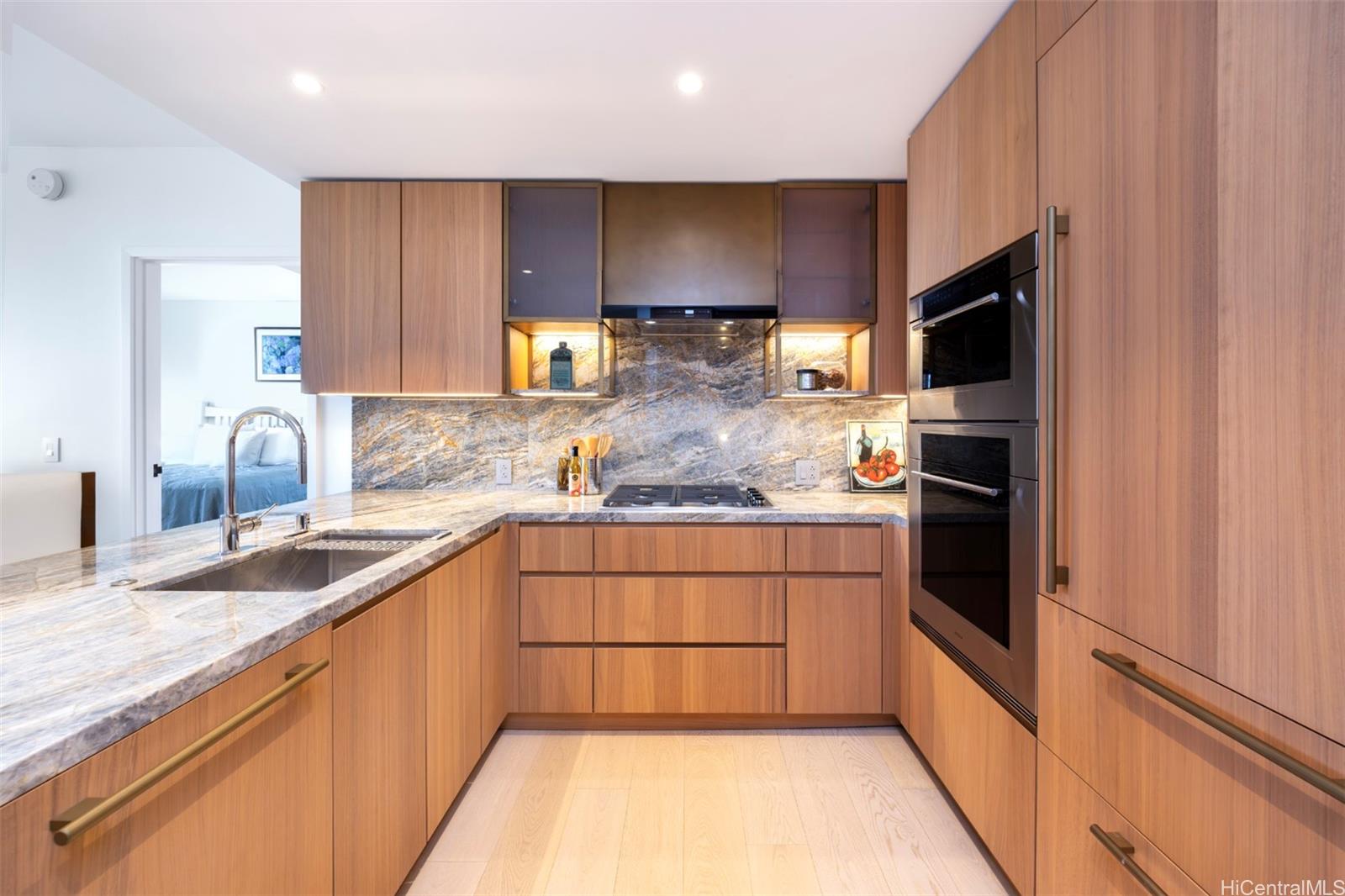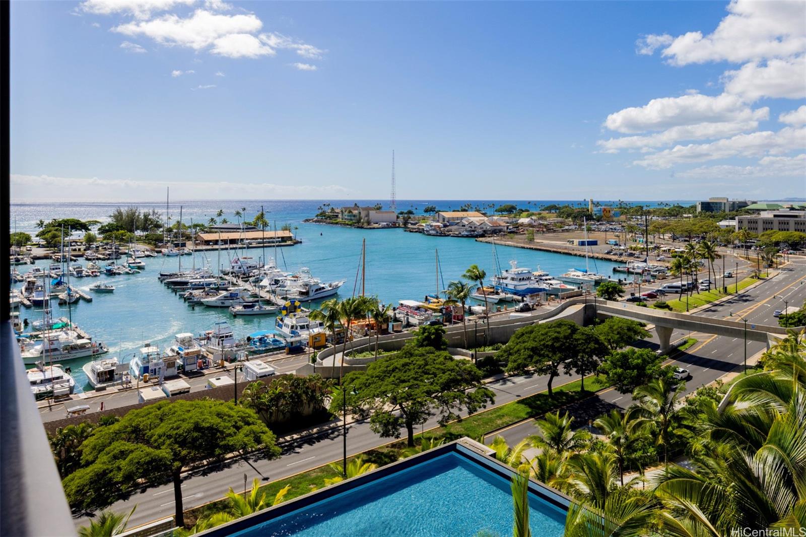Victoria Place stands as an icon of ultra-luxe condominium living in Honolulu, coveted for its elevated resort amenities, boutique service, and proximity to beaches, parks, shops, and restaurants. This 2-bedroom, 2-bath residence delivers refined luxury living throughout its 1,107 sq.ft. modern-design floor plan, with Pacific Ocean and Boat Harbor views from the living room and both bedrooms. A chef's kitchen with top-of-the-line Sub-Zero and Wolf appliances and elegant marble-wrapped bar seating connects with the primary living room, offering a modern luxury lifestyle experience. The primary bedroom suite includes a walk-in closet, and a resort ensuite bath with walk-in shower room and deep soaking tub. Enjoy world-class amenities including 3 pools, a state-of-the-art fitness center, spas, outdoor cabanas, BBQ areas, a wine cave, a chef's kitchen, a private dining room, a theater room, a media room, and guest suites. Elevated luxury, in the heart of Honolulu: Welcome home to Victoria Place #903.