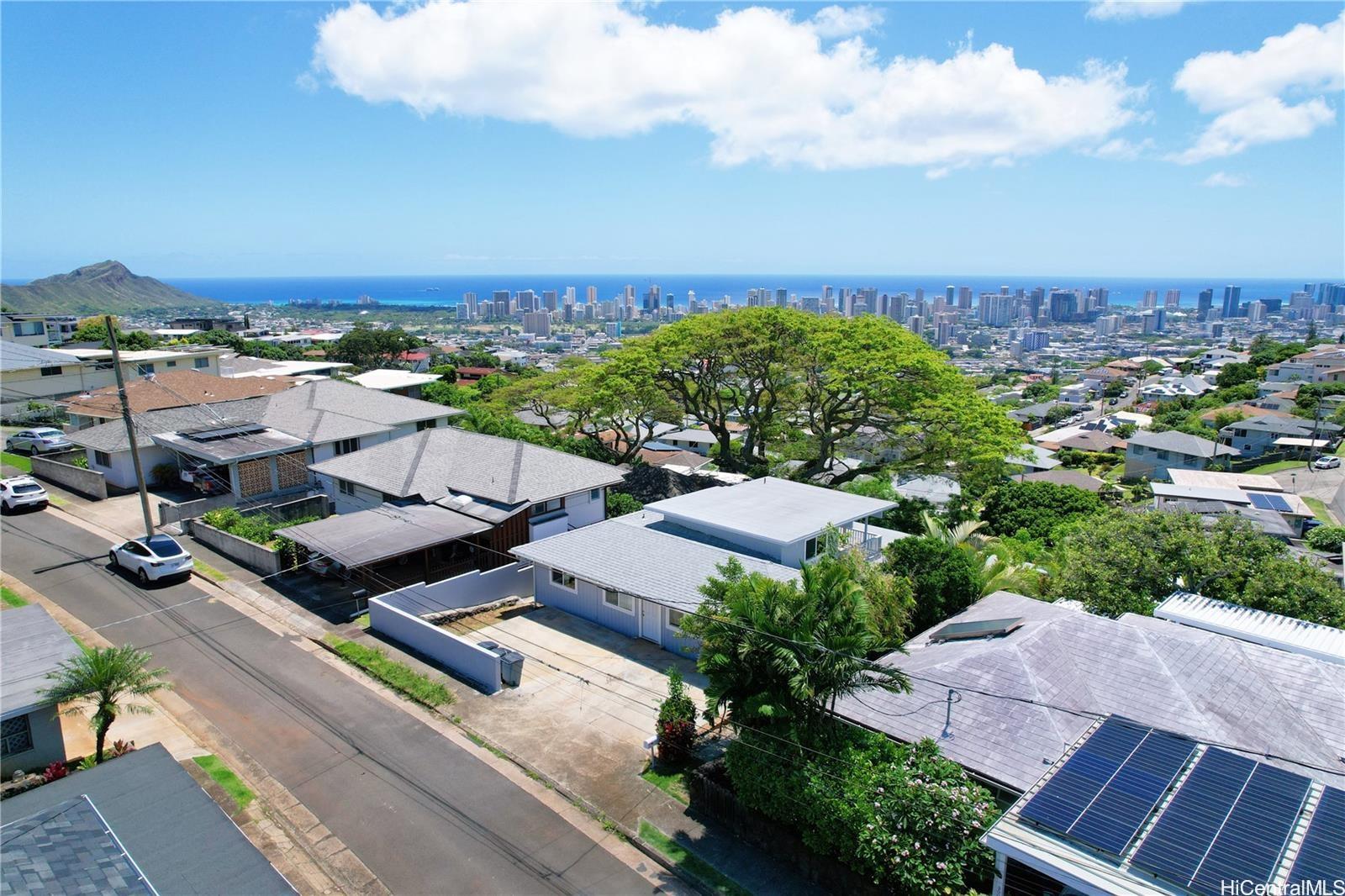 Experience island living at its finest in this newly remodeled 5 bedroom, 4 bathroom single family home located in the highly sought after St. Louis Heights neighborhood Perched on the hillside, this beautifully updated residence offers breathtaking panoramic views of the ocean and city skyline - a truly unbeatable backdrop from your own spacious lanai, perfect for relaxing or entertaining. Step inside to find a thoughtfully designed interior featuring brand new vinyl laminate flooring throughout, along with a fully renovated kitchen and bathrooms, modern fixtures, and new stainless steel appliances. Every detail has been carefully selected to combine comfort with contemporary island style. With three separate entrances, this flexible layout is ideal for multi-generational living, extended family, or potential rental income opportunities. Whether you're looking for space, style, or versatility, this home has it all. Don't miss this rare opportunity to own a move-in-ready gem in a prime location that's in close proximity to schools, shopping, dining, and much more! Don't wait, schedule your private showing today!