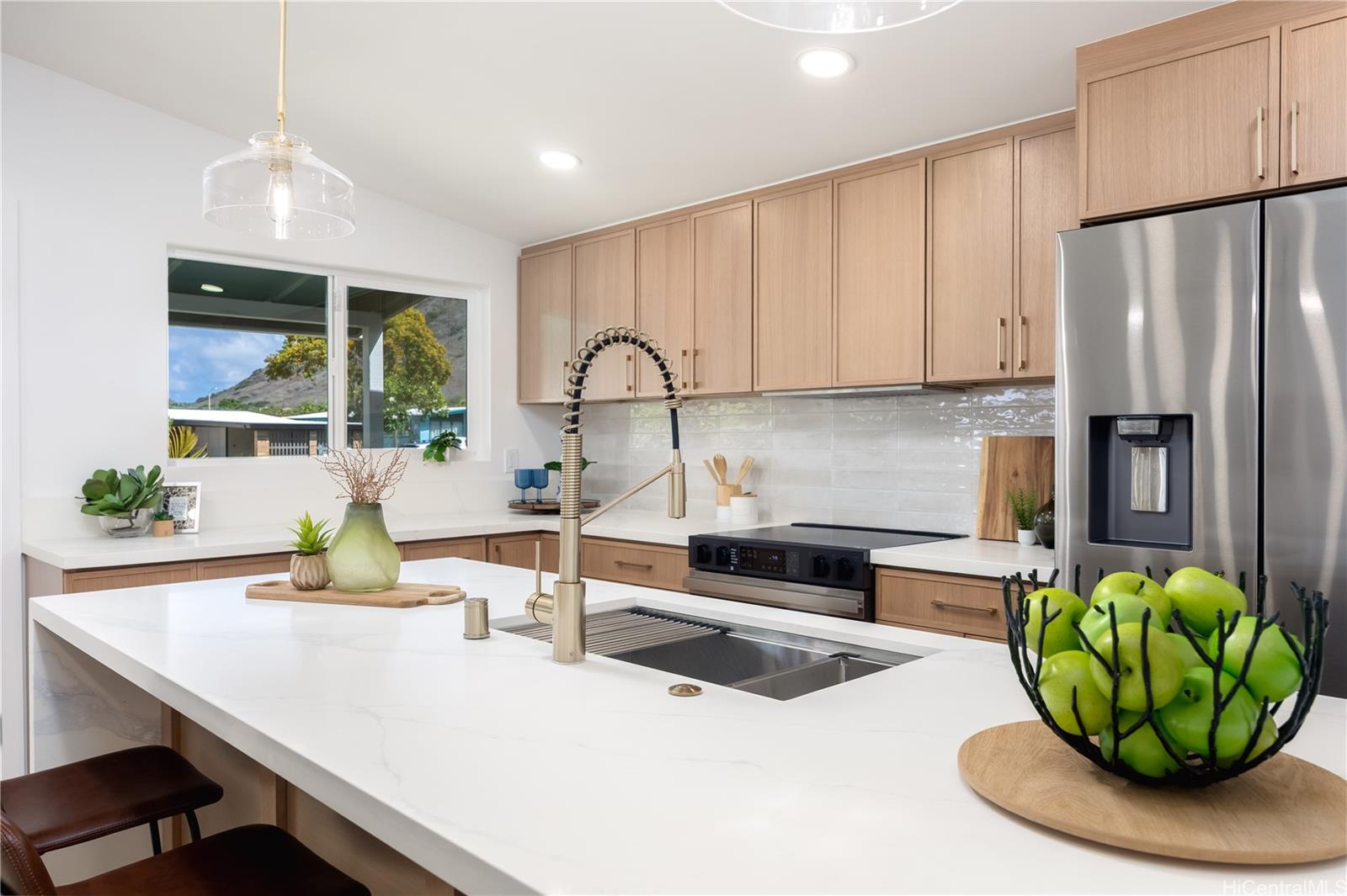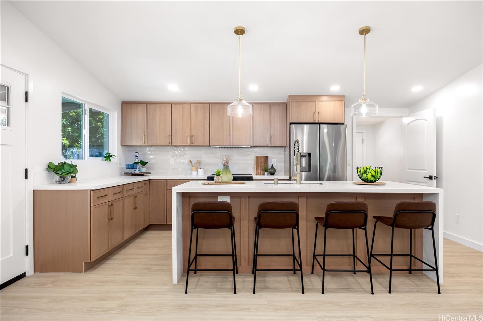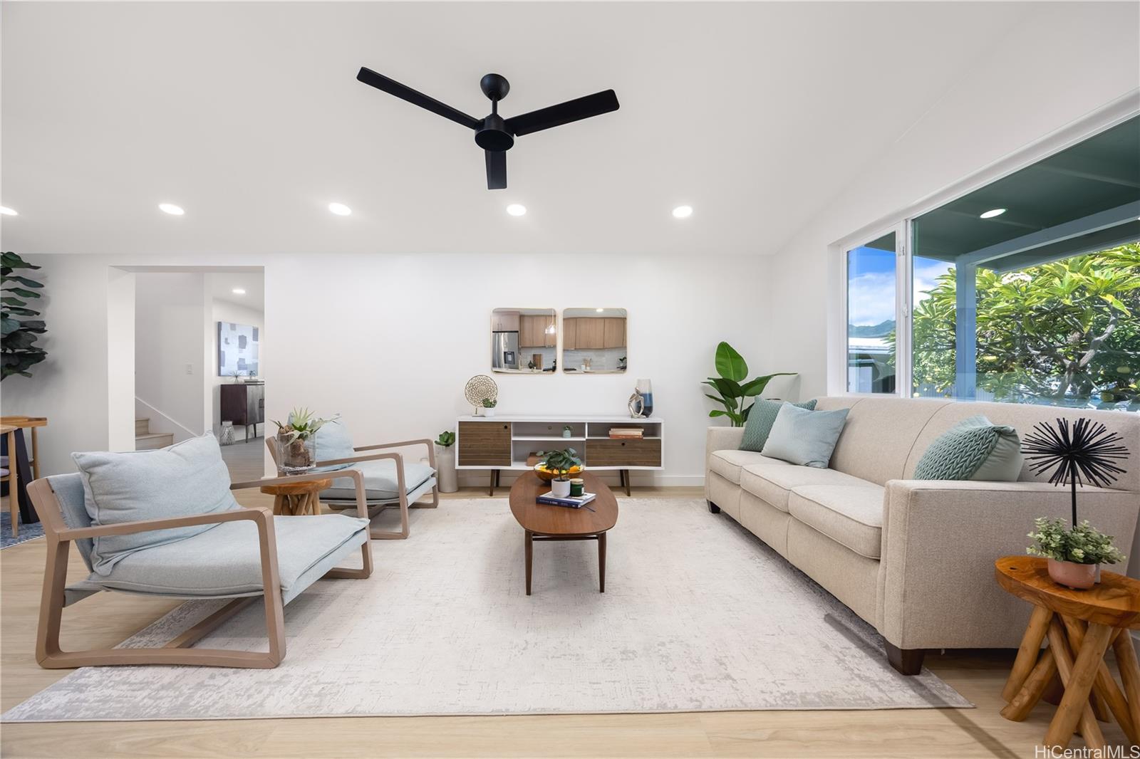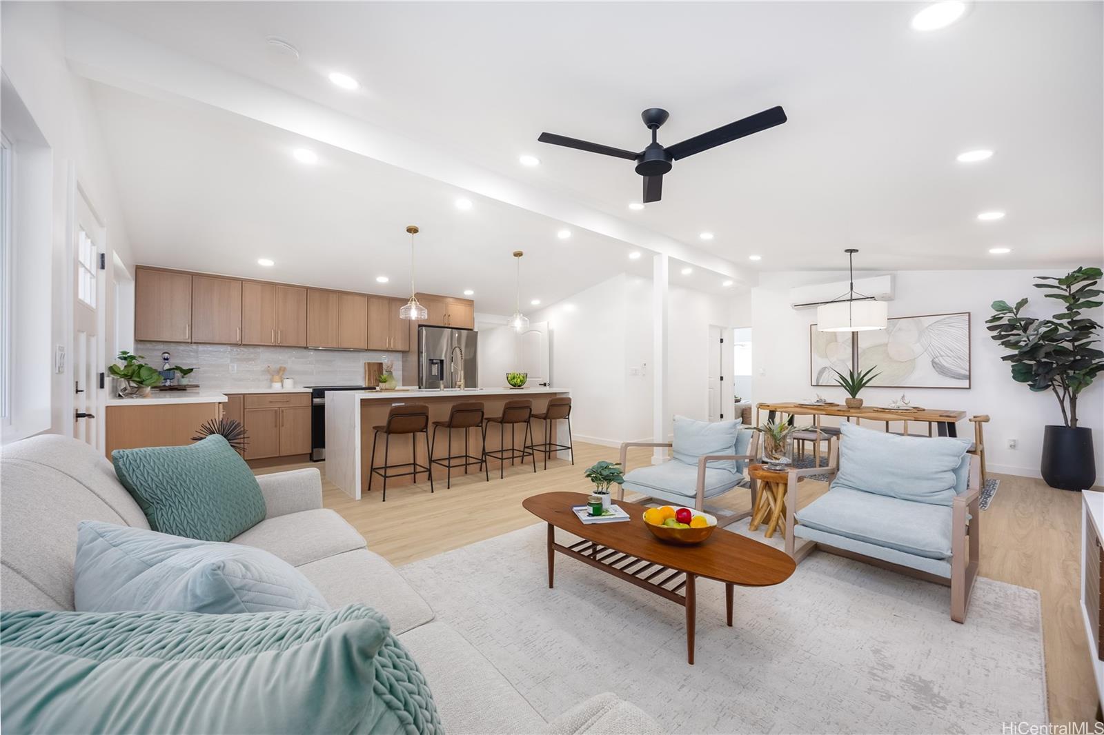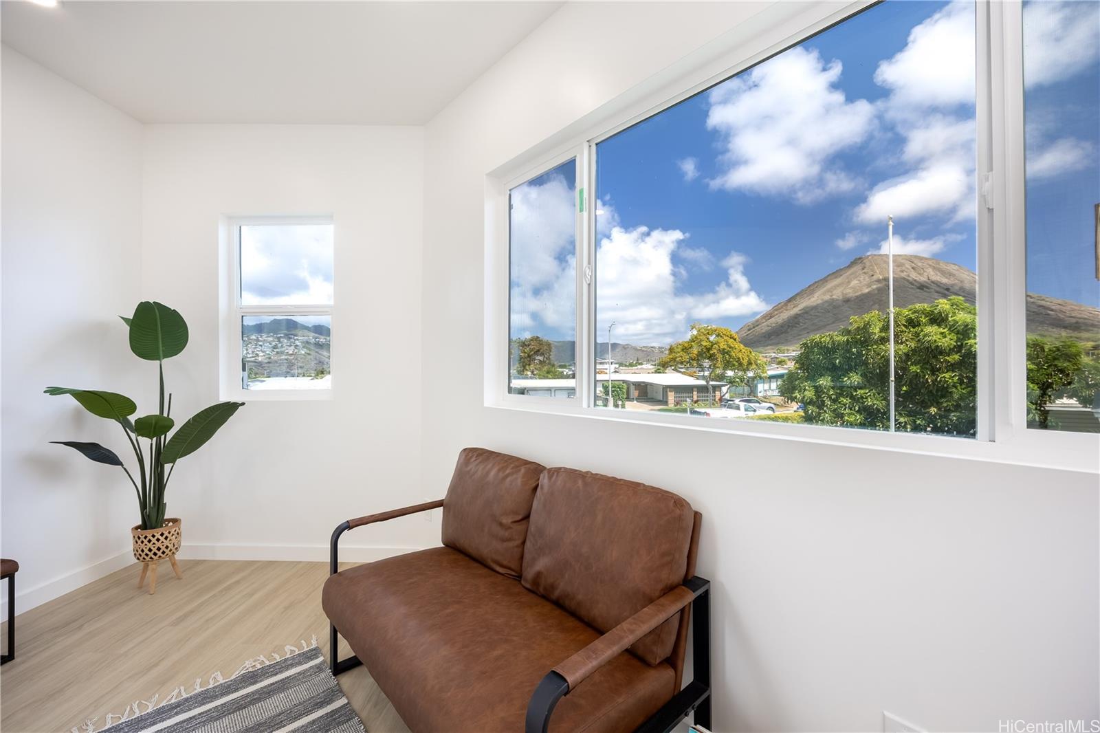 Feels Like two large homes in one! This refined Koko Head Terrace home is the ultimate blend of luxury and flexibility. Perfect for multi-generational living, rental income, or an elegant Ohana retreat, the property showcases captivating Koko Head views and a thoughtful layout designed for comfort and versatility. The main home features 4 bedrooms and 2 baths with an airy open-concept living space, elegant luxury vinyl plank flooring, quartz countertops, and modern finishes throughout. The incredible upstairs primary suite offers stunning views, a spacious walk-in closet, and a peaceful retreat. A completely separate and expansive 1-bedroom, 1-bath dwelling with its own entrance features a generous living room, separate washer dryer hookup, and is ideal for a rental, guests, or your Ohana. Total Enjoy two serene lanais, a lush landscaped yard, and a mature mango tree creating a tranquil outdoor oasis. With a new roof and stylish upgrades blending contemporary elegance with island charm, this property defines premier East Oahu living—minutes from pristine beaches, scenic hikes, and vibrant dining.