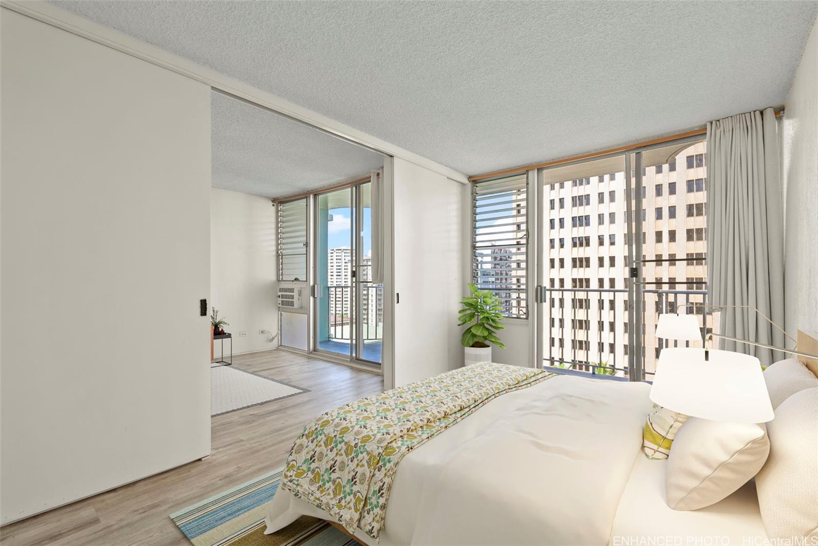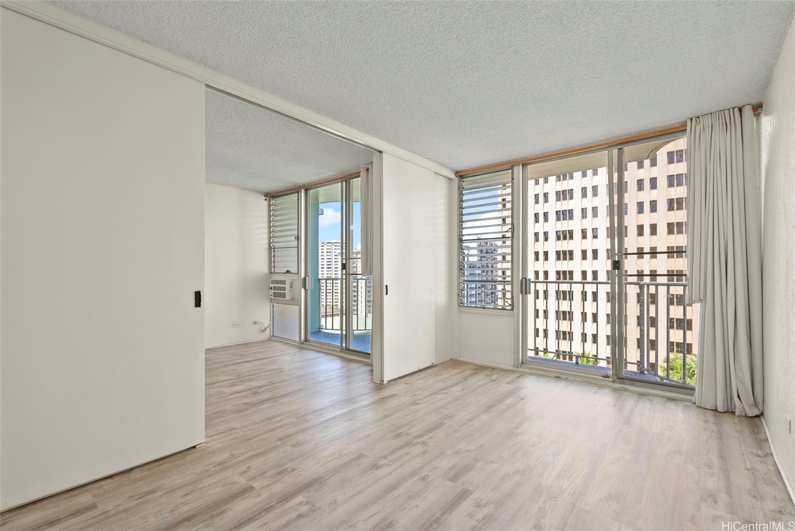 RARE find in town – TWO parking stalls and TWO separate entrances, each with its own mailbox! This flexible 2-bedroom, 2-bath layout can function as a full 2/2 or be separated into a 1-bedroom/1-bath and a studio. Live on one side and rent out the other for added income! The 1-bedroom side was partially renovated in 2023 with new vinyl plank flooring and paint. The studio side currently has month-to-month lease and occupied by a reliable long-time tenant who would love to stay, making this a great opportunity for investors seeking steady income. All utilities included and VA approved! Excellent investment opportunity or ideal for multi-generational living. Pet-friendly building (Buyer to do their own due diligence and verify House Rules). Conveniently located near Ala Moana Shopping Center, Ala Moana Beach Park, Waikiki, and the Convention Center. 2 photos are enhanced.