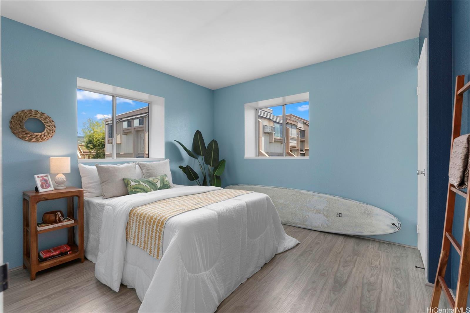Welcome to this beautifully maintained 2-bedroom, 2-bath corner townhouse in Aiea, offering 1,035 sqft of interior space and a 99 sqft open lanai. This two-level home features a beautifully renovated kitchen on the main floor and both bedrooms and bathrooms upstairs for added privacy. As a desirable corner unit, enjoy extra natural light and refreshing cross breezes thanks to the additional living room window. Located in the heart of Aiea, you're just minutes from Pearlridge Center, grocery stores, dining, parks, schools, and quick freeway access. Ideal for military families with close proximity to Joint Base Pearl Harbor-Hickam, Tripler, and Camp Smith. A rare opportunity to own a move-in-ready townhome. Seller offering VA assumption to eligible buyers. Maintenance Fee is $796.14, reserve contribution $206.16, and cable TV $54.41. VA Assumable estimated mortgage remaining balance $460,840 (small gap), interest rate 3.25%, principal and interest $2,159.30, servicer Freedom Mortgage. Seller's will consider non VA buyers!