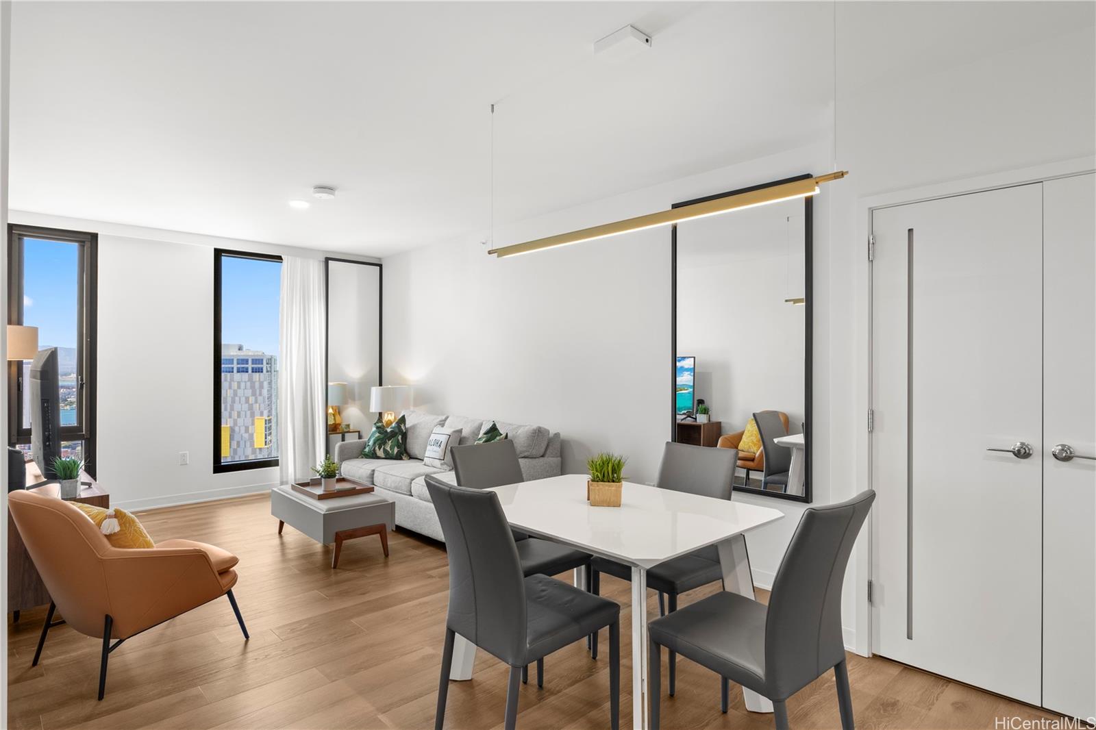 ようこそ、ご自宅へ!建物のサンセットサイドに位置する高層階のユニットです。624平方フィートのリビングエリアとラナイからの素晴らしい景色は、このユニットが最大級の1ベッドルームユニットの一つとなっています。リゾートスタイルのアメニティで快適な暮らしを実現。ユニットはルーフデッキのすぐ下に位置し、スカイラウンジやフィットネスクラブからは息を呑むような景色をお楽しみいただけます。プールサイドにはカバナがあり、バーベキューエリア、キッズプール、屋内外のイベントスペースで楽しいひとときをお過ごしいただけます。ワードビレッジの中心部に位置し、レストラン、食料品店、アラモアナセンターにも近く、便利なロケーションです。ほとんどのエリアへは徒歩圏内です。ユニットには駐車スペース5-051と頭上ロッカーPS5-051が付属しています。