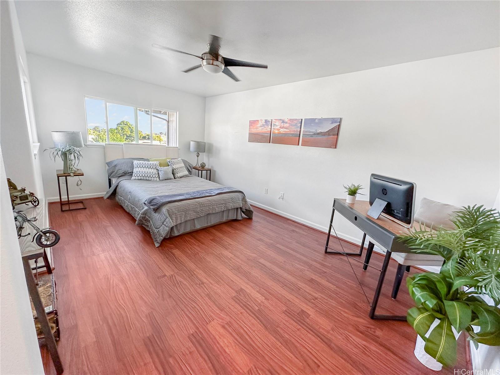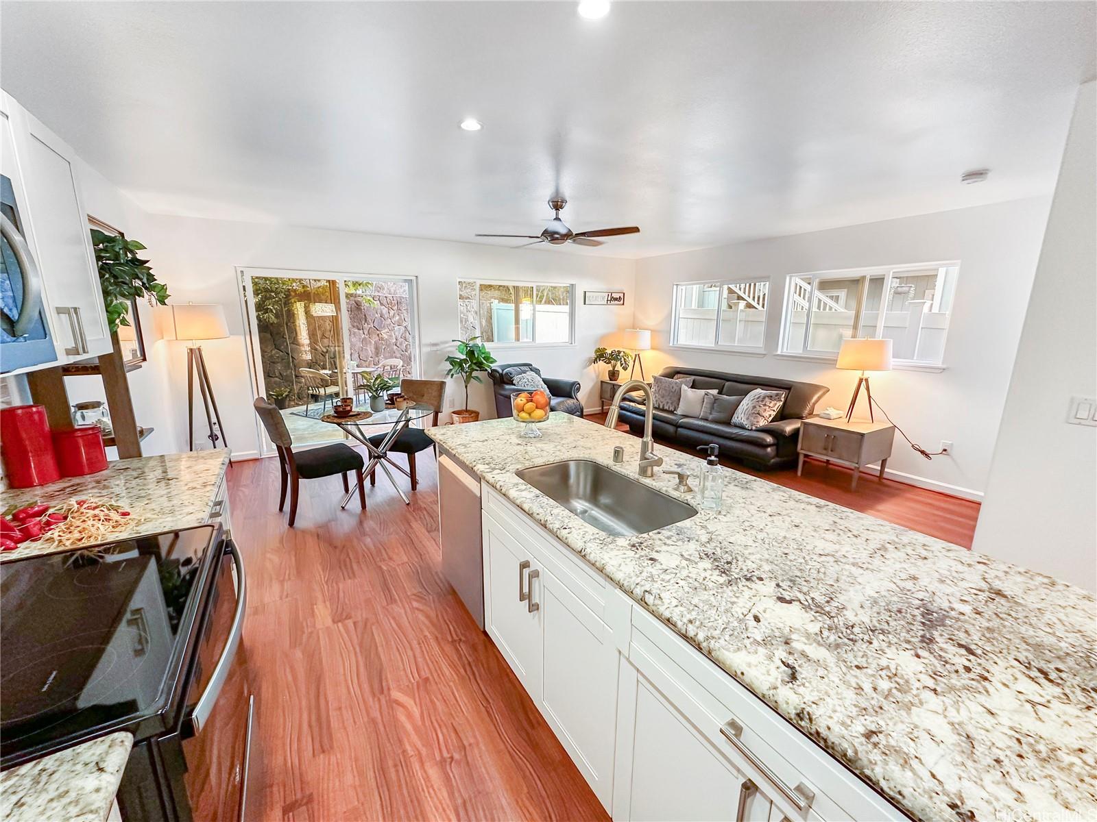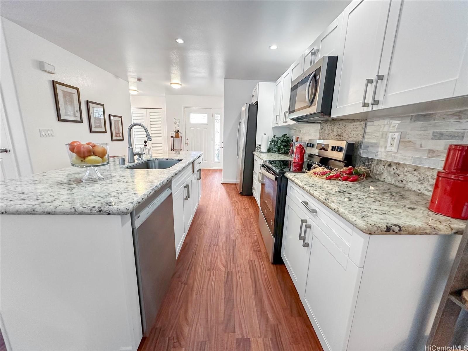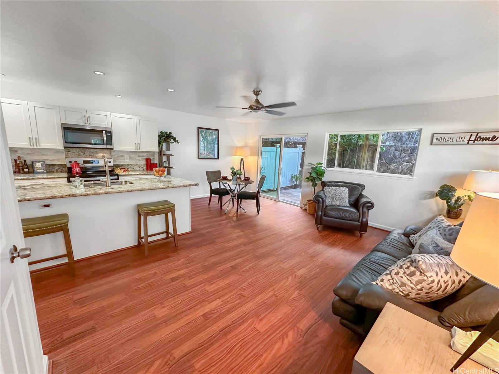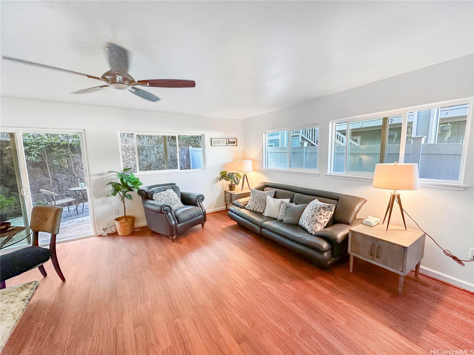 You won't want to miss viewing this newly listed home at a great price. This stunning, like-new 3-bedroom, 2.5-bath duplex in the desirable Robinson Heights of Waipahu. Built in 2016, this two-story home features an open floor plan with an abundance of windows to bring in natural light. Enjoy modern living with ceramic tile, new luxury vinyl planks on the entire lower level, upper hall, and primary bedroom, as well as Koa laminate flooring on the stairs in two of the bedrooms. Each room is equipped with a ceiling fan. The kitchen boasts a new stainless steel appliance package and stone counters. The kitchen breakfast bar is a nice addition to the dining options. Tucked away on a quiet cul-de-sac, this home offers mountain views, a one-car garage, and NO maintenance fees, only a single low association fee. Ideal for 1st time buyers or those seeking a move-in property with investment potential. Conveniently located near schools, parks, and shopping. A private backyard thoughtfully fenced, with just enough room to start a garden. Seller is participating in a 1031 exchange at no cost to the buyer. Easy to show on short notice, most days. First Open House Nov 9, 2-5 pm.