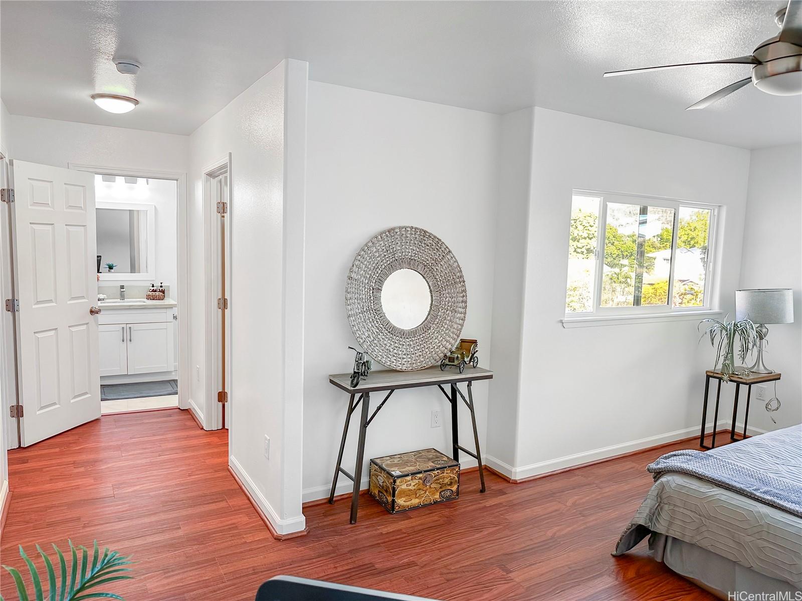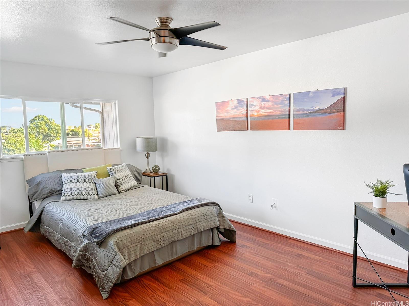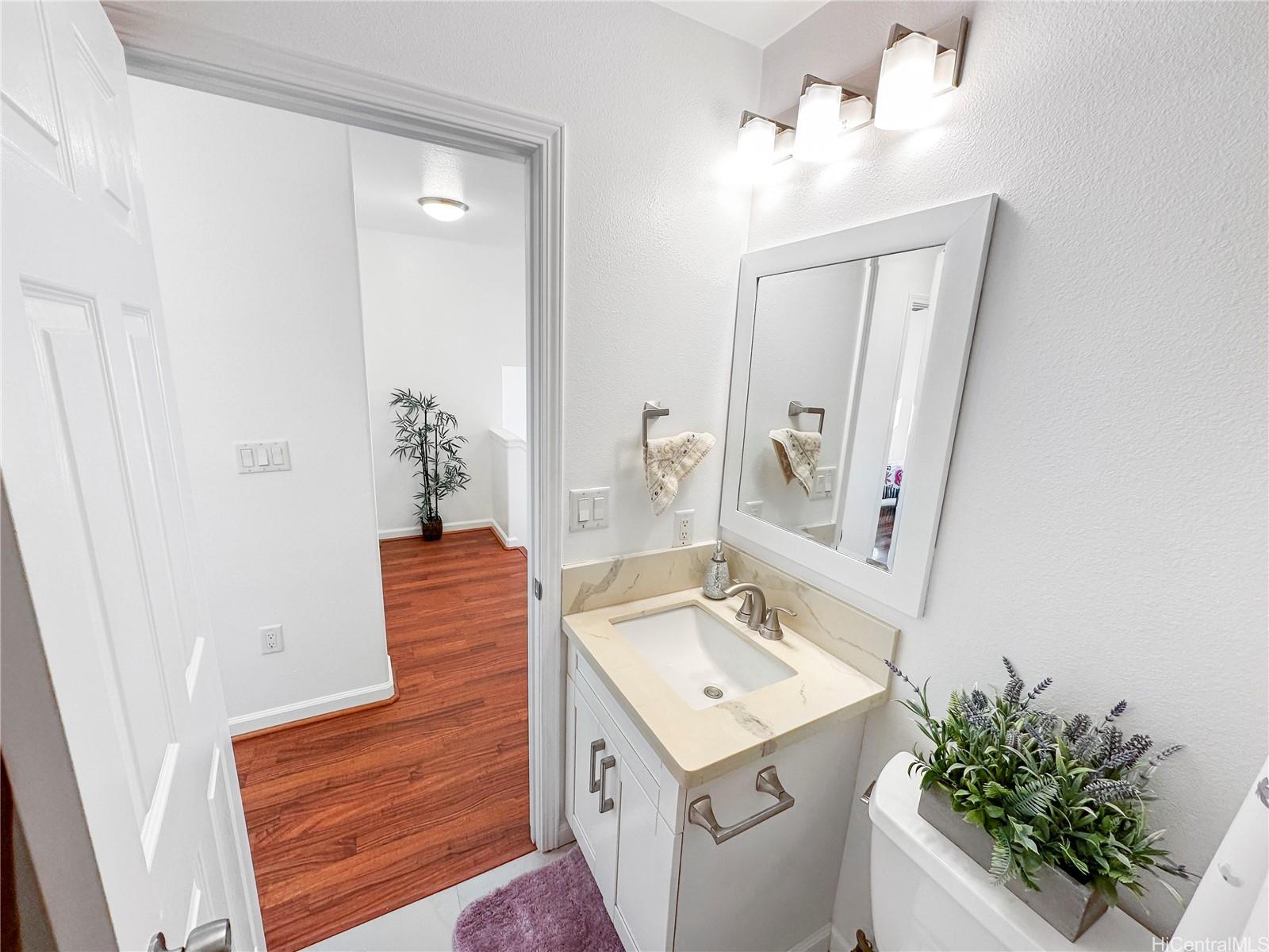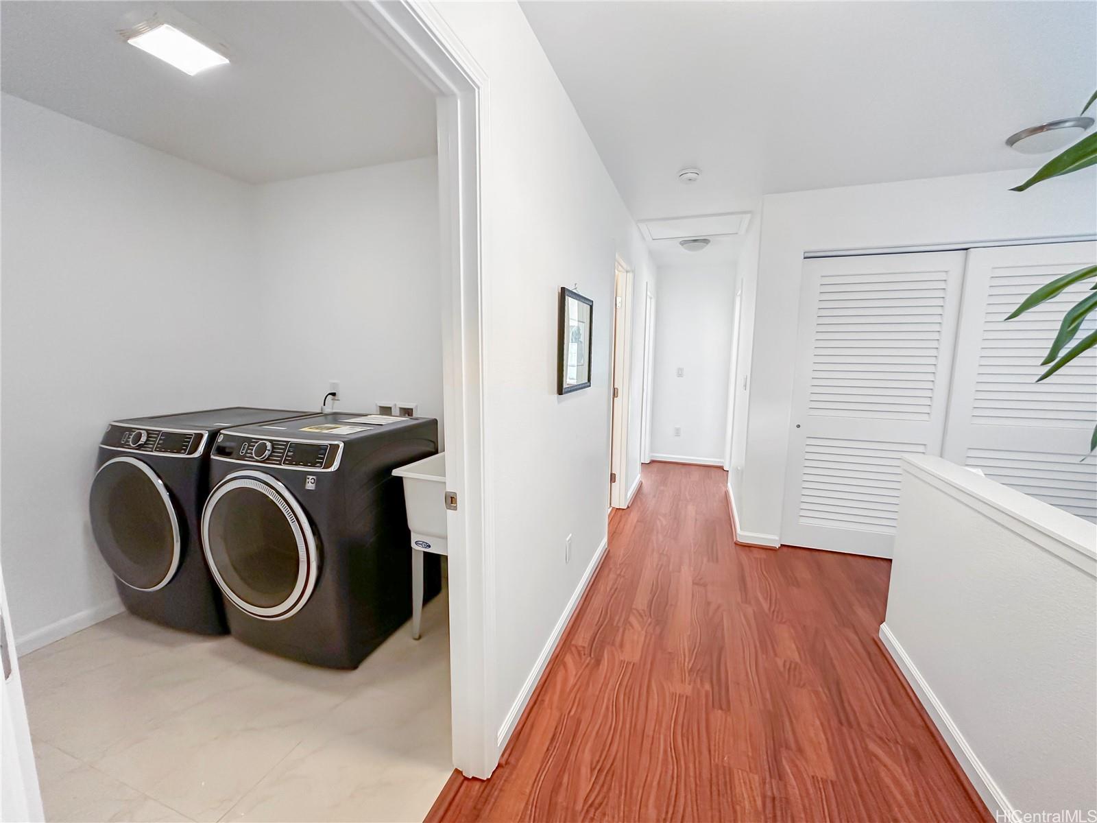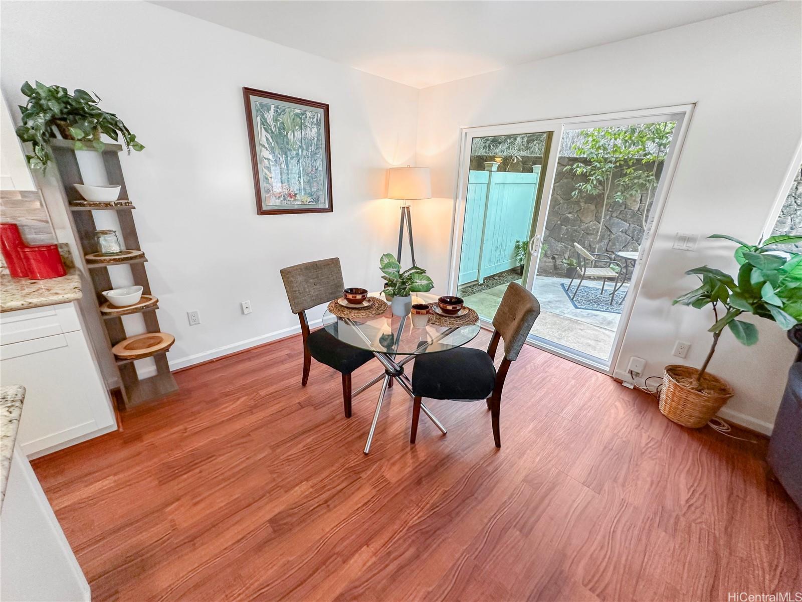 You won't want to miss viewing this newly listed home at a great price. This stunning, like-new 3-bedroom, 2.5-bath duplex in the desirable Robinson Heights of Waipahu. Built in 2016, this two-story home features an open floor plan with an abundance of windows to bring in natural light. Enjoy modern living with ceramic tile, new luxury vinyl planks on the entire lower level, upper hall, and primary bedroom, as well as Koa laminate flooring on the stairs in two of the bedrooms. Each room is equipped with a ceiling fan. The kitchen boasts a new stainless steel appliance package and stone counters. The kitchen breakfast bar is a nice addition to the dining options. Tucked away on a quiet cul-de-sac, this home offers mountain views, a one-car garage, and NO maintenance fees, only a single low association fee. Ideal for 1st time buyers or those seeking a move-in property with investment potential. Conveniently located near schools, parks, and shopping. A private backyard thoughtfully fenced, with just enough room to start a garden. Seller is participating in a 1031 exchange at no cost to the buyer. Easy to show on short notice, most days. First Open House Nov 9, 2-5 pm.