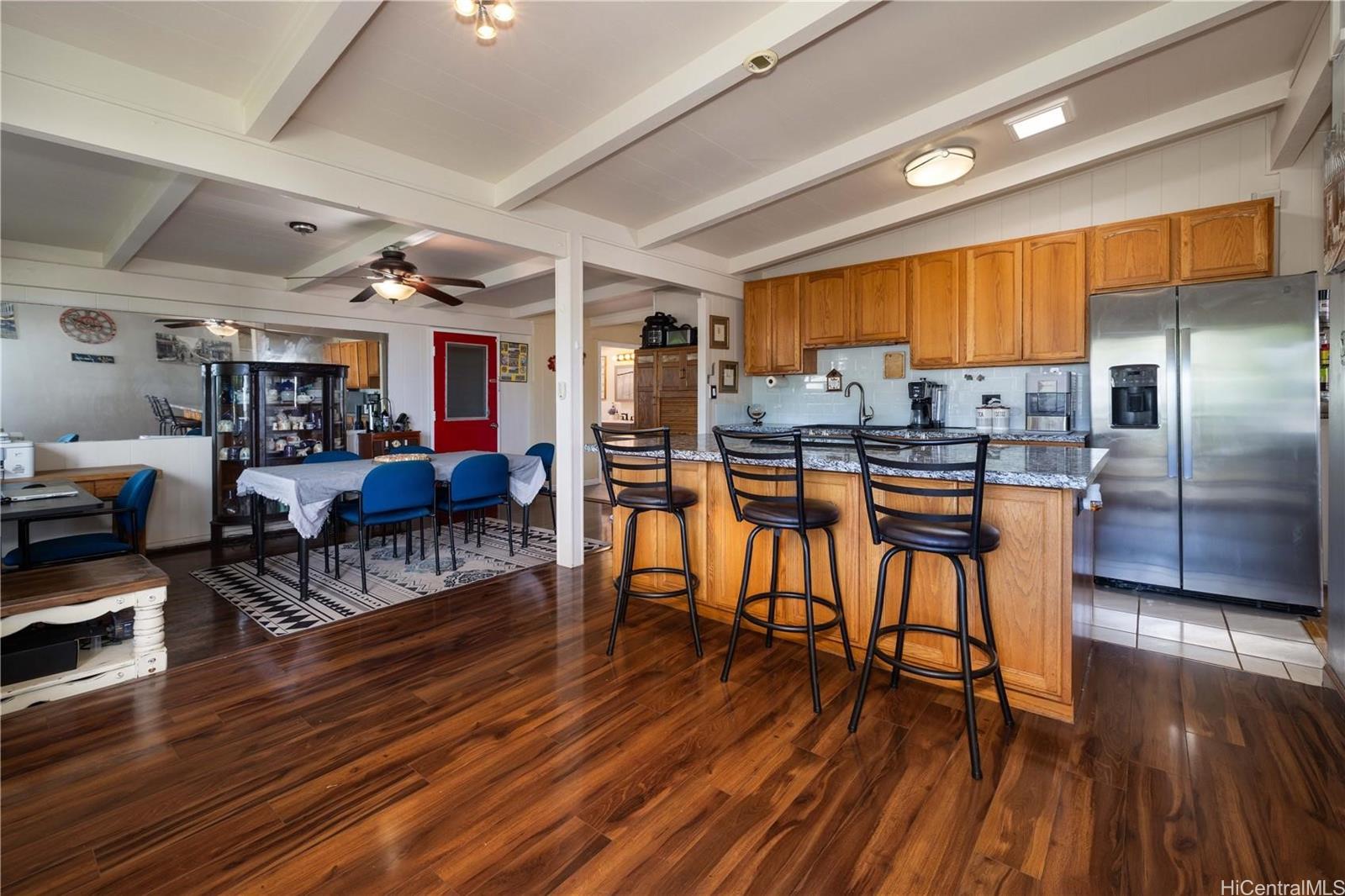 SELLER TO OFFER $20,000 IN CREDITS TO BUYERS! Enjoy this single level home, single family home, with Diamond Head views and NO HOA's in lower Makakilo! Enjoy the beautiful Hawaii weather and entertaining with your own backyard oasis and swimming pool to stay cool. 32 leased solar panels on a Net Energy Metering (NEM) agreement, with a solar water heater for energy efficiency. Large granite kitchen island and hardwood/tiled flooring throughout. Easy to see on short notice! Opportunity for a VA assumption at interest rate of 2.75% (to VA eligible Buyers only).