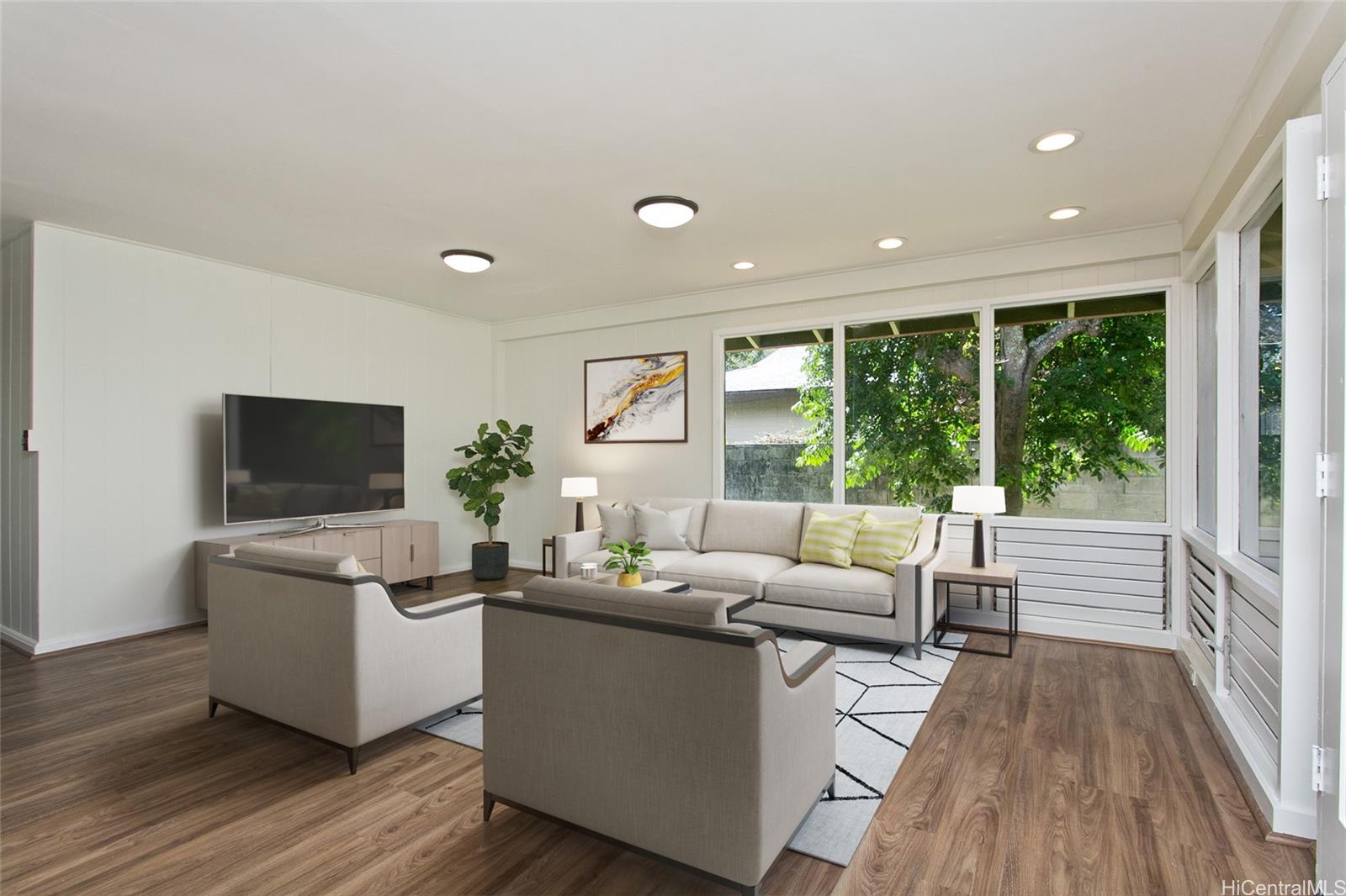 You are not going to want to miss this one! Moanalua Valley is a highly desirable neighborhood and this is going to be a highly desirable house. 3-bedroom, 1.5-bath home on a 6,450sf lot. The home is single level, and the lot is very flat, making expansion possibilities plentiful. There are fruit trees including apple banana, mango, and starfruit, and no neighbor beind you for privacy. The house has an enclosed patio area that has been used for pets with built in dog houses. Interior has been painted and kitchen and baths have had some updating. You can move right in to this one and/or do some upgrades. Open Sunday (11/9/2025) 2 - 5p.m.