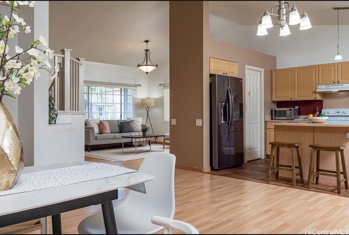 91-313 Hoalauna Place へようこそ。快適さ、効率性、そしてモダンなアイランドライフが融合した、魅力的なターンキー方式の4ベッドルーム、3バスルームの住宅です。一歩足を踏み入れると、自然光がたっぷりと差し込み、開放的で風通しの良い間取りが、スタイルと機能性を完璧に両立させています。27枚の太陽光パネルを設置、太陽熱温水器も備え、エネルギー効率に優れ、持続可能な生活を楽しみながら電気代を抑えることができます。希少な2.875%のVA(退役軍人税負担軽減ローン)(約4,383ドル、PITI)をご利用ください。これは今日の市場では大変お得な機会です。さらに、月額50ドルという非常に低価格なHOA会費と管理費は不要です。屋外では、成熟した実のなるアボカド、オレンジ、バナナの木々が茂るプライベートな裏庭のオアシスをお楽しみください。くつろいだり、おもてなししたりするのに最適です。自動スプリンクラーシステムが庭全体を緑豊かに保ち、手入れも簡単です。また、セントラルエアコンが室内を一年中快適に保ってくれます。人気のあるエヴァ・ジェン・プレスコット地区の便利な場所にあるこの住宅は、省エネ、快適さ、価値を兼ね備えており、本当に珍しい物件です。