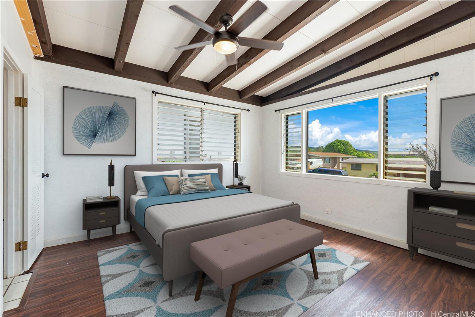 Highly sought-after and well-maintained single-level home in Pacific Palisades! Relax and enjoy beautiful ocean views from the comfort of your own home. This bright and spacious 3-bedroom, 2-bathroom home features an open-beam design and plenty of room to spread out. The primary bedroom includes a large walk-in closet and a full private bathroom. The updated gourmet eat-in kitchen offers plenty of cabinet space and solid countertops. There’s a two-car carport, plus extra parking on the driveway and street. The backyard has a covered patio, perfect for entertaining or enjoying a quiet afternoon. A must-see that truly feels like home! One or more photos have been enhanced.