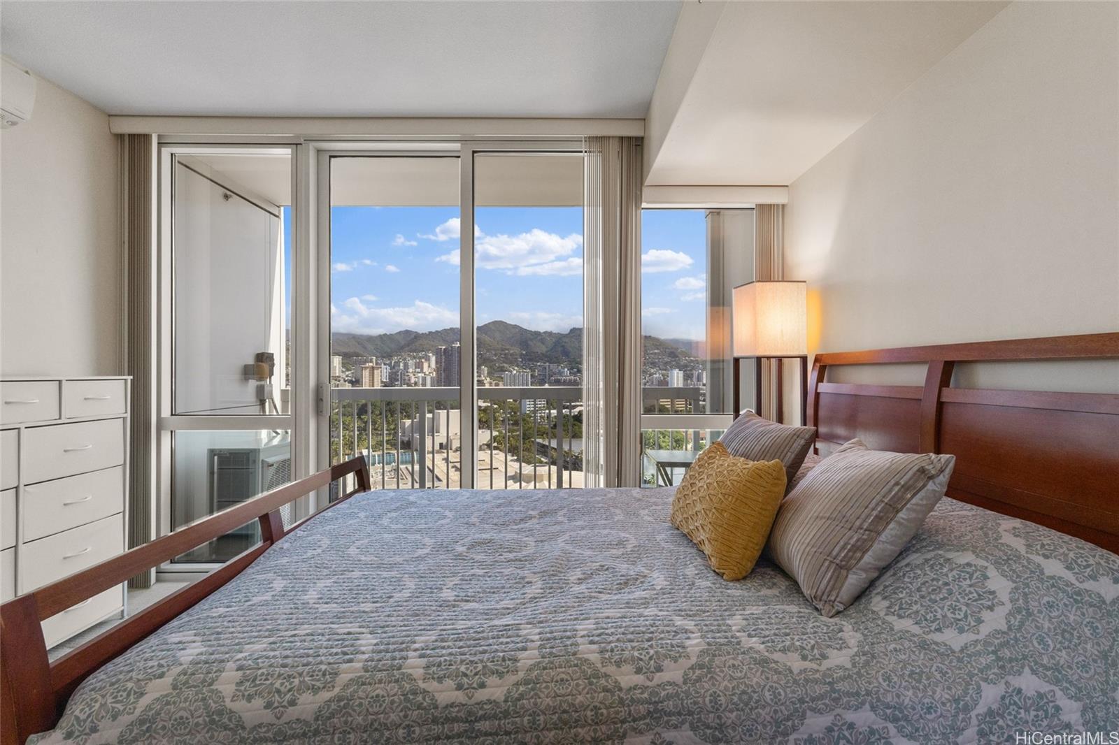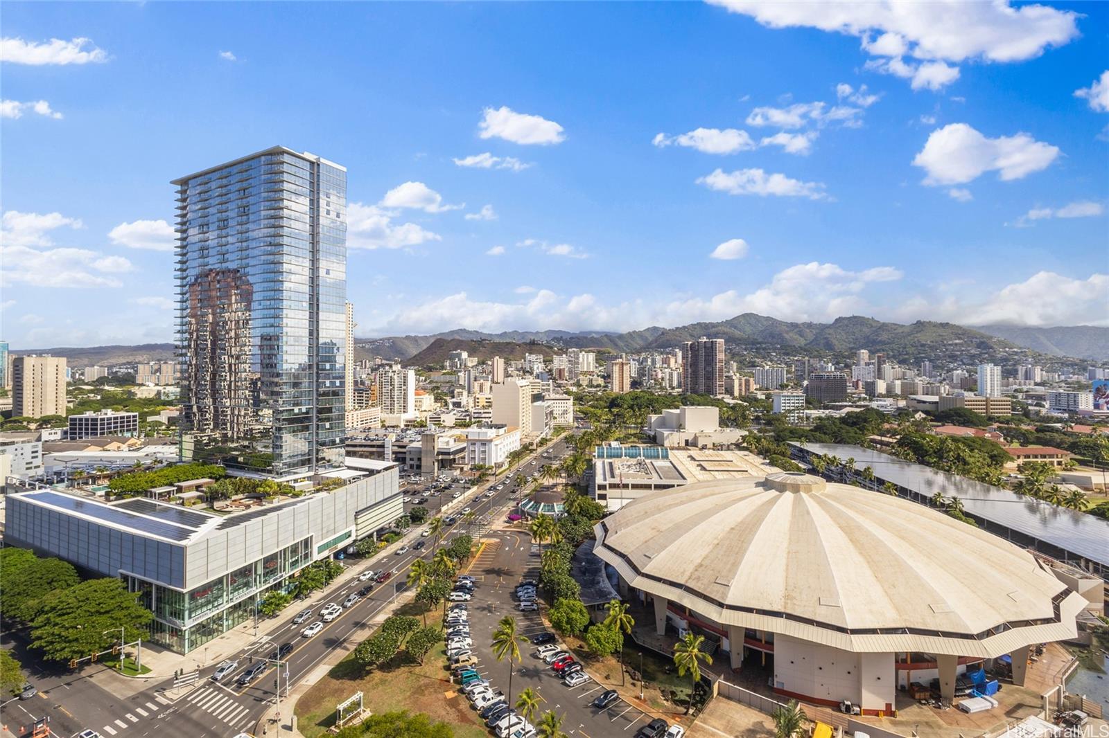 Experience the pinnacle of urban island living in this beautifully maintained 1-bedroom, 1-bath residence on the 22nd floor of the prestigious 909 Kapiolani building. Spanning a comfortable 603 sq ft, this unit offers a bright and modern space with unobstructed mountain views. The unit includes one convenient, reserved parking stall. You're just moments away from the world-class shopping, dining, and entertainment of Ala Moana Center and Ward Village. Beyond the unit, residents enjoy resort-style living with an upgraded amenity deck featuring a host of luxuries. Indulge pool, relax in the hot tub, entertain at the BBQ pavilions. This unit perfectly blends the convenience of a central location with the sophistication and luxury of a high-rise retreat.