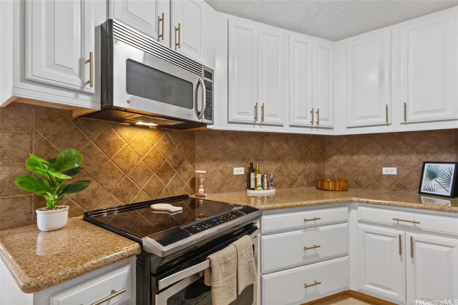 Upgrades include modern kitchen cabinets, granite countertops, stainless-steel appliances, microwave, dishwasher, new disposal, renovated bathrooms, and vinyl plank flooring. This is the best-priced leasehold in the building! Just a short walk to the swimming beach & lagoon at Hilton Hawaiian Village. Convenient new ABC Store on the ground level, plus restaurants galore. Walk or take a short bus ride to Ala Moana Beach Park and Ala Moana Shopping Center. Everything to love about this condo and location! Includes one covered, secured parking stall (Level 3), swimming pool, and large BBQ area.