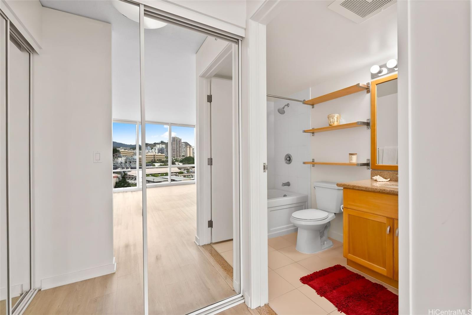 Beautifully maintained & spacious 2-bedroom, 2-bath residence in the Moana Pacific East Tower. Positioned on the preferred cool side of the building , this unit offers floor-to-ceiling windows that fill the home with natural light and showcase city and mountain views. Features include an open floor plan, central AC, vinyl flooring, granite countertops, and a recently upgraded bathroom. Enjoy resort-style amenities such as a fitness center, 24-hr security , putting greens, tennis courts, meeting room, theater, and BBQ areas. Ideally located near Ala Moana Center, Salt Kaka'ako, and Magic Island - this urban retreat offers the perfect balance of comfort, convenience, and contemporary island living. 2 photos have been virtually enhanced.