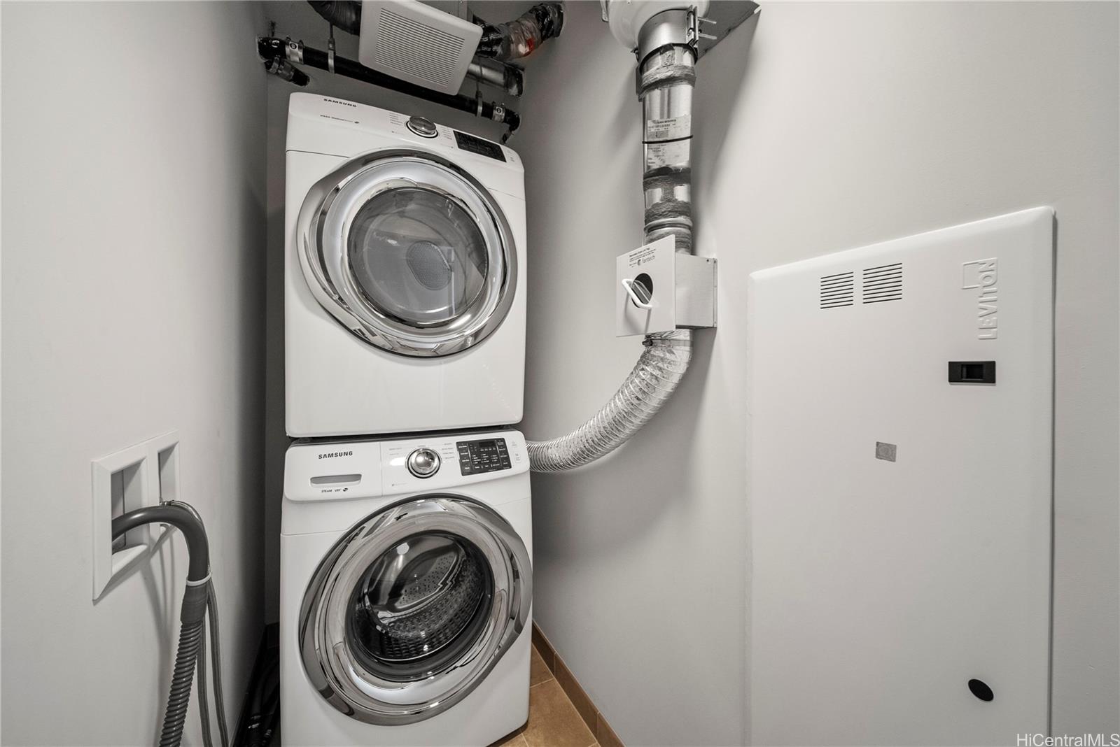 WOW...a preferred 2-bedroom 2-bathroom high-floor residence on the cool Diamond Head side of the building with beautiful coastline, ocean & city views overlooking the iconic IBM building and future Ka Lei mini-park! Unique large operable "bump-out" living room window perfectly angled to take advantage of the views and allow the Tradewinds in. Desirable split bedroom floor-plan w/motorized shades throughout for privacy. Light and bright engineered wood flooring, quality Studio Becker cabinetry, w/quartzite counter/vanity tops, & stainless Bosch appliances. Toto washlets in both bathrooms. 2 Separate Non-Tandem Parking Stalls with a Storage Room nearby...and as an added bonus an owned electric vehicle (EV) charger. Immaculately maintained w/a clean, simple & modern "minimalist" design, decor & vibe, in "Move-In" condition!