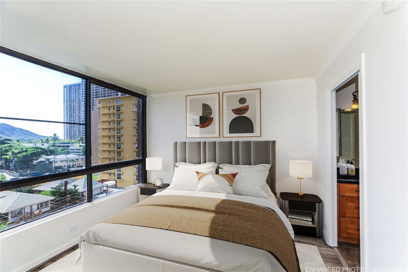 Experience Waikiki Living at Its Best! Enjoy breathtaking views of the Ala Wai Canal, golf course, and majestic mountains from this desirable 2-bedroom, 1.5-bath. Recently updated and freshly painted, this spacious unit features an upgraded kitchen that blends modern style with everyday comfort, and new luxury vinyl plank flooring in bedrooms. Step outside and enjoy the ultimate convenience of living minutes to world-class beaches, premier shopping, and countless dining options. Building amenities include a pool, BBQ area, perfect for relaxed island living. Don’t miss this opportunity to own your piece of paradise in the heart of Waikiki. Sold as is. Photos are Virtually Staged.