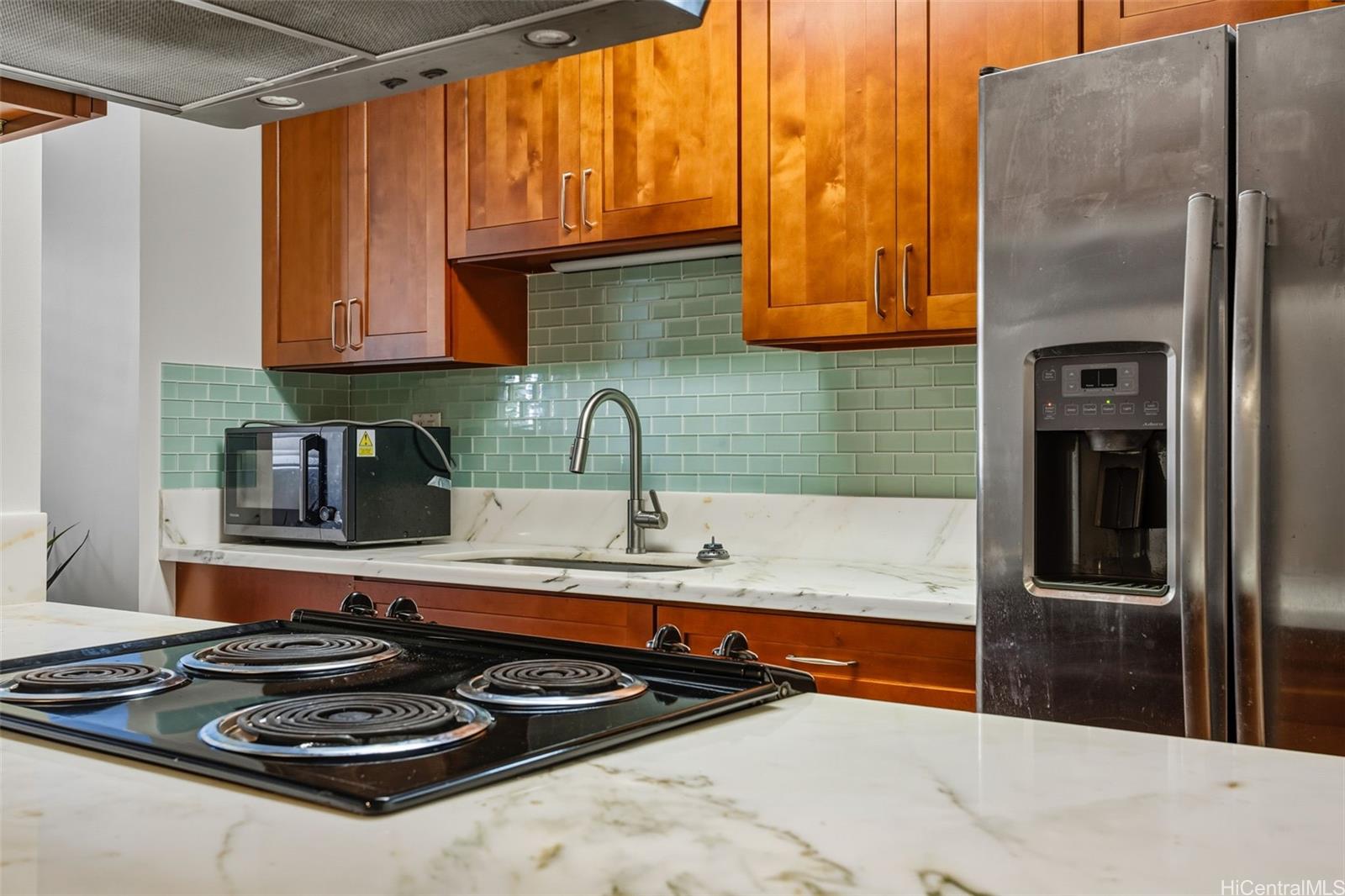 街中に位置する広々とした2ベッドルーム(書斎付き)、2バスルームのコンドミニアム。モダンな内装で改装され、1,067平方フィート(約118平方メートル)のオープンフロアリビングをお楽しみいただけます。収納スペースとしてクローゼットを追加し、洗濯機と乾燥機もユニット内に設置しています。建物の涼しい側、1階という便利な立地です。ゲート付きで、セキュリティ付き駐車場も完備。ペット同伴可。高速道路の入り口にも至近です。