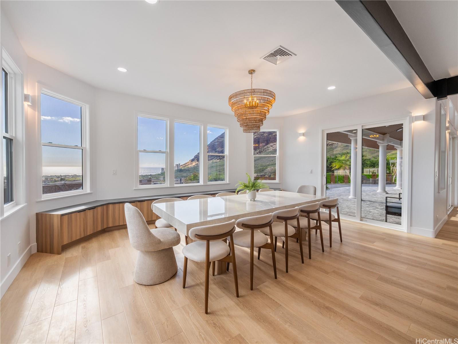 高級ゲートコミュニティ、マウナオル・エステーツに佇む、この格別なアイランドリトリートは、モダンなエレガンスとハワイの自然美が見事に融合した、他に類を見ない空間です。緑豊かな1エーカーの敷地に広がる、平屋建ての4ベッドルーム、4バスルームの邸宅は、屋内と屋外を繋ぐ快適な生活と、豪華なエンターテイメントのために設計されています。約3,500平方フィートの洗練された空間は、高い天井、特大の窓、そして自然光がたっぷりと差し込むスライドドアを備え、息を呑むような山と海の景色を一望できます。シェフズキッチンには、最新のカフェ家電、特注キャビネット、そして12名様用の手作りダイニングテーブルが備えられており、大人数での集まりにもプライベートな集まりにも最適です。メインスイートは、スパ風のバスタブを備えた静かな空間で、らせん階段を上るとウェットバーとワインセラーを備えたロフトがあり、くつろぎのひとときや、お客様をおもてなしするのに最適です。屋外では、特注の滝、緑豊かなランドスケープ、ウォータースライダーとスパを備えたリゾートスタイルのプールをお楽しみいただけます。900平方フィート(約83平方メートル)を超える3台用ガレージは、両開きドアを備え、機能性とラグジュアリーさを融合し、究極のハワイライフスタイルを体現しています。
