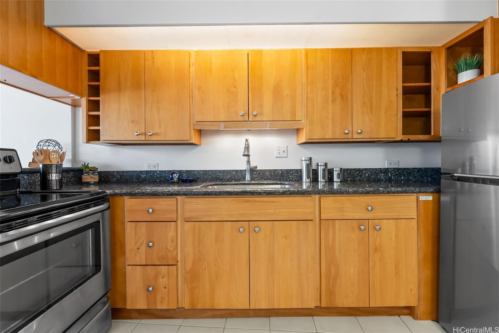 Updated, clean, and move-in ready! This efficient studio, located on the cool mountain side of the building, boasts laminate flooring, modern cabinets and counters, stainless steel appliances, a portable AC and a full-size stacking washer/dryer. Plus, it comes with a convenient parking stall with easy access to the building. Enjoy an array of top-notch amenities, including a swimming pool, tennis and pickleball courts, a basketball court, driving range, BBQ area, security, and a recreation deck. Perfectly situated near Waikiki, Ala Moana, and Manoa, with plenty of shops, restaurants, and entertainment just minutes away. Don't miss this opportunity to own in a well-maintained, updated VA-approved bldg with 100% hurricane insurance coverage; fire sprinklers installed & bathroom sewer drain & vent stack pipes replaced. Additional monthly fee of $112 goes toward ongoing reserves. Monthly Tax Amount is based on 2024 Tax Assessed Values.