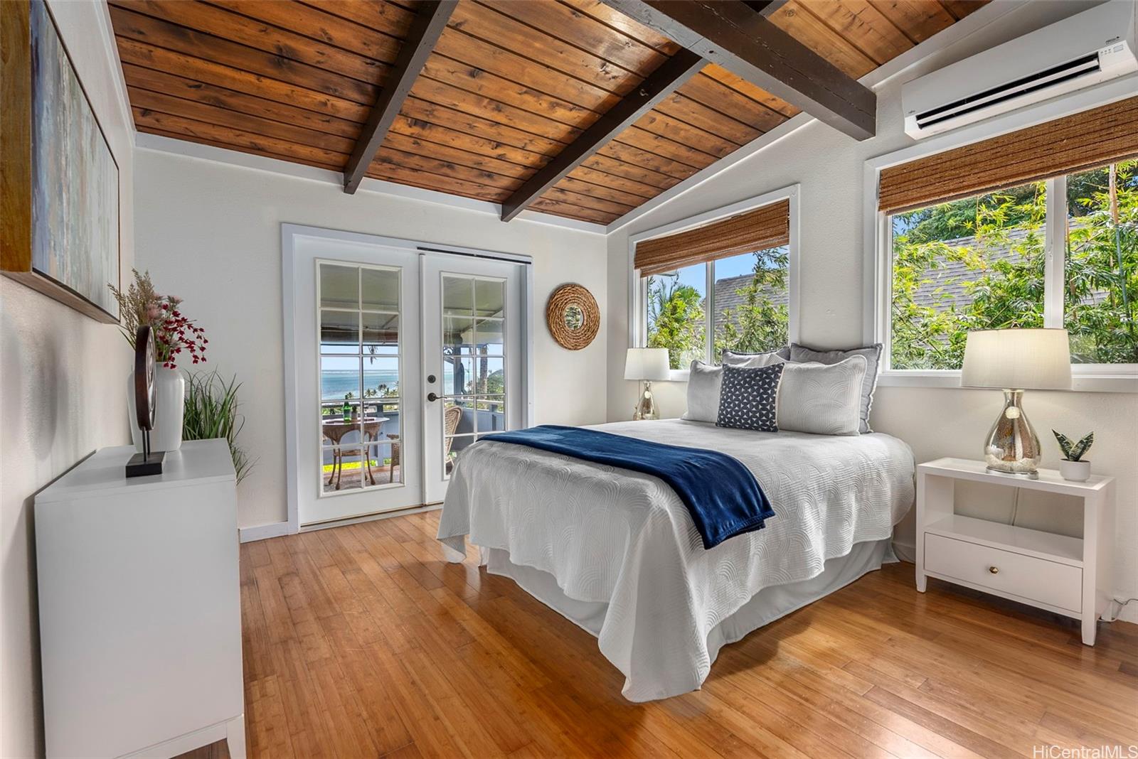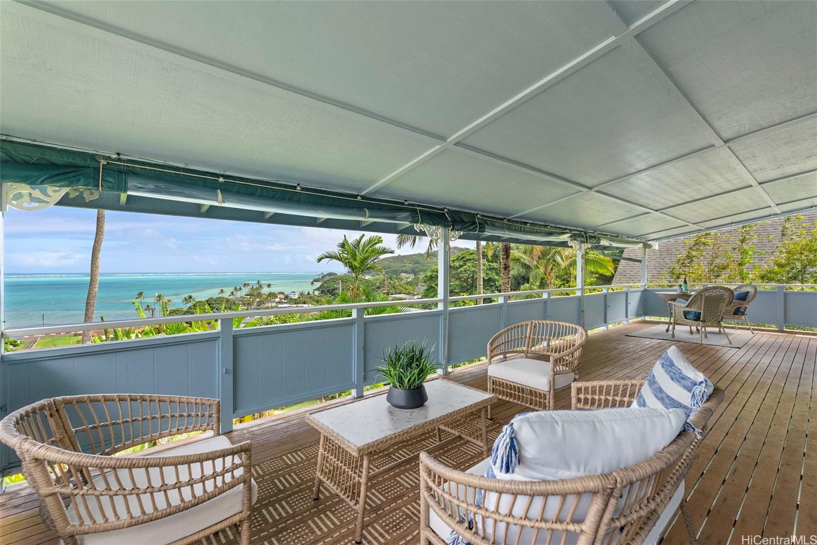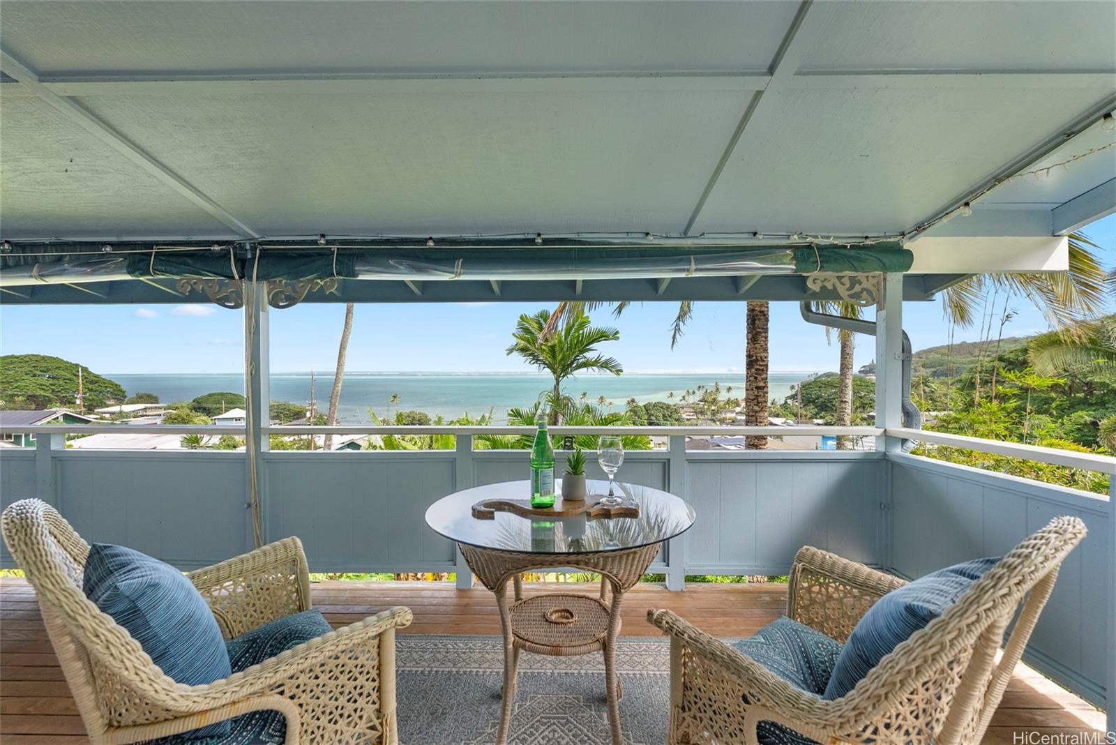 Wake up to an unobstructed Spectacular OCEAN VIEW! This lovely home sits at the top of the beautiful Lulani Ocean community. With an open floor plan and an expansive lanai extending from the living area, this home offers the ideal space to relax and take in stunning views. The open kitchen, with its granite countertops, overlooks the living and dining areas creating a comfortable space to gather, cook and enjoy the trade winds. The primary bedroom is located upstairs and features French doors that open to the lanai - a peaceful spot to enjoy morning views and the sunrise. Two additional bedrooms are downstairs, with a full bath on each level for added comfort and convenience. The home includes a split A/C system in the primary bedroom. Plenty of storage space under the house, roomy enough to keep beach gear, tools, or extra supplies. It could even serve as a handy workspace or hobby area. The large beautifully landscaped backyard provides a private outdoor space to relax, entertain or garden. Minutes from Kaneohe Bay and He'eia Kea Boat Harbor. Close to H3, Marine Corps Base Hawaii, Hickam Air Force Base, Pearl Harbor, restaurants and shopping.