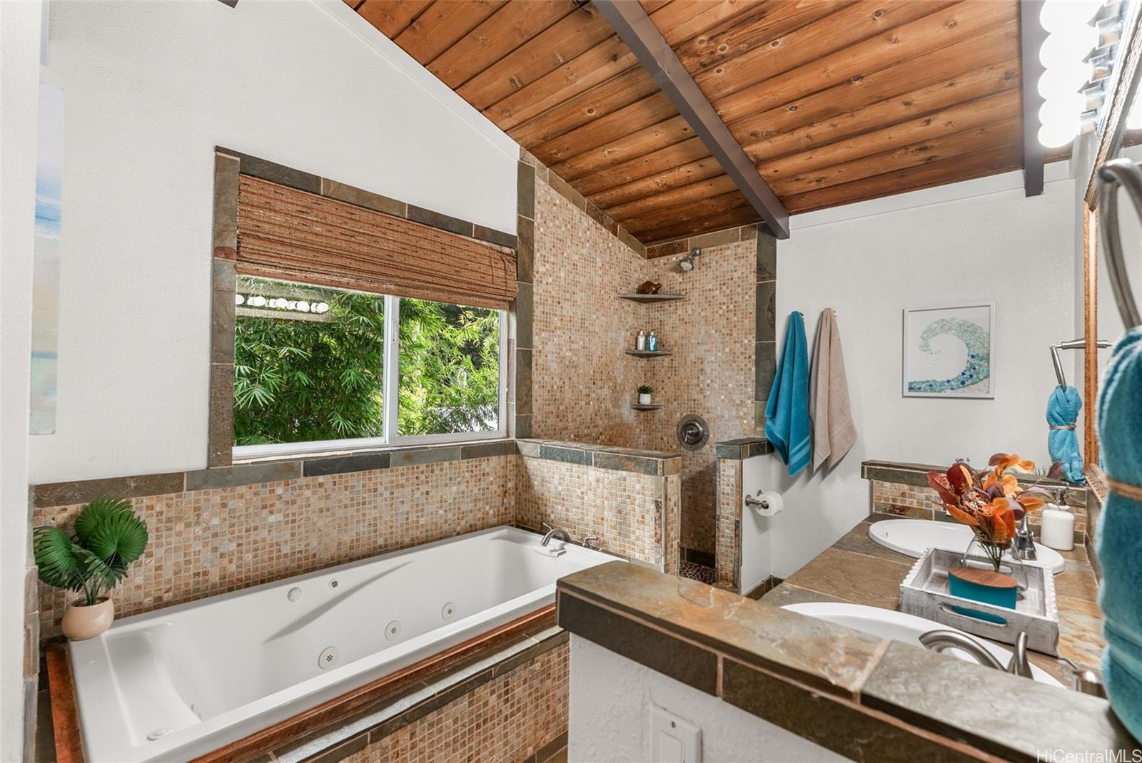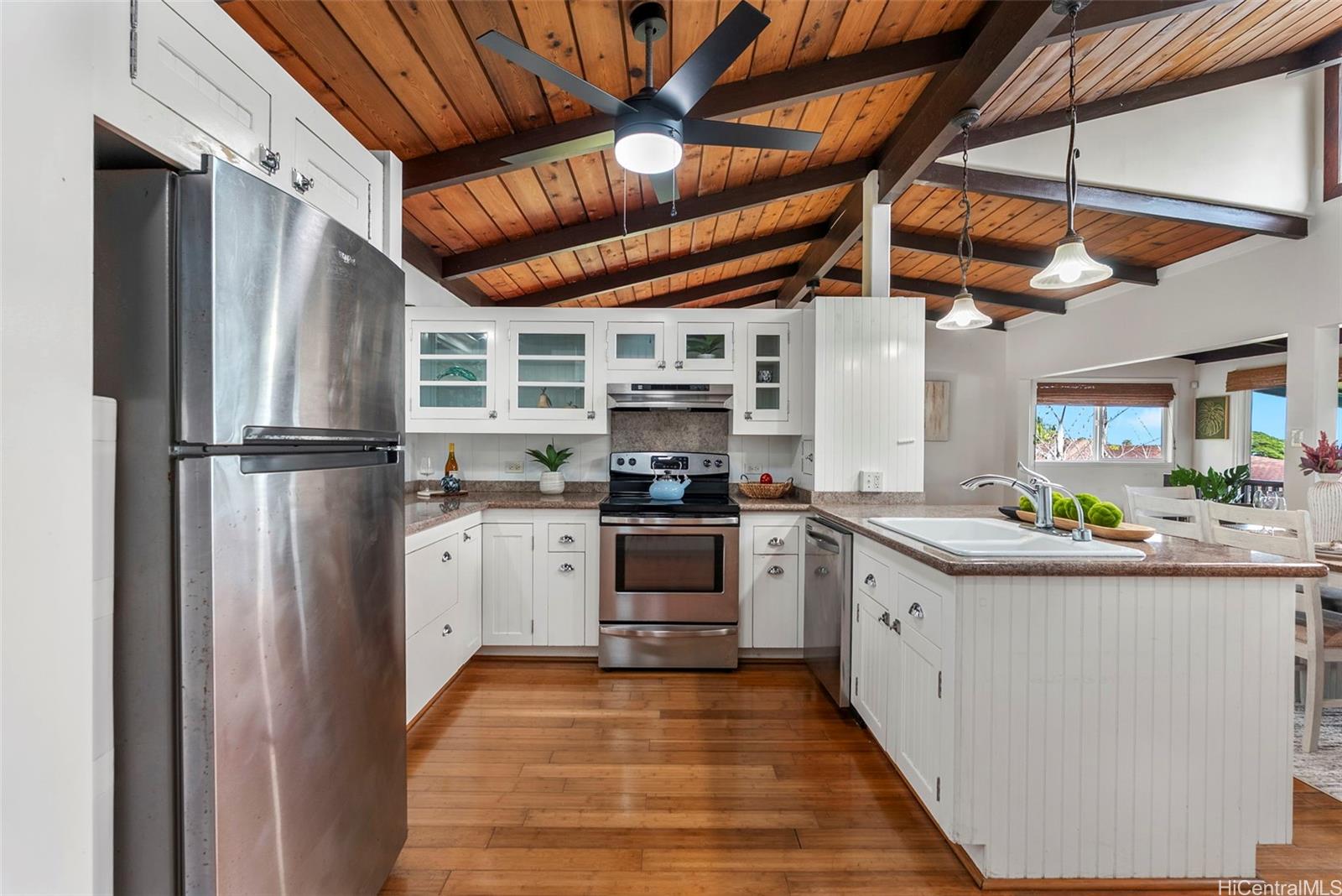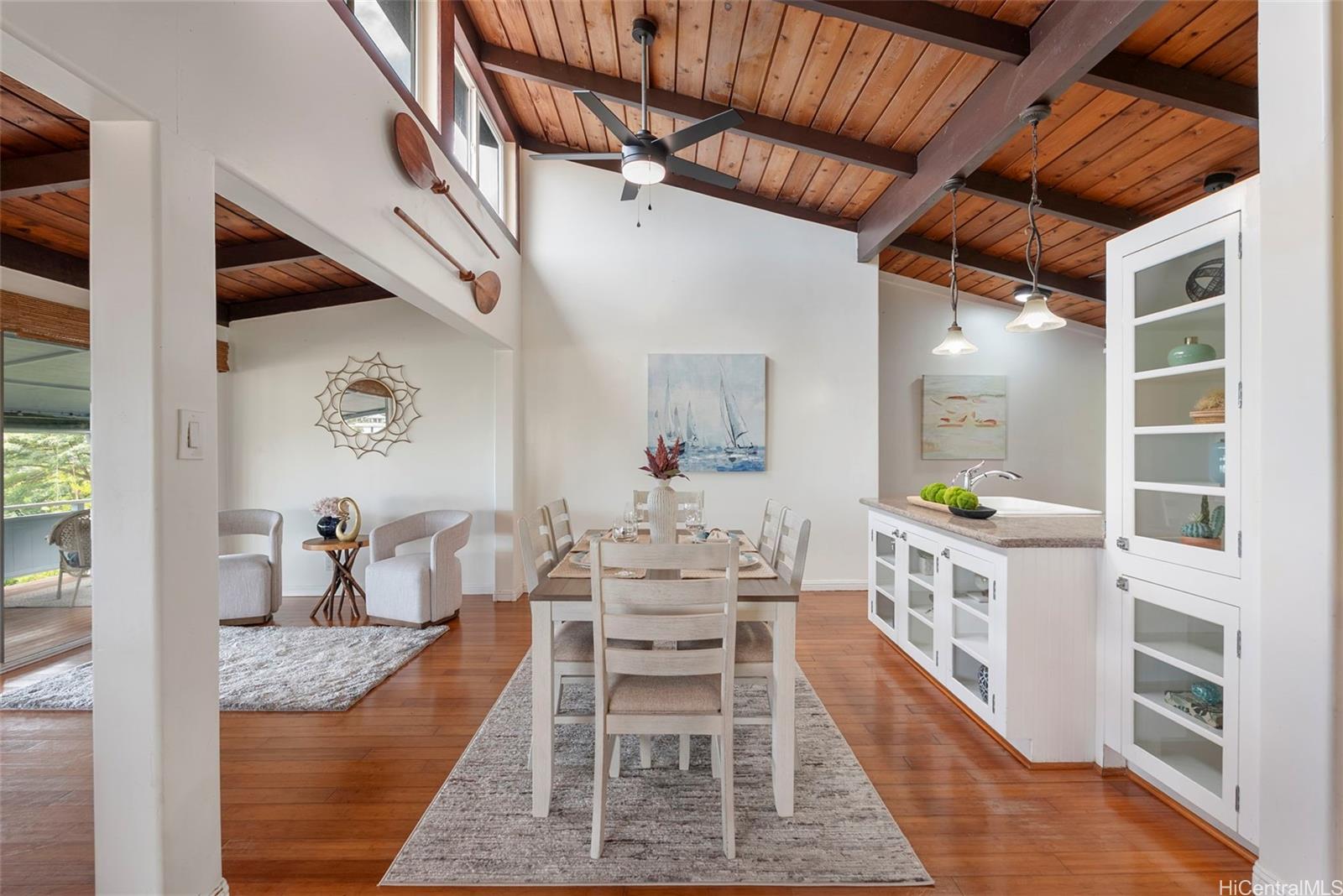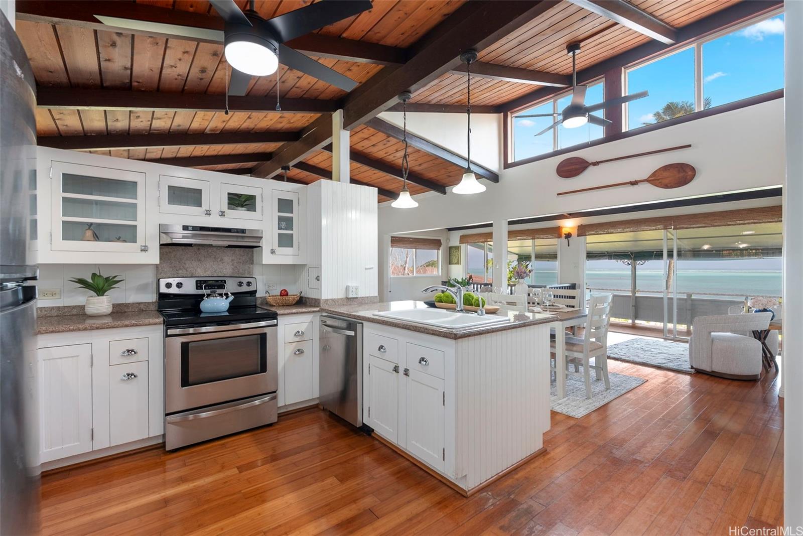 Wake up to an unobstructed Spectacular OCEAN VIEW! This lovely home sits at the top of the beautiful Lulani Ocean community. With an open floor plan and an expansive lanai extending from the living area, this home offers the ideal space to relax and take in stunning views. The open kitchen, with its granite countertops, overlooks the living and dining areas creating a comfortable space to gather, cook and enjoy the trade winds. The primary bedroom is located upstairs and features French doors that open to the lanai - a peaceful spot to enjoy morning views and the sunrise. Two additional bedrooms are downstairs, with a full bath on each level for added comfort and convenience. The home includes a split A/C system in the primary bedroom. Plenty of storage space under the house, roomy enough to keep beach gear, tools, or extra supplies. It could even serve as a handy workspace or hobby area. The large beautifully landscaped backyard provides a private outdoor space to relax, entertain or garden. Minutes from Kaneohe Bay and He'eia Kea Boat Harbor. Close to H3, Marine Corps Base Hawaii, Hickam Air Force Base, Pearl Harbor, restaurants and shopping.